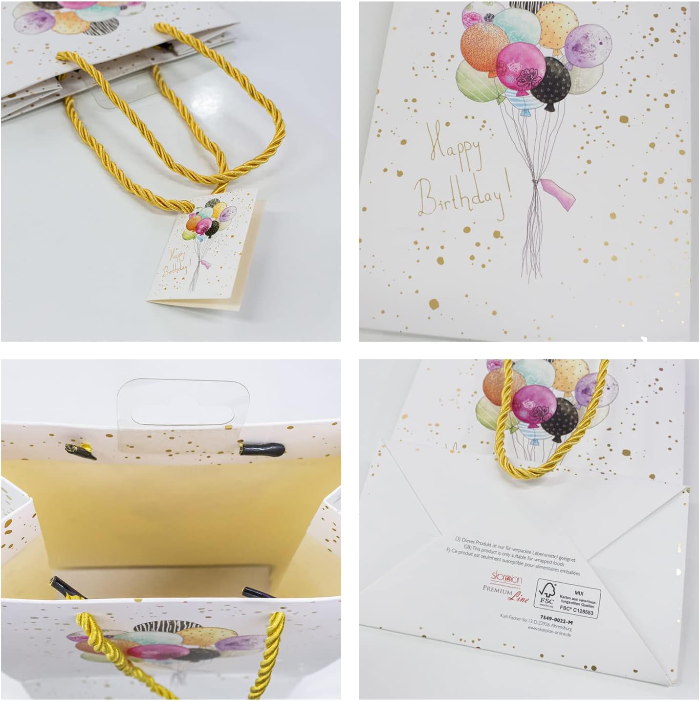 QUALITÀ PREMIUM - Fornitura: 6 sacchetti regalo di alta qualità in qualità premium DESIGN DI ALTA QUALITÀ - Finitura di alta qualità con lamina d'oro e laminazione opaca PERFETTO PER UN REGALO - Taglia M = Media (18 x 23 x 10 cm) EXTRA PRATICI - Ogni borsa incl. cordoncino colorato, biglietto da visita e dispositivo Euroforo ROBUSTO - carta robusta e resistente agli strappi, spessore carta: 210 g/m²
