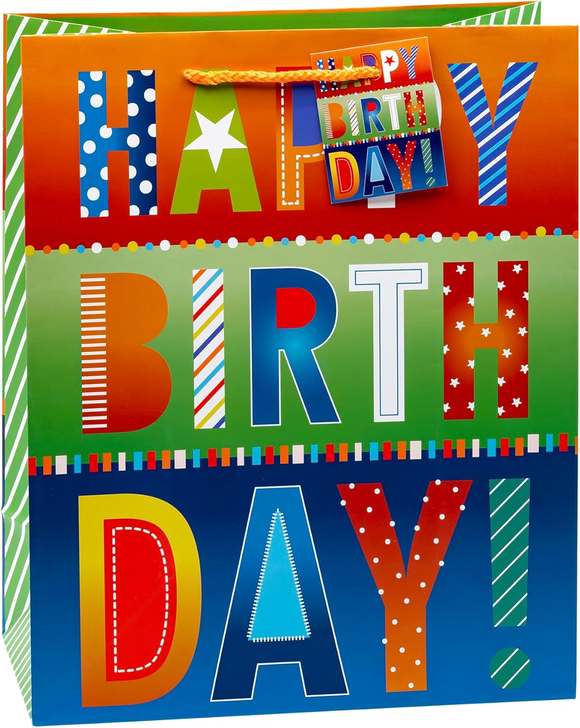 Confezione da 12 pezzi Dimensioni: (AxLxP) 32 x 26 x 13,5 cm, corrisponde al formato DIN A4 Pellicola in PP opaca laminata, resistente all'umidità e agli strappi con cordoncino robusto e cartoncino con etichetta abbinata 4 motivi diversi motivo di compleanno ordinato