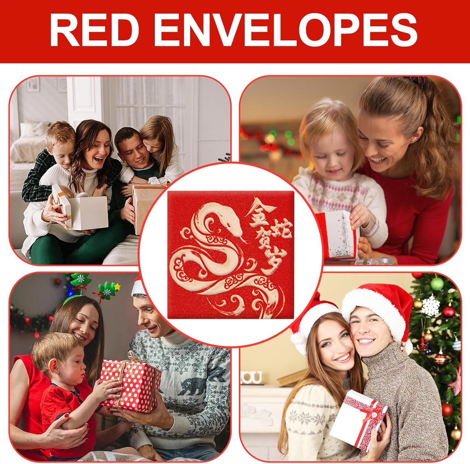 Design portatile: leggero e compatto, queste buste rosse sono ideali per famiglie o eventi aziendali, facili da carry, e perfetti per i piccoli tesori Ampio utilizzo: sollevare le vostre celebrazioni durante il Festival di Primavera e altri eventi auspiciosi con le nostre buste rosse per anni cinesi. Queste buste rosse esprimono i tuoi migliori infortuni per matrimoni, birthdays, e altre occasioni, rendendoli il perfetto presente per chiunque Design unico: bring good luck and beauty to your Chinese Year celebrations with our fashionable red buste that showcase ha unico, gold-stamped golden snake pattern. Le nostre buste sono una miscela perfetta di design tradizionale e moderno, rendendo loro un must-have per qualsiasi occasione festiva Prosperità simbolica: Delight your loved person with good wishes this Chinese Year. Le nostre buste rosse adornate con il golden snake carry simbolic wealth, rendendoli una scelta ideale per i relativi e gli amici. Bring them good luck and prosperity with this auspicious present Far More Durability: The sturdy material of these Chinese Year red Envelopes ensures durability for a long-lasting celebration. Enhanced by hot stamping for an exquisite texture, they provide an excellent hand feel, adding to the festive ambiance and creating unforgettable memories