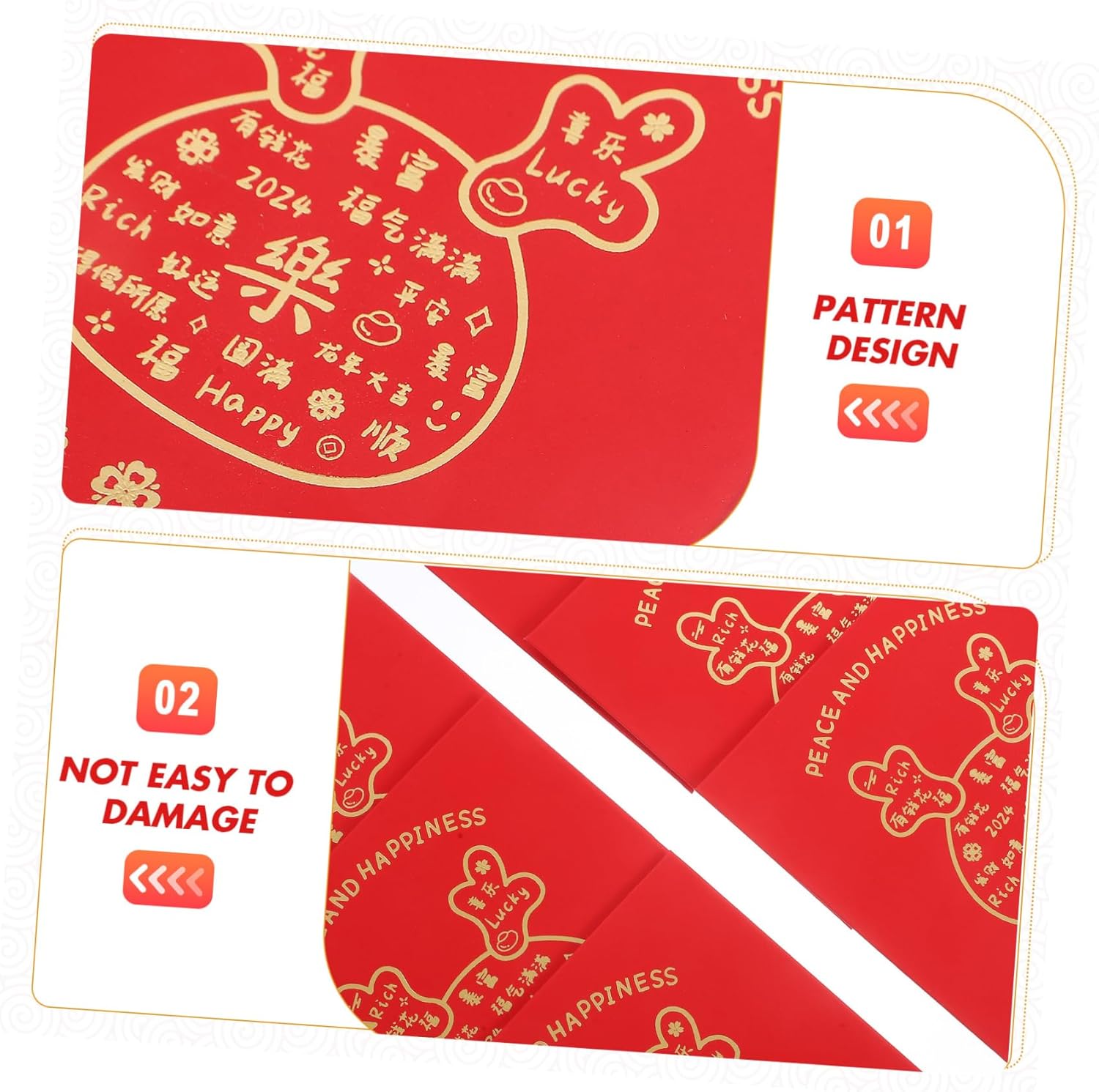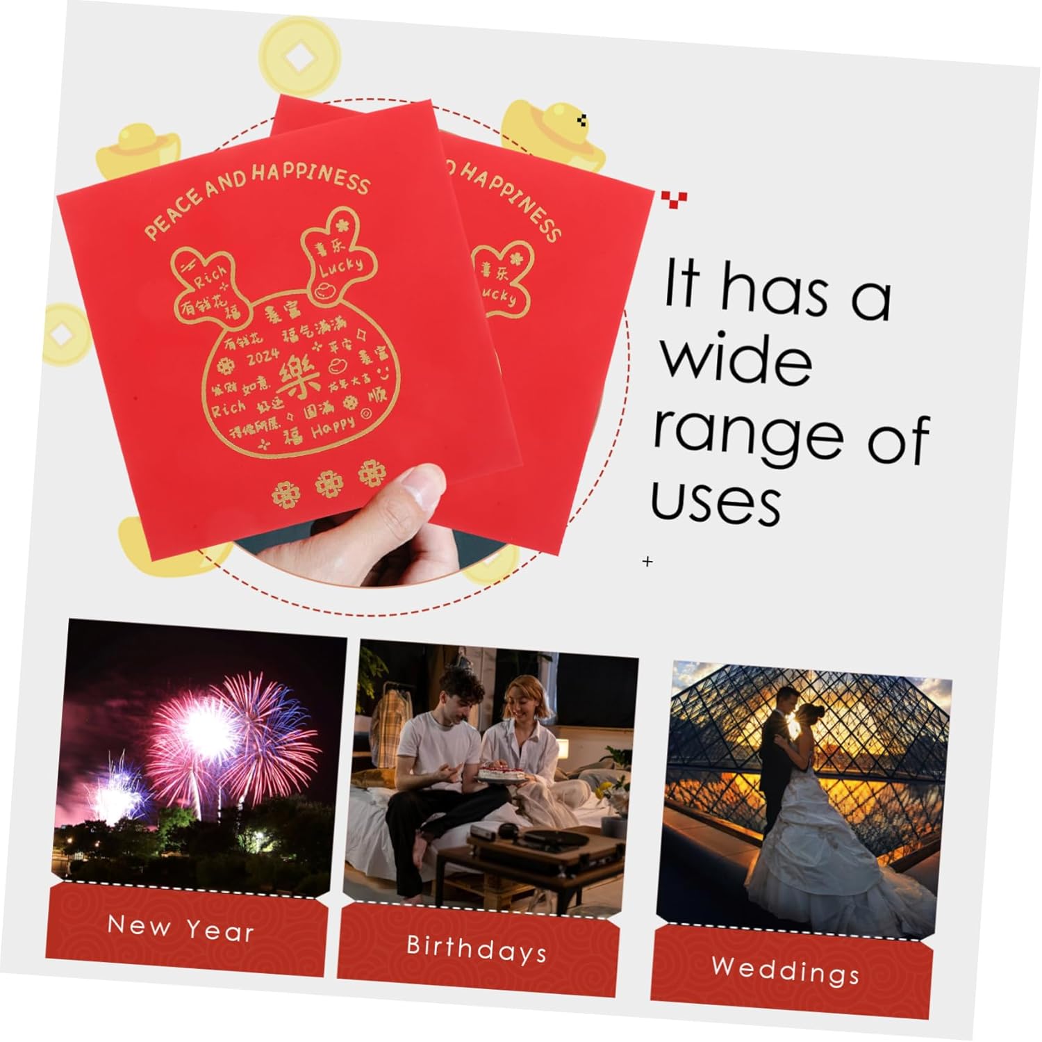 Sagni di carta-non facile da strappare e sbiadire, spesso, puoi mettere alcune , contanti, piccoli pacchetti rossi più semplici e più sicuri, 2024 Busta per l'anno del drago-nella cultura tradizionale cinese, il rosso è un fortunato e ritiene che le buste rosse possano portare fortuna e felicità, sacchetto di denaro per il anno Pacchetti rossi creativi-realizzati dal materiale carta Tasche di denaro-il sulla anteriore di ogni busta significa desideri e augura la fortuna, la prosperità, la salute, la felicità, la felicità, le buste del festival di Caschetti di denaro per capodanno: da usare, leggero, facile da aprire o chiudere, portatili e convenienti da mettere o eliminare oggetti, busta rossa per
