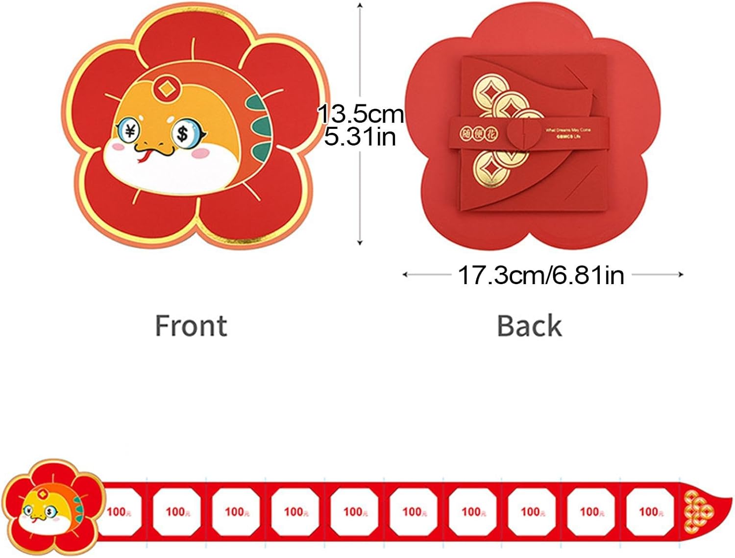 Costruisci un'atmosfera festiva: intrisa di gioia e pace, questa busta rossa, ideale per i desideri dell'anno 2025, invia benedizioni sincere ai parenti, fortificando i legami e allontanando gli spiriti Materiale robusto: con il suo processo di stampa a caldo, questa busta rossa è realizzata in materiale spesso e robusto che non sbiadisce facilmente. La sua carta rosso brillante e il design elegante lo fanno risaltare, mentre il suo tocco confortevole e la buona qualità di stampa lo rendono attraente. La scelta perfetta per chi trova una busta squisita e robusta Invia i tuoi migliori auguri: con la nostra busta rossa, inondate fortuna e felicità ai vostri cari. Il design intricato ed elegante del serpente d'oro simboleggia ricchezza e prosperità, completo di benedizioni cinesi. Perfetto per ogni occasione, "Spendi come preferisci" ed esprimi i tuoi sinceri auguri ad amici e familiari Facile da usare: mantieni i tuoi piccoli gioielli e oggetti significativi al sicuro con il design a fessura e patta della busta rossa. Le buste pronte per il timbro sono perfette per decorare alberi e pareti di Capodanno, e sono anche un contenitore ideale per soldi fortunati Ampiamente applicabile: fai contare ogni celebrazione con la nostra busta rossa. Esprimi i desideri e dona sincere benedizioni in occasione di festival di primavera, matrimoni, anniversari, compleanni, lauree e altre occasioni ampiamente utilizzate