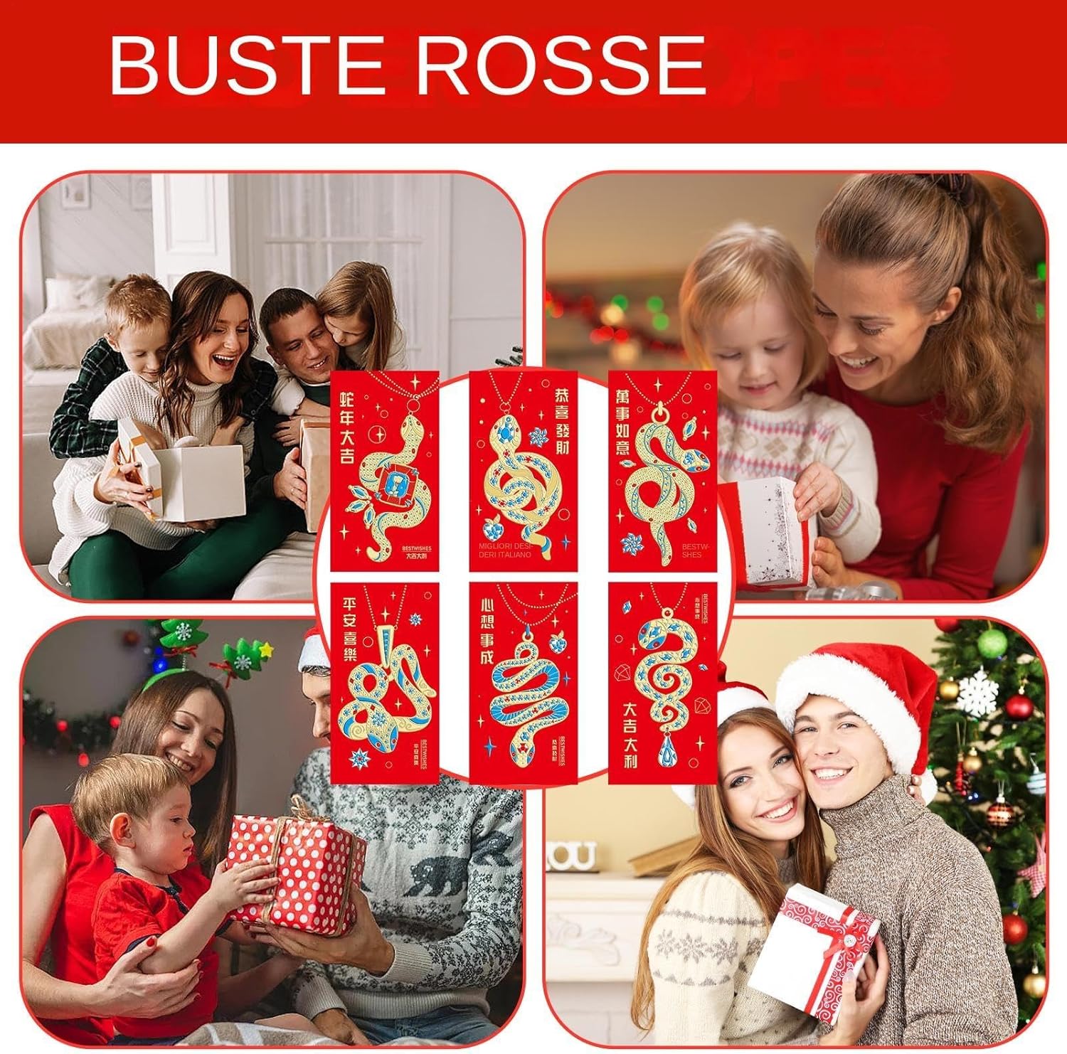 Rafforza l'atmosfera: i nostri pacchetti 'anno del serpente rafforzano i legami tra famiglia e amici catturando con eleganza la natura del capodanno lunare, intensificando l'atmosfera festosa Design alla moda: combinando il classico motivo a serpente con l'estetica moderna, questo pacchetto rosso diventa una scelta alla moda e significativa per il nuovo anno Materiale robusto: realizzati con materiali di alta qualità, questi pacchetti Year Of The Snake trasudano durata e bellezza. Con il loro design straordinario, assicurano una presentazione elegante che eleverà ogni occasione festiva Regalo meraviglioso: le buste rosse Snake per il Capodanno cinese sono un regalo per trasmettere i tuoi saluti più calorosi e pensieri sinceri. Rendi ogni occasione una situazione memorabile Uso versatile: che si tratti di una riunione di famiglia o di comunicazione tra amici, è adatto a varie occasioni, rendendolo ampiamente applicabile