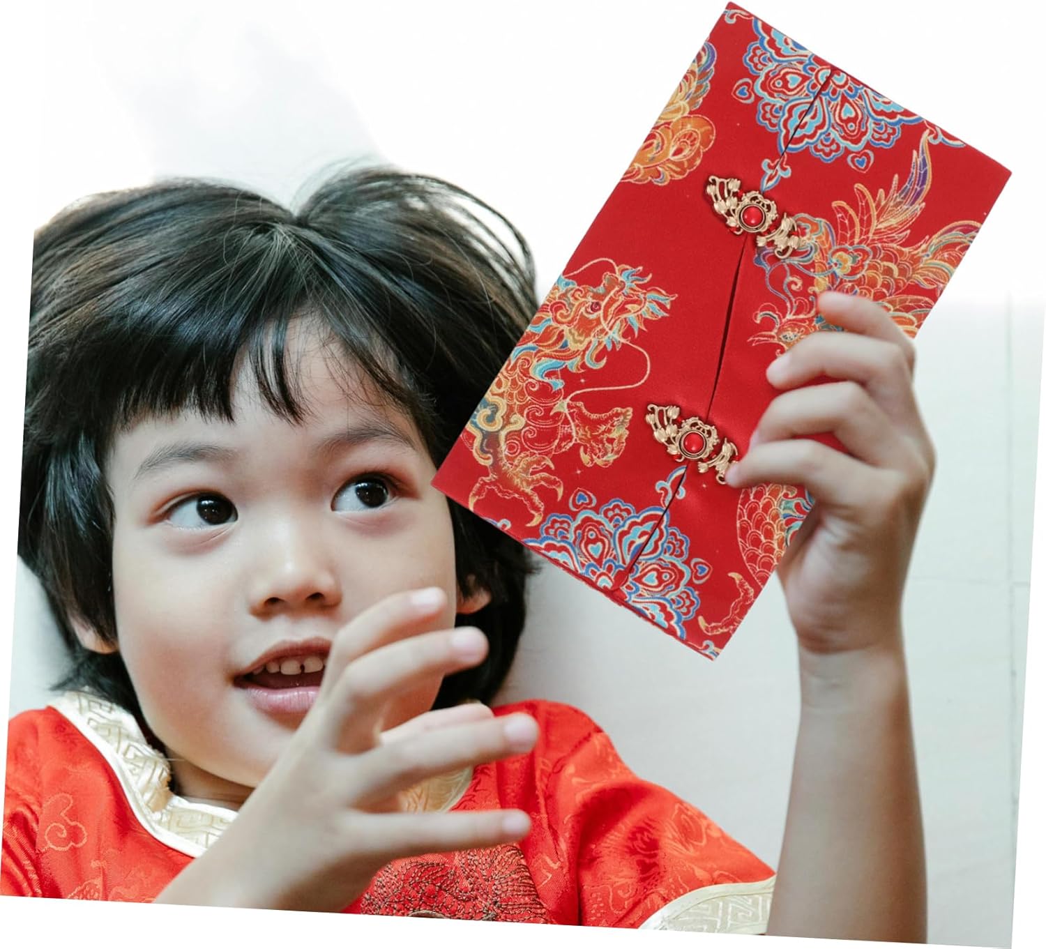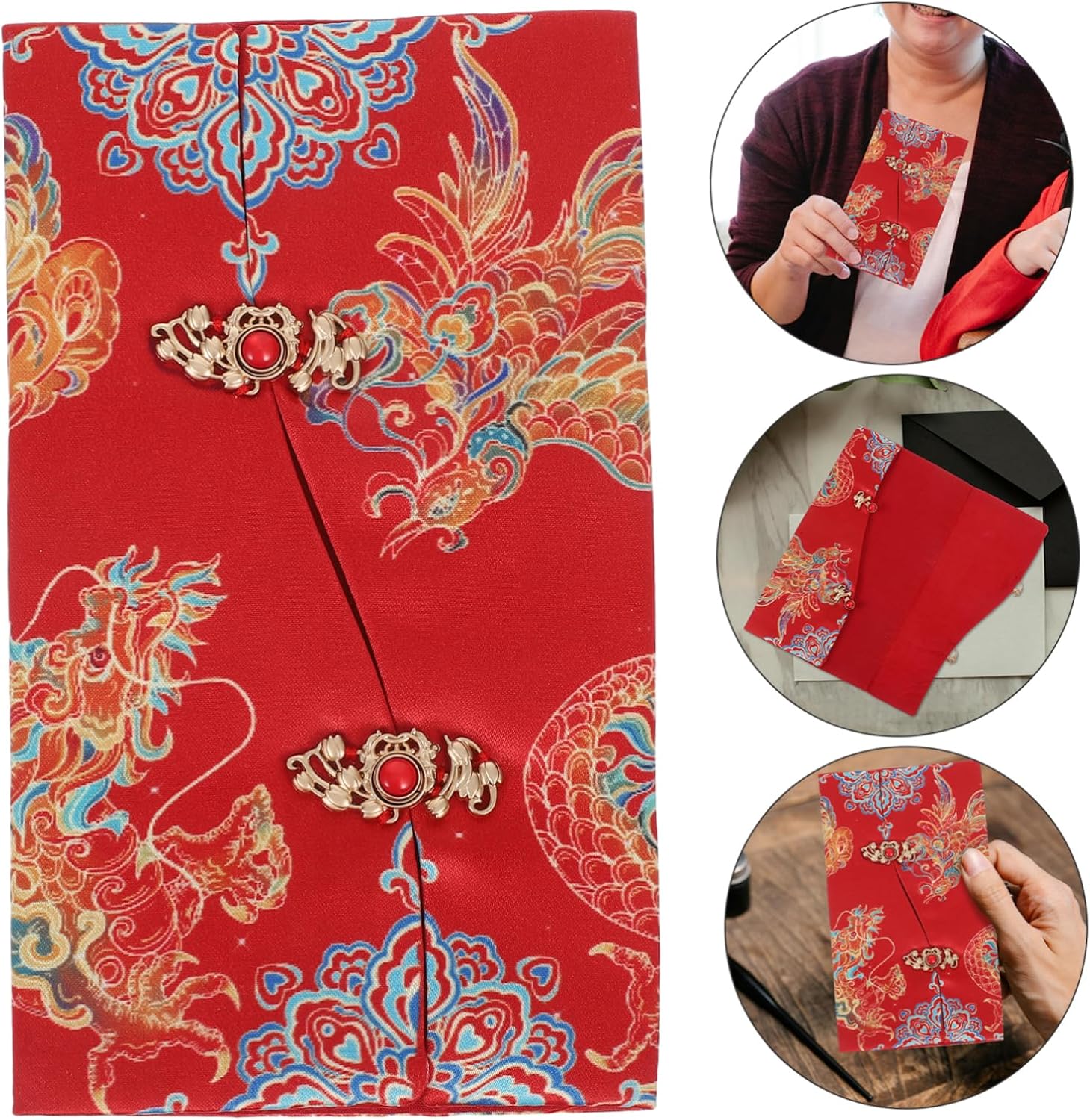 Astetica tradizionale cinese: presenta un bellissimo design in tessuto che evidenzia l'eleganza della cultura tradizionale cinese Drago simbolico e Phoenix: rappresenta la felicità e la prosperità, rendendolo un significativo Leggivelletteri facili da usare: il design della chiusura a levetta lo rende comodo da trasportare e utilizzare Ottimo per il : ideale per dare carte o soldi fortunati a bambini, genitori o nonni, augurando loro salute e successo Uso multioccaso: ottimo per matrimoni, compleanni, festival e altri eventi speciali per condividere i migliori auguri e migliorare l'umore festivo