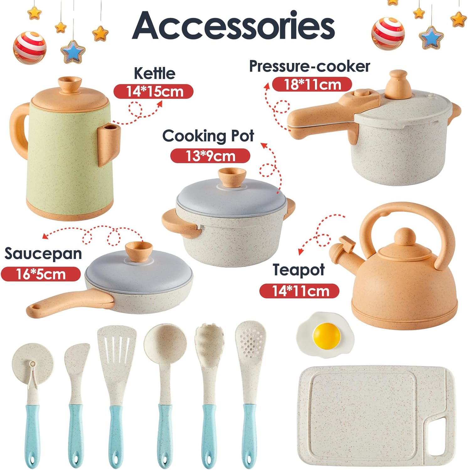 Cucina Giocattoli per Bambini: Include pentole e padelle, bollitore, teiera, utensili da cucina, tagliere e uova fritte. Il set completo di cucina da gioco offre ai bambini una migliore esperienza di gioco. Alta Qualità: Realizzato in materiale plastico di spesso e resistente, con bordi lisci e privi di sbavature. Con una struttura di fissaggio con viti o fibbie, resistente e non facile da sfaldare! Può essere lavato direttamente con acqua e può resistere all'uso ripetuto da parte dei bambini. Realistici Pentole e Padelle Bambini: Tutti i coperchi possono essere aperti e chiusi! Design speciale con pentola a pressione apribile a rotazione per riprodurre fedelmente l'ambiente di cottura reale, permettendo ai bambini di imitare ogni dettaglio della cucina della mamma! Accessori Cucina Bambina: Include 6 utensili da cucina, cucchiaio da zuppa, spatola, tagliapizza, cucchiaio per colare, cucchiaio per tagliatelle, spatola per mescolare, possono essere ben utilizzati per scopi diversi. Il manico è dotato di fori per essere appeso. Giochi di Ruolo: Il bambino può giocare a fare il cuoco, fingere di tagliare il cibo, cucinare con diverse pentole e preparare un pasto delizioso per i clienti o la famiglia. Incoraggia i bambini a immaginare e imitare. Regalo Educativo: Aiuta i bambini a imparare a identificare e utilizzare diversi pentolini giocattolo e migliorare le abilità di vita. Adatto come Compleanno/ Festa regalo per bambini/ ragazzi/ ragazze dai 3 anni in su.