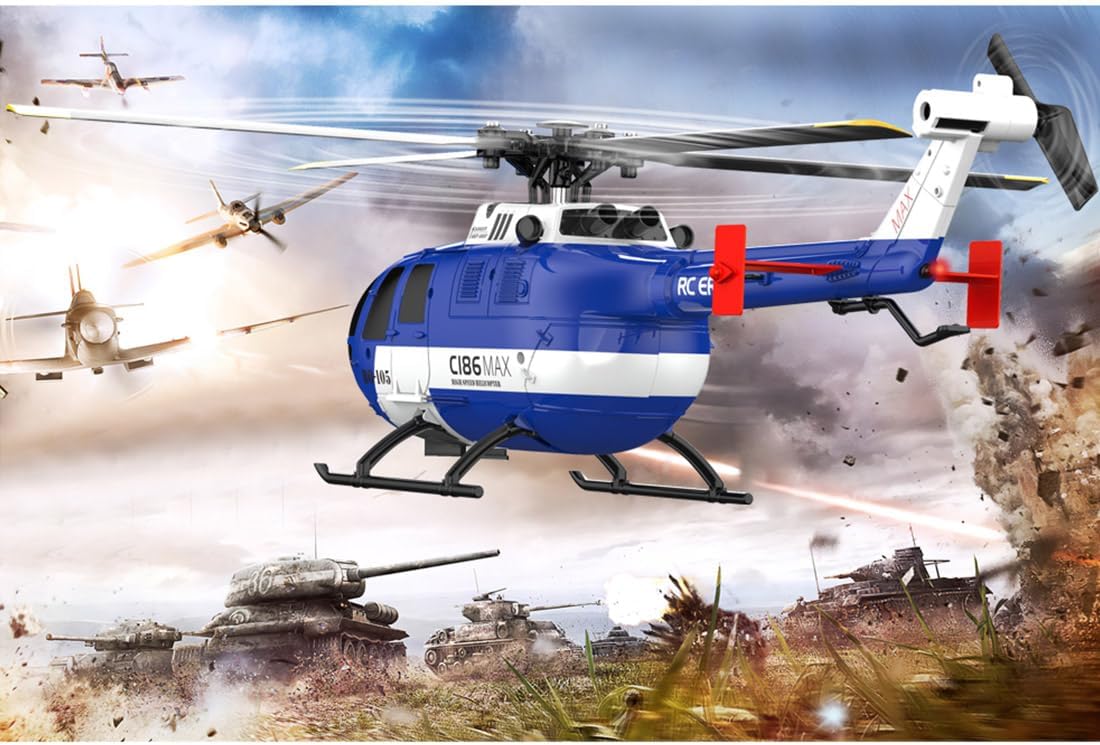Giroscopio a 6 assi aggiornato e posizionamento del flusso ottico - Il nuovo elicottero RC C186Max BO105 è dotato di tecnologia giroscopica a 6 assi avanzata e posizionamento del flusso ottico, garantendo un volo stabile e regolare anche in condizioni di vento leggero. Perfetto per volare sia all'interno che all'aperto, rendendo il funzionamento più facile per i principianti e migliorando l'esperienza di volo realistica. Sistema di controllo completo 2.4G 4CH - Utilizza la frequenza di controllo 2.4G per un segnale stabile e un funzionamento senza interferenze, con una distanza di controllo remoto di circa 80-100 m. Supporta le funzioni di volo complete tra cui su/giù, sinistra/destra, avanti/indietro e rotazione, consentendo il controllo completo delle manovre aeree. Design senza aileron e decollo/atterraggio con un clic: il design senza alettone migliora la stabilità di volo e semplifica il controllo. Il decollo e l'atterraggio con un clic rendono facile iniziare e terminare i voli, anche per i piloti alle prime armi, aumentando al contempo il divertimento del controllo. Sistema di batterie sicuro e portatile: dotato di una batteria modulare staccabile da 3,7 V 350 mAh con design a sgancio rapido per una facile sostituzione. Include allarme di bassa tensione, indicatore LED della batteria e prestazioni di potenza stabili per voli più sicuri e tempo di riproduzione esteso. Costruzione durevole di alta qualità e supporto post-vendita - Costruito con robusti materiali PA e PC e un motore spazzolato per una forte potenza e resistenza agli urti. Progettato per resistere a piccoli urti per un uso duraturo. In caso di problemi, il nostro team è pronto a fornire tempestivamente le parti di ricambio.