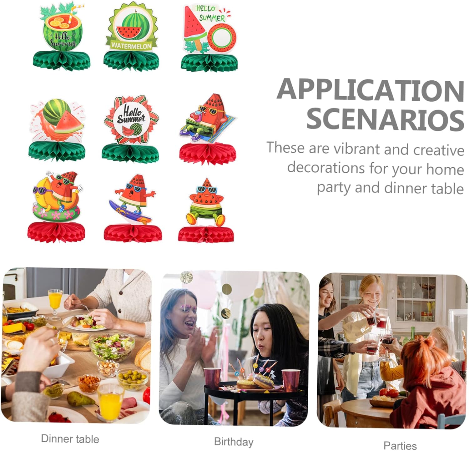 Decorazione a nido d'ape da scrivania: utilizzando materiali cartacei, questi ornamenti creativi sono sicuri e decorativi da usare. Decorazioni per la tavola con frutta estiva: aggiungi decorazioni allo spazio della tua scrivania, donando più vivacità alla tua tavola e aggiungi il tuo appetito. Decorazioni a nido d'ape con anguria: adottata carta premium, robusta e inodore e stampata con colori vivaci e motivi vivaci. Decorazioni di frutta: con motivi colorati e delicati, possono sicuramente offrirti un buon divertimento visivo e un umore più felice. Ornamento hawaii: con l'adozione di materiali cartacei, sicuri e puoi usare questi ornamenti con sicurezza.