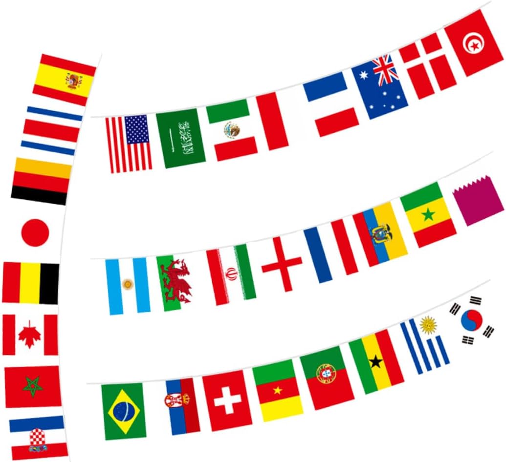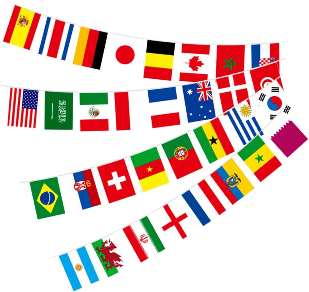 Banner con bandiere internazionali: i motivi colori vivaci di queste decorazioni sono resistenti allo sbiadimento, garantendo che le bandierine delle feste di calcio rimangano accattivanti Banner con bandiere internazionali di calcio: sono vivaci e stampati in modo chiaro, possono essere utilizzati in qualsiasi stagione, soddisfano le esigenze di decorazione, bandierine per foto Forniture per feste a tema calcio: per aggiungere un tocco festoso a qualsiasi evento, queste decorazioni creeranno un'atmosfera celebrativa, striscione della coppa di calcio Striscioni decorativi per feste: queste bandiere un'atmosfera vivace e festosa, aggiungendo ed eccitazione a eventi o celebrazioni, striscioni con bandiere da calcio Banner per feste: rompi la noiosa sensazione di spazio, questa bandiera è adatta per una varietà di scene di abbinamento dello spazio, banner con bandiera nazionale