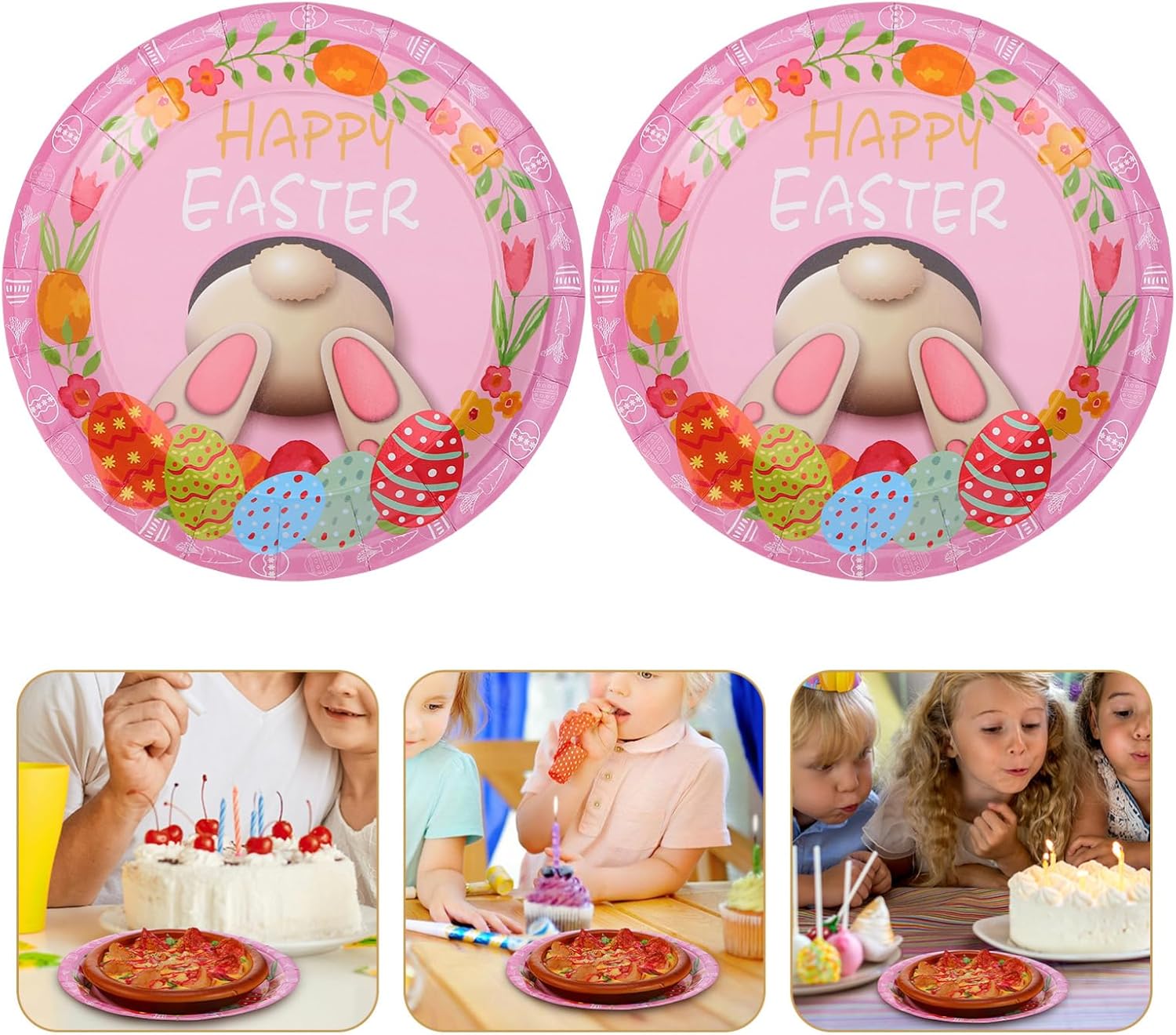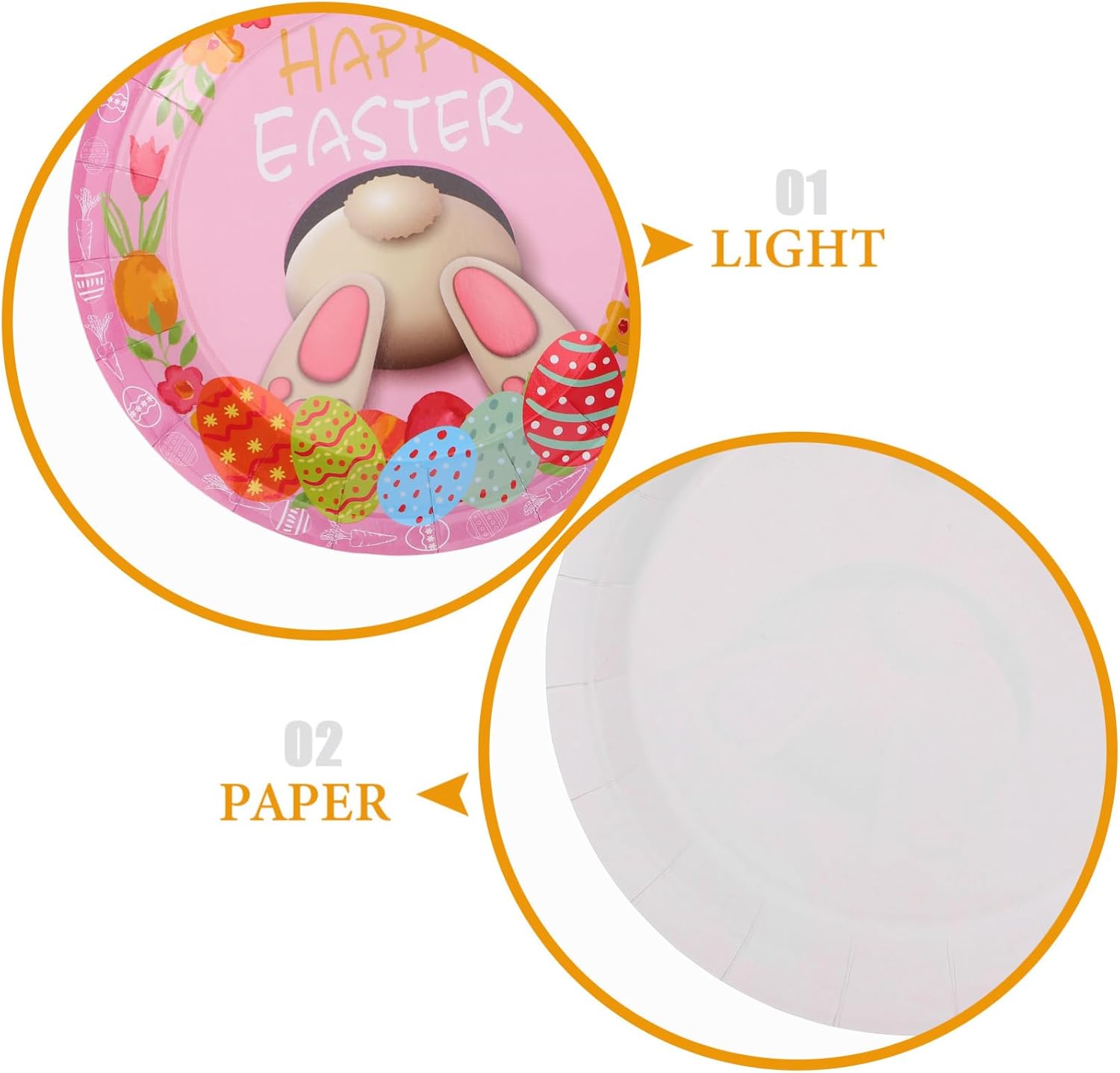 DESIGN CARINO: i piatti di carta delle uova di Pasqua dei cartoni animati presentano adorabili disegni che aggiungono un tocco festoso a qualsiasi celebrazione DECORAZIONE DELLA TAVOLA: le stoviglie a tema coniglietto possono essere utilizzate per decorare il vostro tavolo da pranzo, esaltando l'atmosfera vacanziera CELEBRAZIONI: le decorazioni per le feste di Pasqua saranno le bomboniere ideali per decorare la tua tavola per Pasqua MATERIALE SICURO: realizzati in carta, questi piatti sono sicuri e affidabili per l'uso con gli alimenti PER FESTE: ideali per feste e ritrovi pasquali, questi piatti sono comodi e pratici per servire il cibo