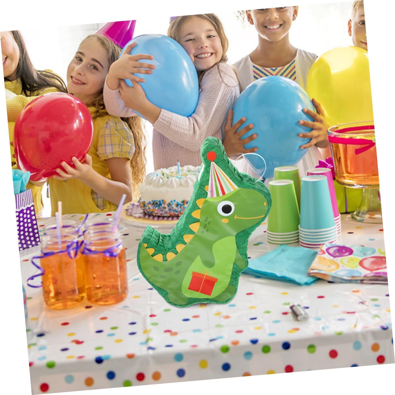 Pinata sospesa: realizzata in carta sicura, questo giocattolo pinata è sicuro e riutilizzabile da usare, per darti un'esperienza piacevole, gioco di caramelle pinata Pinata di capodanno: decora la festa a casa o ovunque come una cabina fotografica, aiuta a creare ricordi duraturi, giocattolo pinata Pinata per addio nubilato: il design dall'aspetto divertente renderà la tua festa più divertente e interessante, usa la pinata di dinosauro come decorazione per le feste o chiedi agli ospiti di fare a turno per provare a rompere la pinata per rilasciare tutte le caramelle all'interno, decorazione della festa Divertente decorazione della pignatta: molto adatta per giocare a feste, feste di compleanno e sagre o celebrazioni, pignatta per feste di compleanno Pinata per adulti: può essere riempita con piccole caramelle e altre sorprese per aumentare l'interesse, aggiungere atmosfera di festa e stupire gli ospiti, decorazioni per pinata di compleanno