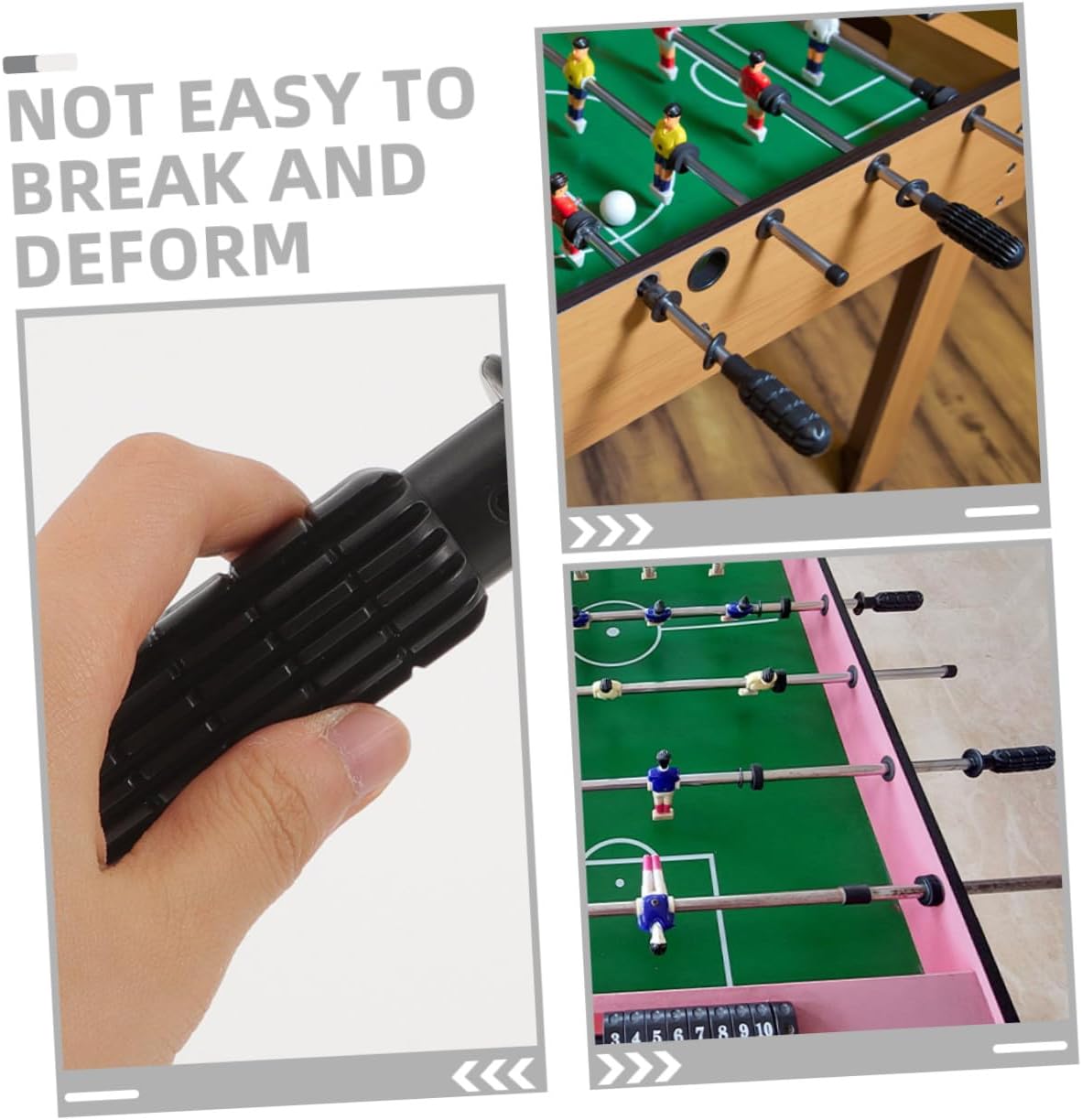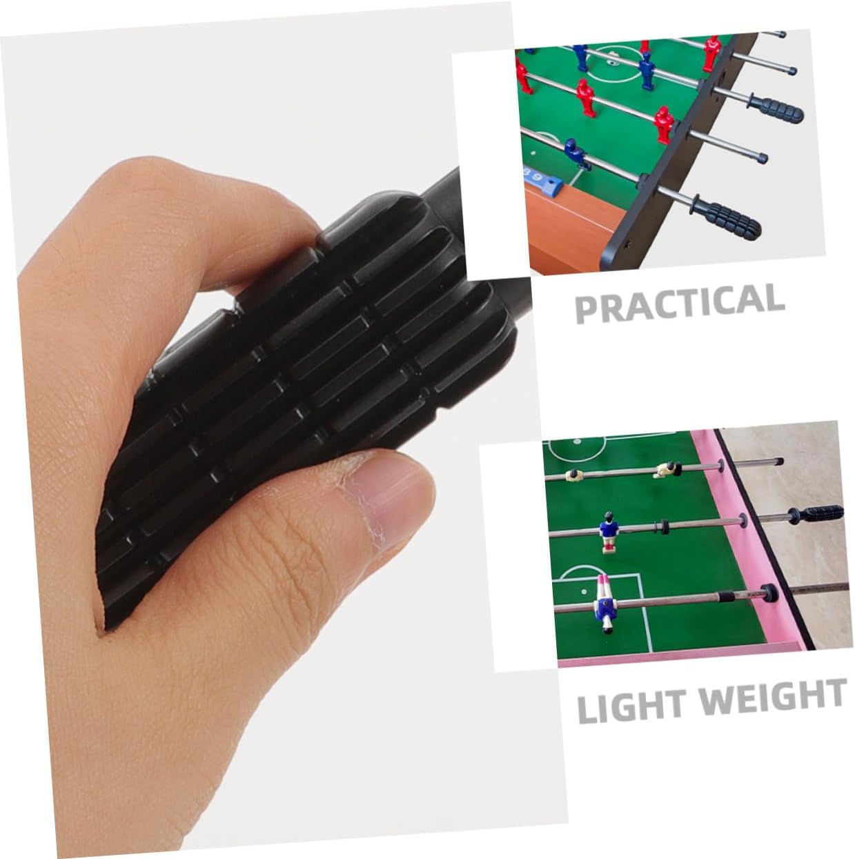 Risparmio di tempo e fatica: le maniglie abbinate del calcio balilla sono facili da installare e utilizzare, risparmiando tempo e fatica, maniglia antiscivolo, maniglia del calcio balilla Comoda sostituzione delle maniglie per un utilizzo ininterrotto: sostituisci facilmente le maniglie per un utilizzo ininterrotto del biliardino, impugnatura del biliardino sostituibile, parti del calcio Materiale robusto: queste pratiche maniglie per biliardino sono realizzate in robusto pvc, possono rimanere con te più a lungo, parte dell'impugnatura del biliardino, parti di ricambio per biliardino Materiale robusto: selezionato con materiale in pvc di buona qualità e antiusura, sono facili da usare e pratici, maniglie per biliardino, parti per biliardino Facile da usare: leggero, facile da usare, può aiutarti a vincere facilmente nel gioco, soprattutto nel gioco intenso, maniglia di ricambio in plastica per biliardino, maniglia per tavolo da biliardino