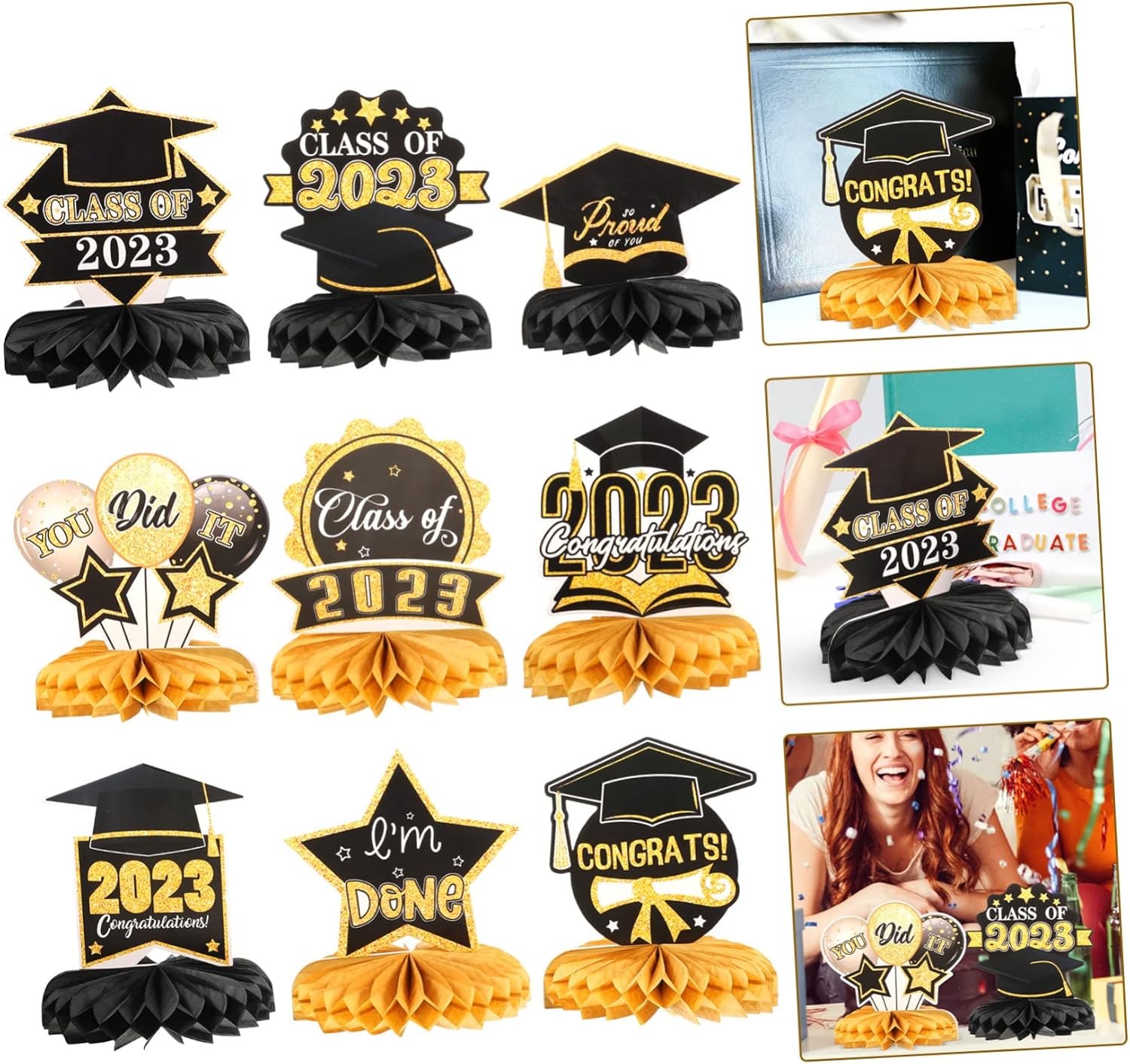 Accessorio per la festa di laurea: il nostro arredamento è pronto per rendere la tua festa di laurea più e unica, centrotavola per la laurea Festa a nido d'ape: quando organizzi una festa di laurea, installa decorazioni sul desktop per attirare l'attenzione di tutti e lasciare che gli amici trascorrano una festa indimenticabile, centrotavola a nido d'ape per la laurea Decorazione a nido d'ape per laurea: decorare la tua casa e la tua festa con i nostri centrotavola a nido d'ape sarà un successo alla tua festa, accessorio di laurea in carta Cose per la festa di laurea: questi centrotavola per la laurea sono splendidamente progettati con elementi di laurea, e tutti adoreranno questi design chic, nido d'ape, centrotavola per la laurea per tavoli Decorazioni con palline di carta a nido d'ape: motivo a tema laurea e aspetto a nido d'ape, piccole dimensioni e peso leggero, facili da trasportare e riporre, non occupano spazio, decorazioni per la classe del 2023