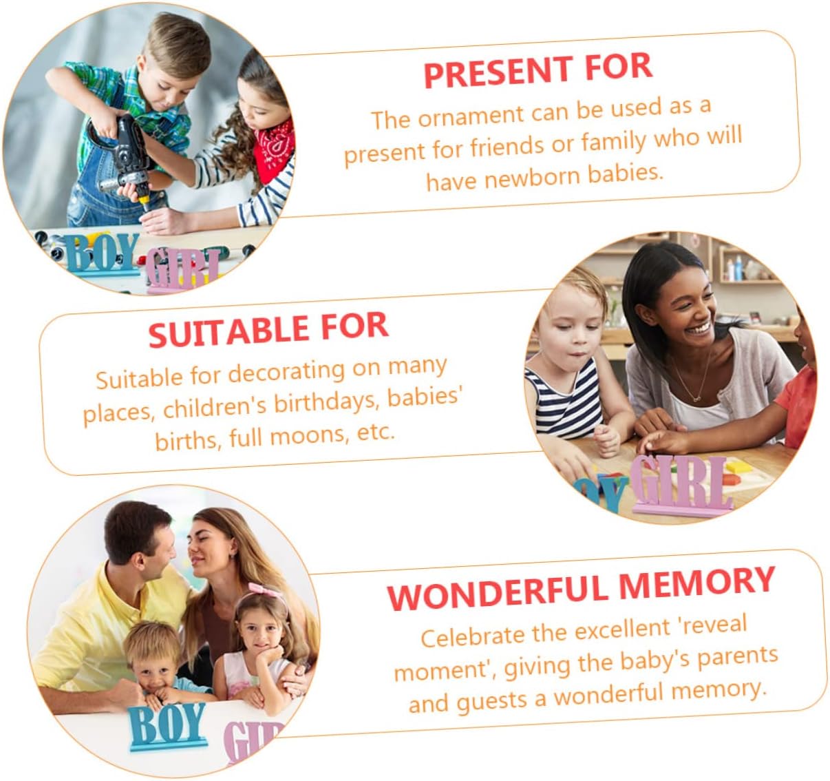 Decorazioni per la tavola con rivelazione di genere: possono rendere la tua tavola più attraente e interessante, attirando sicuramente l'attenzione dei tuoi ospiti e amici, decorazioni per la tavola Tavolo da tavolo per ragazzo e ragazza: realizzato in materiale di legno di qualità, superfici lisce e non facile da sbiadire, utilizzabile come decorazione per feste per bambini Desktop di rivelazione di genere: aggiungi un bel tocco decorativo tuo shower e alla festa di rivelazione di genere, adorna per mesa de Ornamento per rivelare il genere: adatto per decorare molti luoghi, compleanni di bambini, nascite di neonati, lune piene, ecc., cartello decorativo di compleanno Decorazione in legno per shower: può essere utilizzata come decorazione per il compleanno dei bambini, la nascita di un bambino, la piena e altre occasioni, ornamento in legno per rivelare il genere