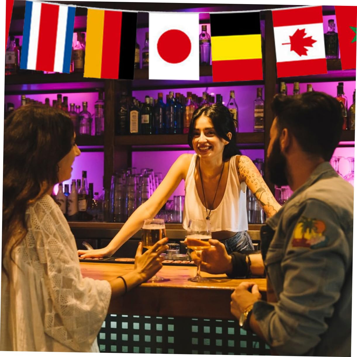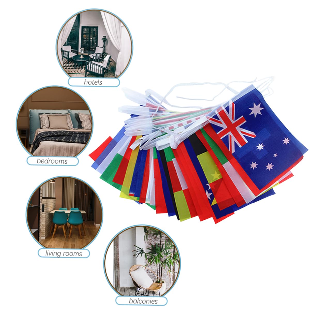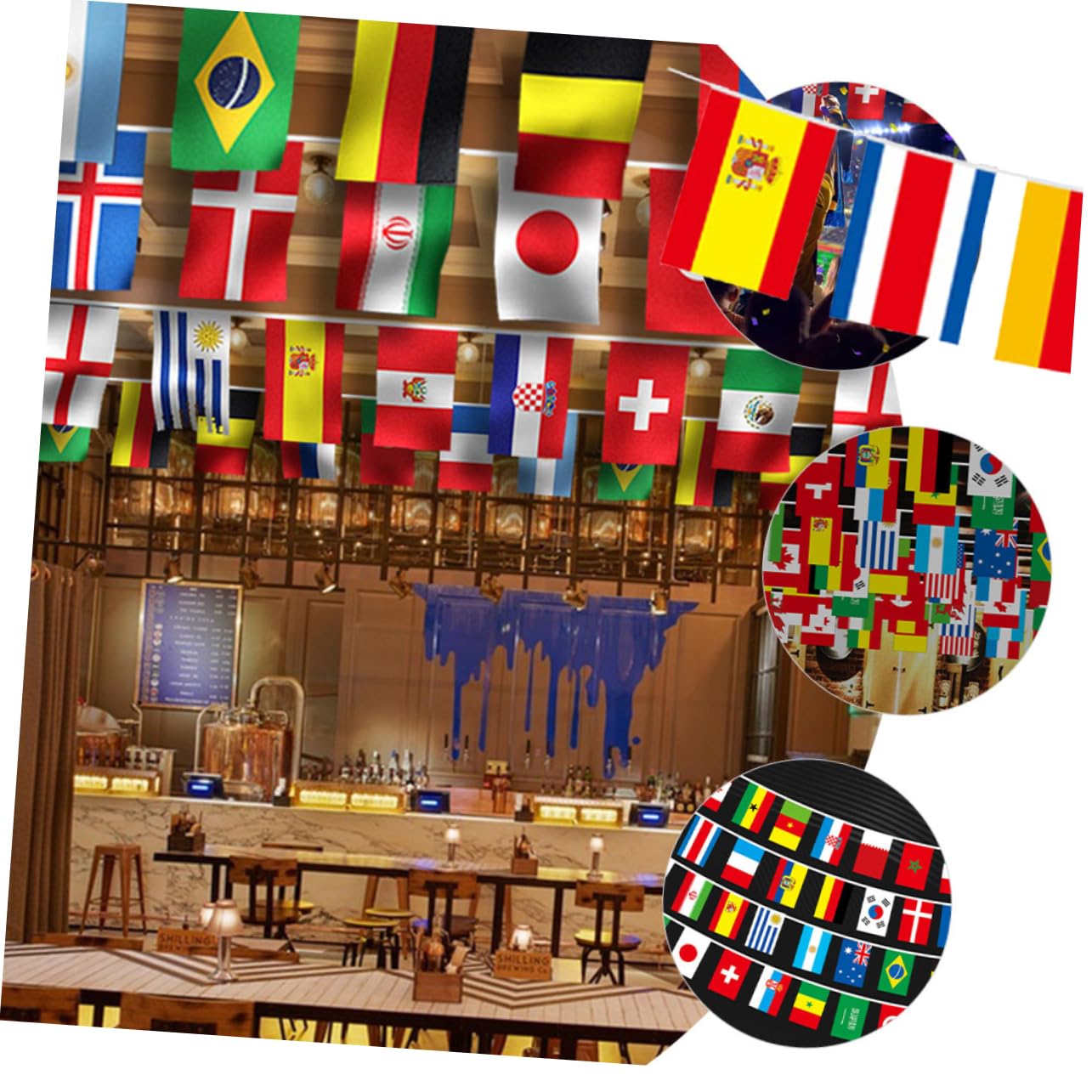 Bandiere del mondo: queste decorazioni sono progettate per essere appese a una corda, possono essere utilizzate facilmente e comodamente ogni , striscioni con bandiera nazionale Adatto per varie feste, feste in maschera, spettacoli, attività divertenti, bar, sale da ballo, festival ecc., striscioni decorativi per feste Bandierine per foto: ottima decorazione per impianti sportivi, aule, giochi, eventi celebrativi internazionali, ecc., bandiere internazionali Bandierine dei paesi: queste bandiere un'atmosfera vivace e festosa, aggiungendo ed entusiasmo all'evento o alla celebrazione, striscione pendente con bandierine internazionali Bandierine per feste di calcio: materiale in tessuto di poliestere selezionato, che non deforma o rompe facilmente, può essere un decoro molto significativo, bandiere nazionali