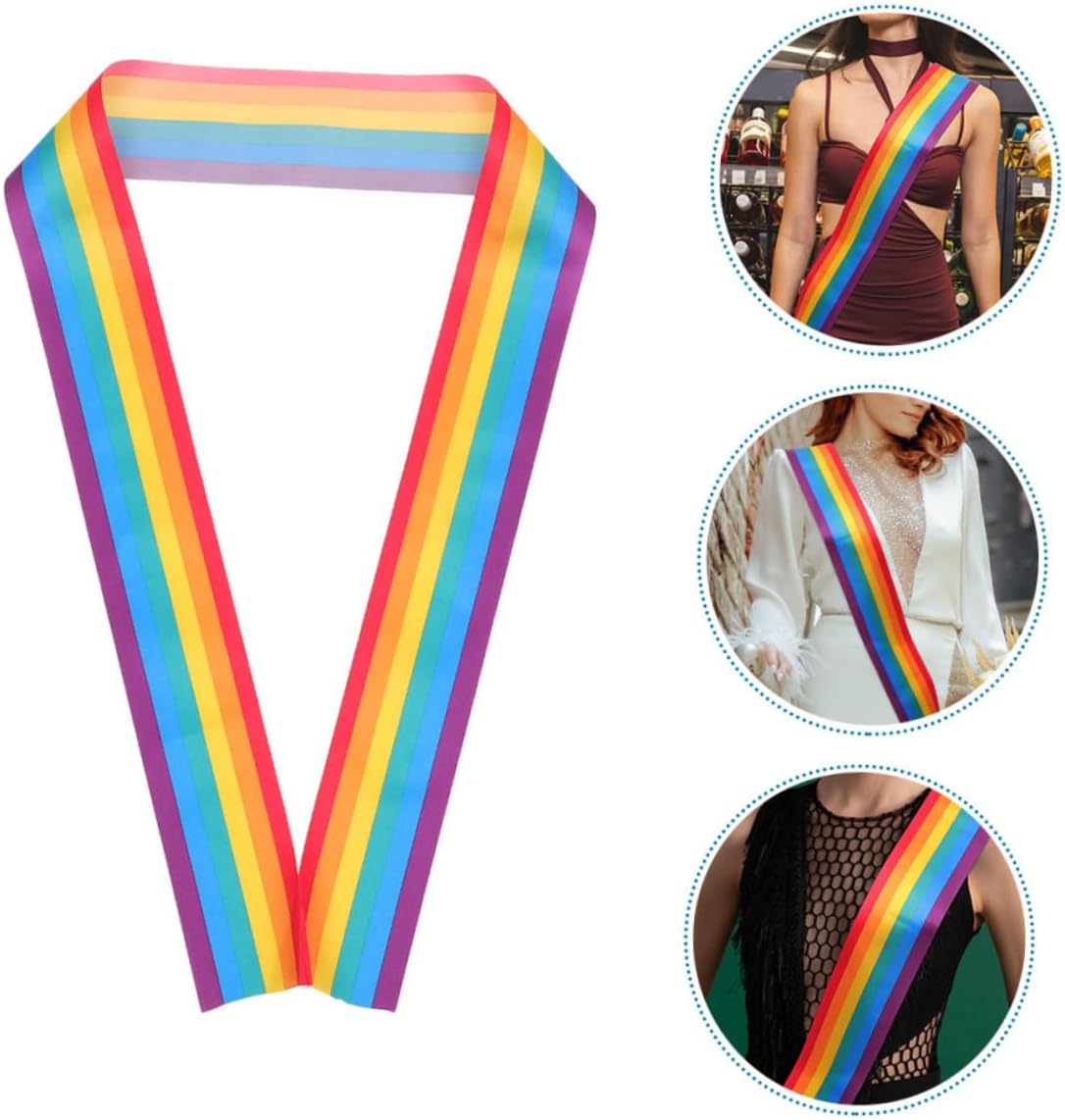 Fascia decorativa: design unico color arcobaleno, la fascia può farti sembrare più speciale e accattivante, fascia a strisce arcobaleno Fascia per feste pride: taglia unica adatta alla maggior delle persone, facile da indossare o da togliere, ti fa sembrare più individuale alla festa, la fascia è molto attraente da indossare, fascia arcobaleno lgbt Fascia arcobaleno per decorazioni: può essere indossata come cintura o tracolla, rendendola un accessorio versatile per feste e sfilate del mese dell'orgoglio, fascia arcobaleno per lgbt Accessori per la parata dell'orgoglio: ravviva la tua festa, offri un po' più di divertimento a te e ai tuoi ospiti, condividendo stato d'animo più felice, fascia con nastro Tracolla arcobaleno: taglia unica, questa fascia divertente e creativa renderà la tua festa più felice ed eccitata, fascia colorata