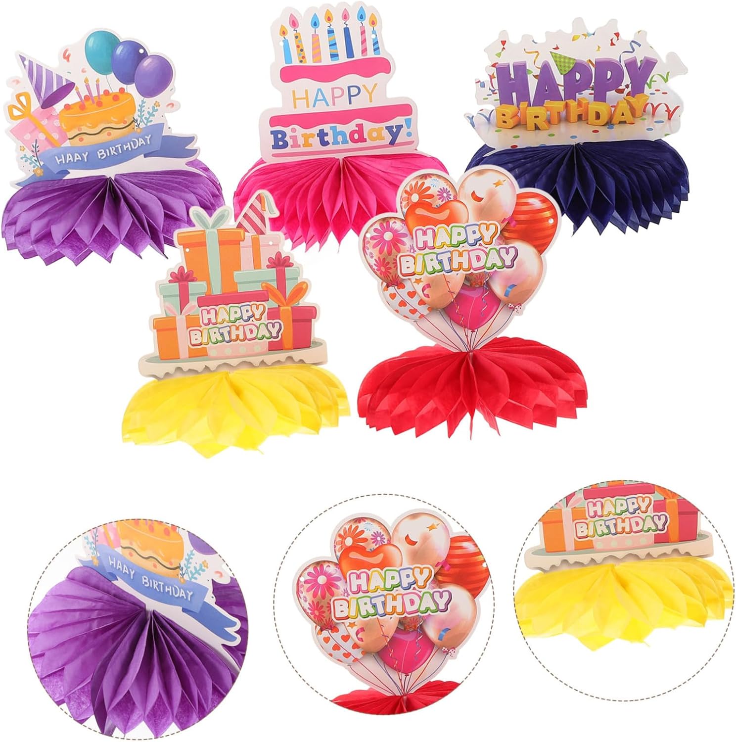 Design unico: le decorazioni da tavolo con ventaglio in carta a nido d'ape aggiungono divertimento e gioia alle feste di compleanno dei bambini, rendendole più memorabili. Decorazione festiva: adatta a varie feste festive come feste di compleanno e riunioni di bambini, migliorando l'atmosfera celebrativa. Celebrazioni memorabili: ideali per feste di compleanno per bambini o deliziose baby shower, rendendo i tuoi momenti indimenticabili e degni di una foto. Facilità di montaggio: le decorazioni sono facili da montare e possono essere riutilizzate, offrendo praticità e rapidità di installazione per qualsiasi evento. Uso versatile: queste decorazioni possono essere utilizzate non solo per decorazioni per feste ma anche come ornamenti per interni e fondali fotografici, aggiungendo versatilità alle tue opzioni di arredamento.