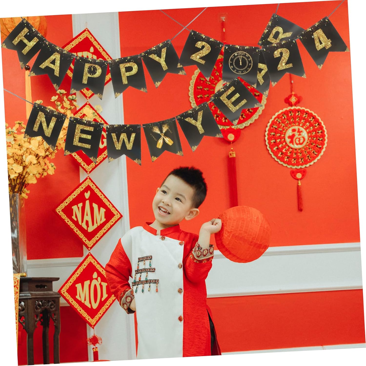 Banner per feste per il 2024: festeggia in modo efficace la tua festa di capodanno con questo banner sospeso, ti porterà buon umore, banner da cortile del festival. Bandiera celebrativa del 2024: questo striscione è lo striscione per la festa di capodanno, facile da usare, basta sospenderlo direttamente sul punto in cui desideri decorare, bandiera decorativa di capodanno. Ornamento per feste: delicato striscione sospeso, goditi il tuo felice momento festivo, crea una decorazione e delicata, decorazioni festive di capodanno. Decorazioni per il anno: eccellente sfondo fotografico o supporto fotografico per scattare foto e per sé con la famiglia o gli amici, decorazioni per il felice anno . Bandiera della stamina di capodanno: lo striscione di capodanno è adatto per decorare la parete di casa, il giardino, l'ufficio nel anno, lo striscione festivo.