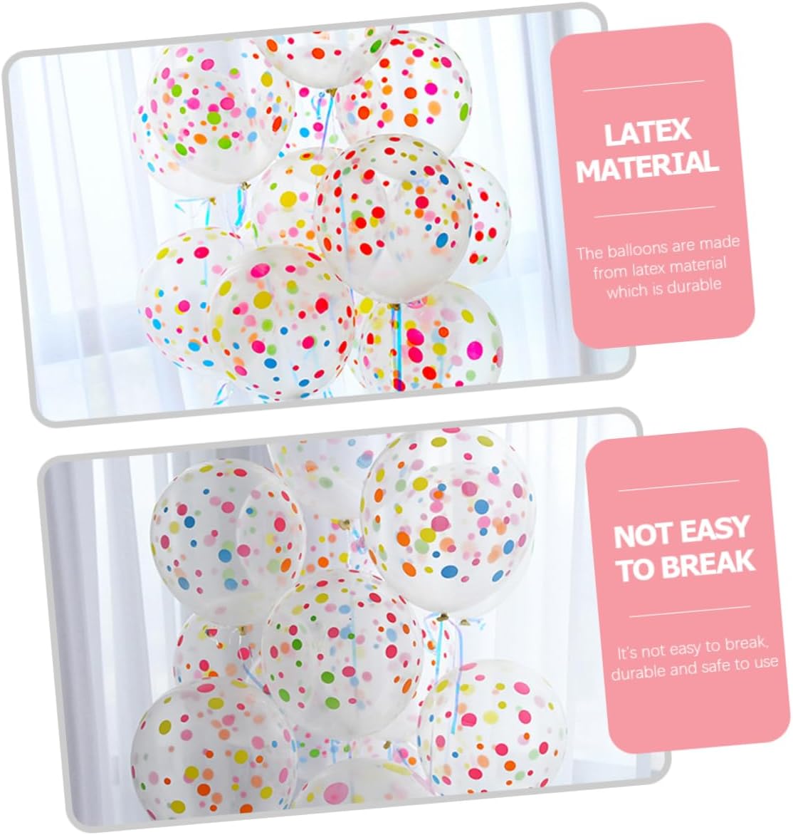 Palloncini per feste di compleanno: puoi utilizzare questi palloncini colorati a pois per goderti ore felici con i tuoi cari durante feste di compleanno, matrimoni, feste, feste di natale e capodanno, palloncini sfusi Decorazioni natalizie: decorazioni per attività indoor o outdoor, rendono la tua festa impressionante e attraente, decorazione per la doccia nuziale Palloncini con punti: il palloncino a punti colori vivaci soddisferà le tue esigenze di creazione di ghirlande di palloncini o archi di palloncini, palloncini colorati Decorazioni per feste di matrimonio: palloncini trasparenti possono galleggiare riempiti d'aria, portare molto e allegria alla festa, decorazioni per shower Decorazione di compleanno: i palloncini sono realizzati in materiale di lattice, non è facile da rompere e da usare, forniture per feste