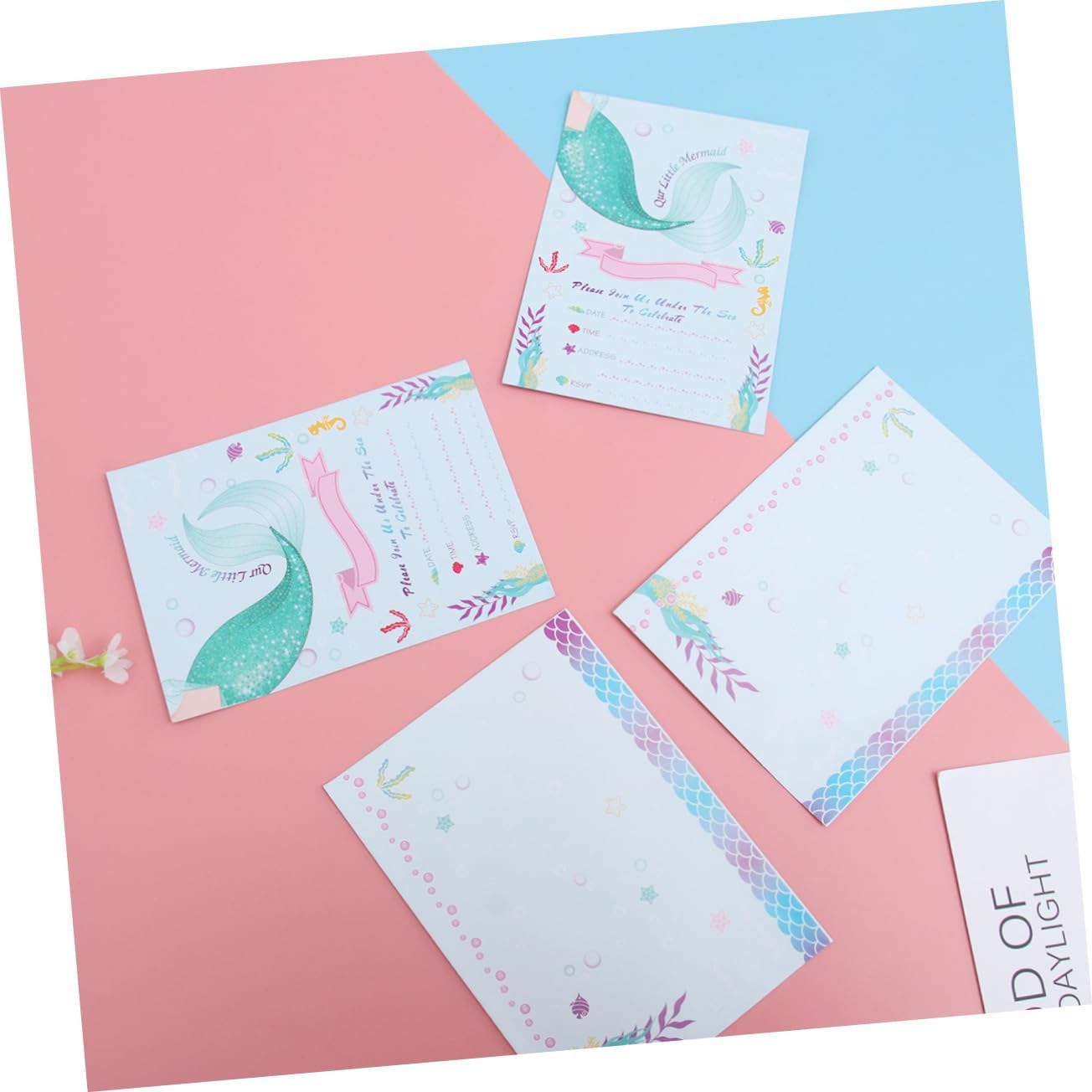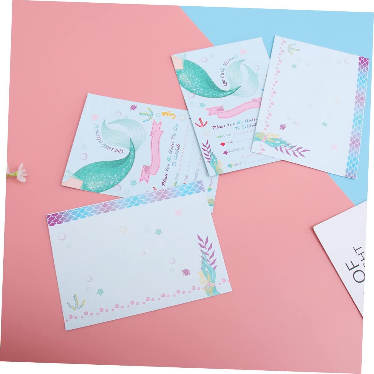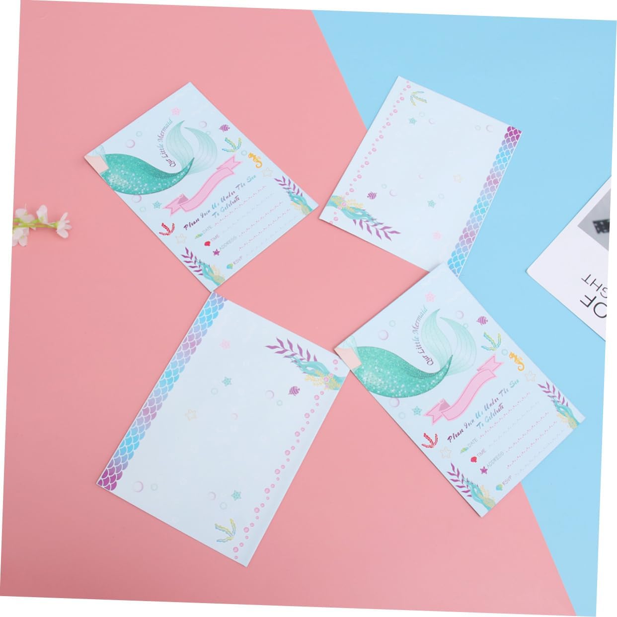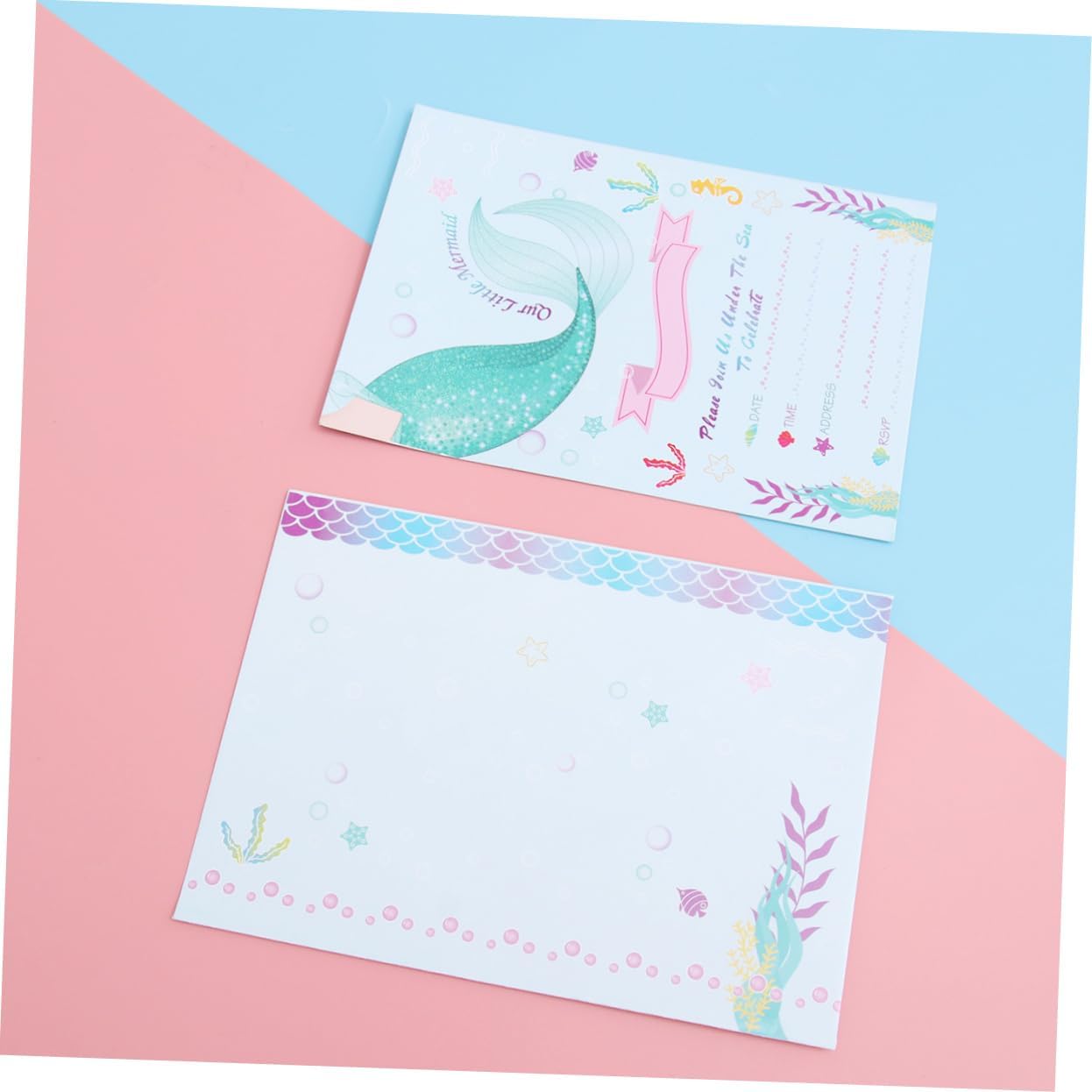Busta per invito a sirena: realizzata in carta leggera e di alta qualità, la carta è atossica. Biglietti d'invito per compleanno: ottimi per un compleanno a fumetti o un'altra festa a tema unicorno. Biglietto di carta: stampato con una e attraente forma a sirena, lascerà un'impressione profonda nei tuoi ospiti. Bomboniera: perfetta per feste di compleanno per bambini, baby shower e altro ancora. Decorazione della festa: diversi biglietti d'invito per feste, diverso senso di impressione visiva.