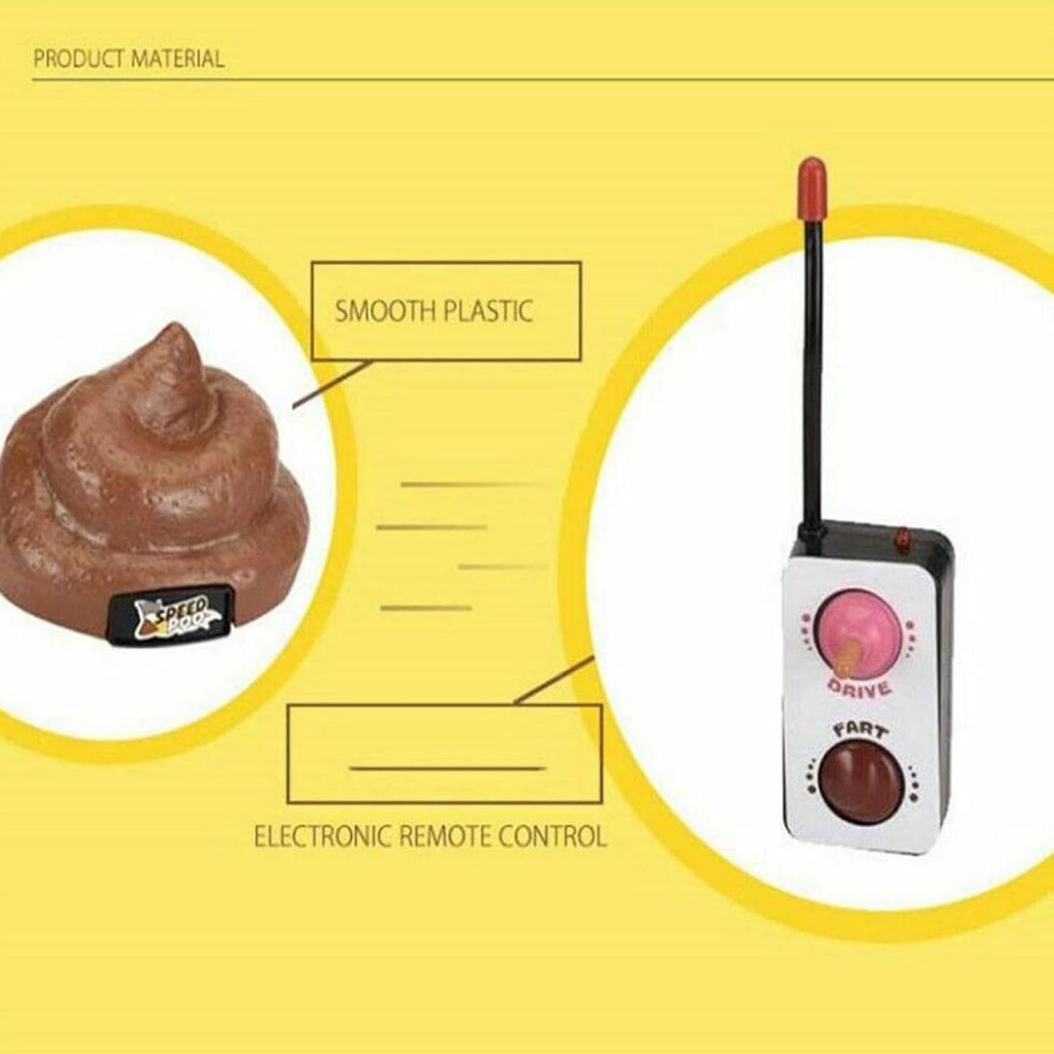 Giocattoli giocosi: finta cacca di controllo della turd può far ruotare un brush e 360 gradi, portando molto divertimento per te e i tuoi amici, un giocattolo di trucco divertente. Design rotante: può anche spostarsi in avanti e indietro senza ostacoli, il giocattolo per auto della cacca sta simulando i suoni della scoreggia mentre ruota, facile da guidare in qualsiasi direzione. Grandi idee regalo: l'auto della cacca di controllo telecomando è un buon trucco per farti divertire, interessante e speciale, adatto per dare ai tuoi amici o giocare con loro come giocattolo scherzo. Design facile a installazione: lo sgabello giocattolo in cacca rotante è molto facile da installare, basta mettere le batterie nel veicolo e nel controller, rendendo i tuoi bambini che si divertono a divertimento senza fine, alimentato da 2 batterie AA. ABS di alta qualità: lucido in superficie e la cacca di velocità di controllo molto fresca e telecomando è dipinta nell'ambiente e realizzata in materiale addominali durevole e di alta qualità.
