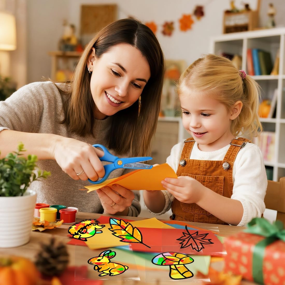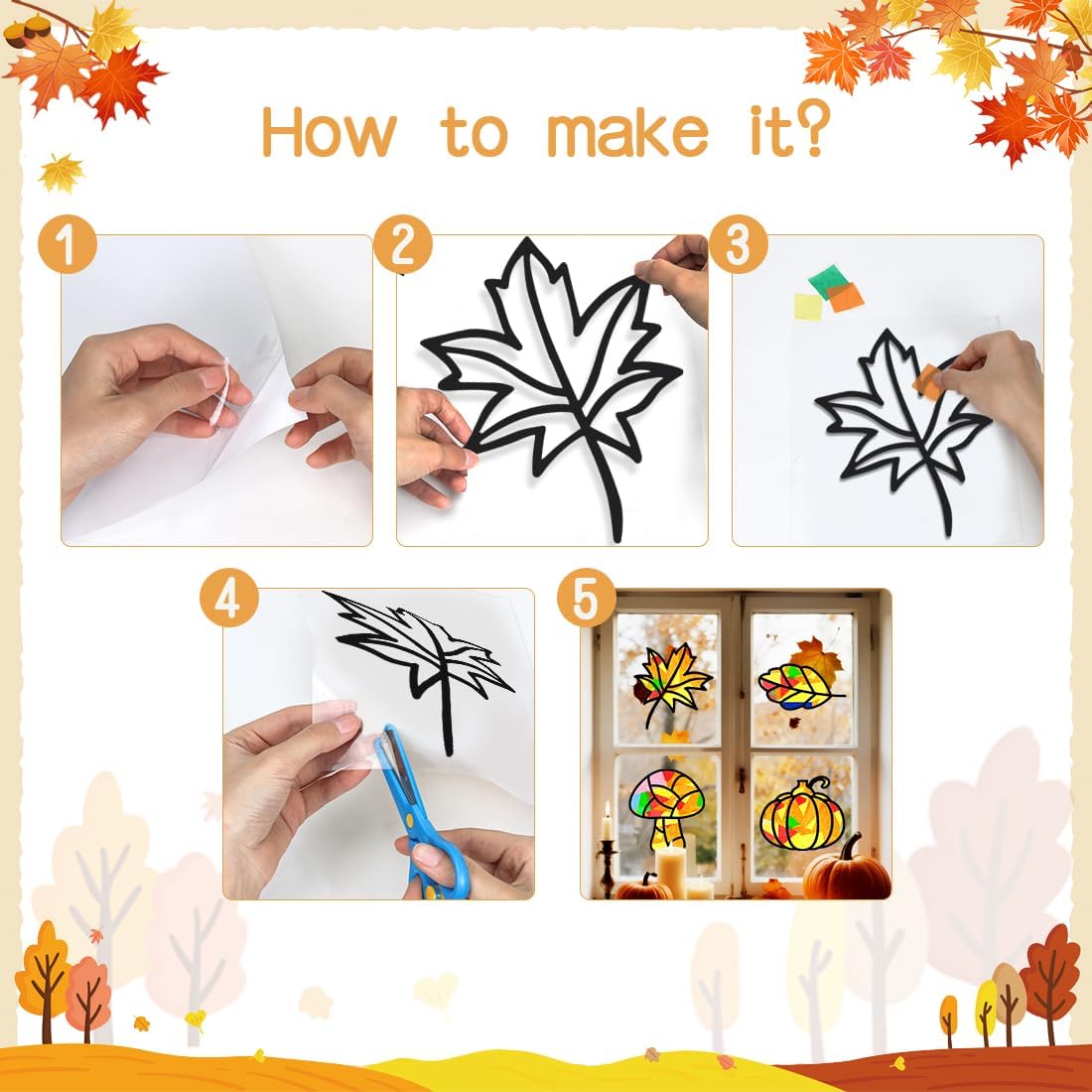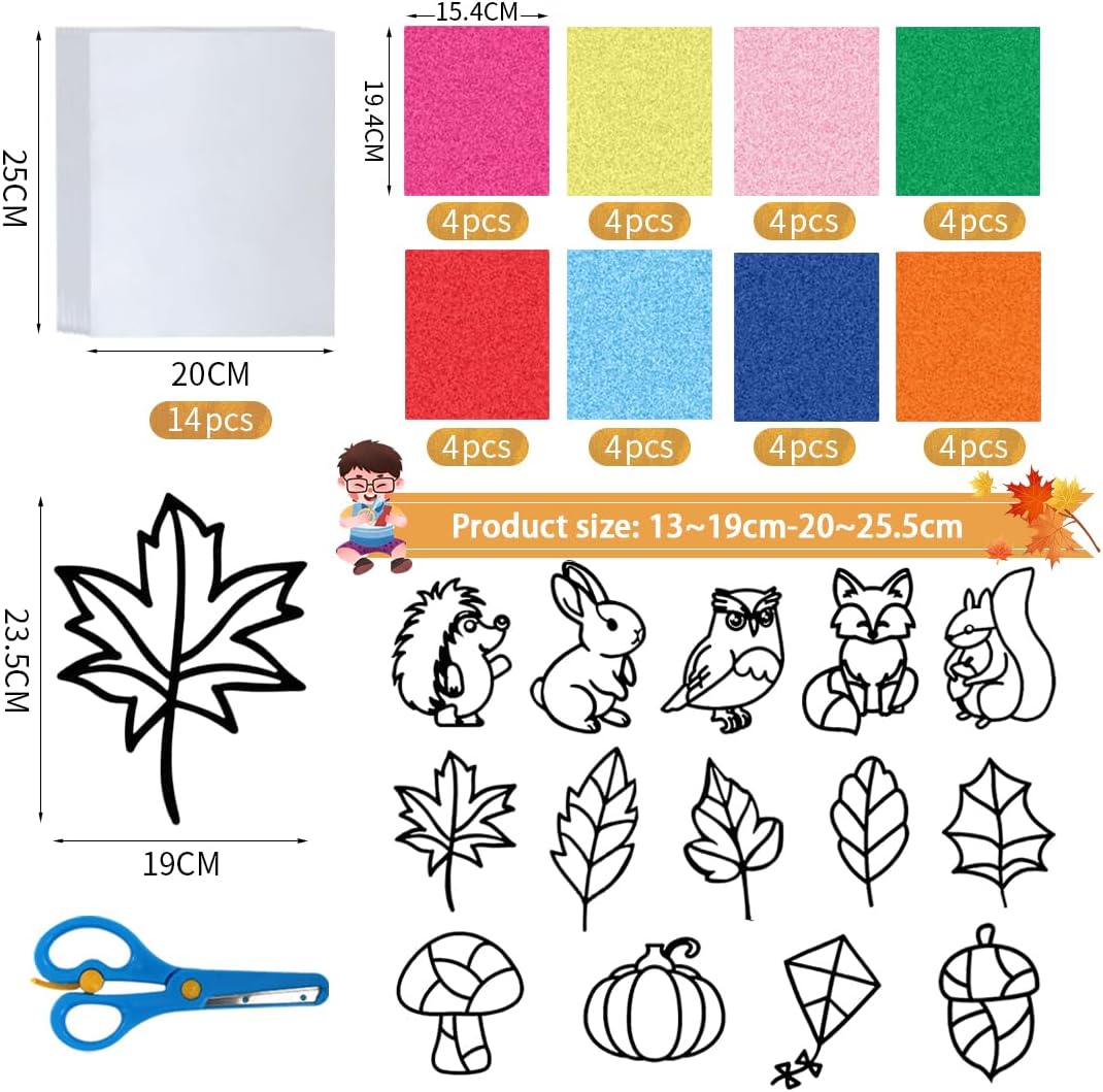🍁【Set di Lavoretti Autunnale】Questo kit di lavoretti autunnale per bambini include 14 adesivi modello neri, 14 adesivi trasferibili bianchi, 32 fogli colorati (4 ciascuno in 8 colori) e un paio di forbici con colori casuali. ✂【Facile da Usare】Puoi facilmente realizzare decorazioni autunnale per finestre da parete combinando colori e forme senza altri materiali aggiuntivi. 🎨【Fai da Te Creativo】I fai da te decorazione autunnale possono aiutare a coltivare l'immaginazione, la creatività e l'abilità pratica dei bambini e ti consentono anche di goderti un felice momento genitore-figlio con i tuoi figli. 🎁【Ampio Utilizzo】Il kit artigianali autunnale può essere utilizzato non solo per decorare le pareti delle finestre, ma può anche essere regalato ai bambini come regalo, anche una scelta ideale per attività artigianali. 💡【Servizio di Qualità】Ci impegniamo a fornire un eccellente servizio clienti. In caso di domande, puoi contattarci in qualsiasi momento.