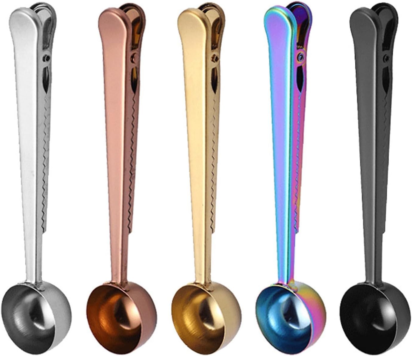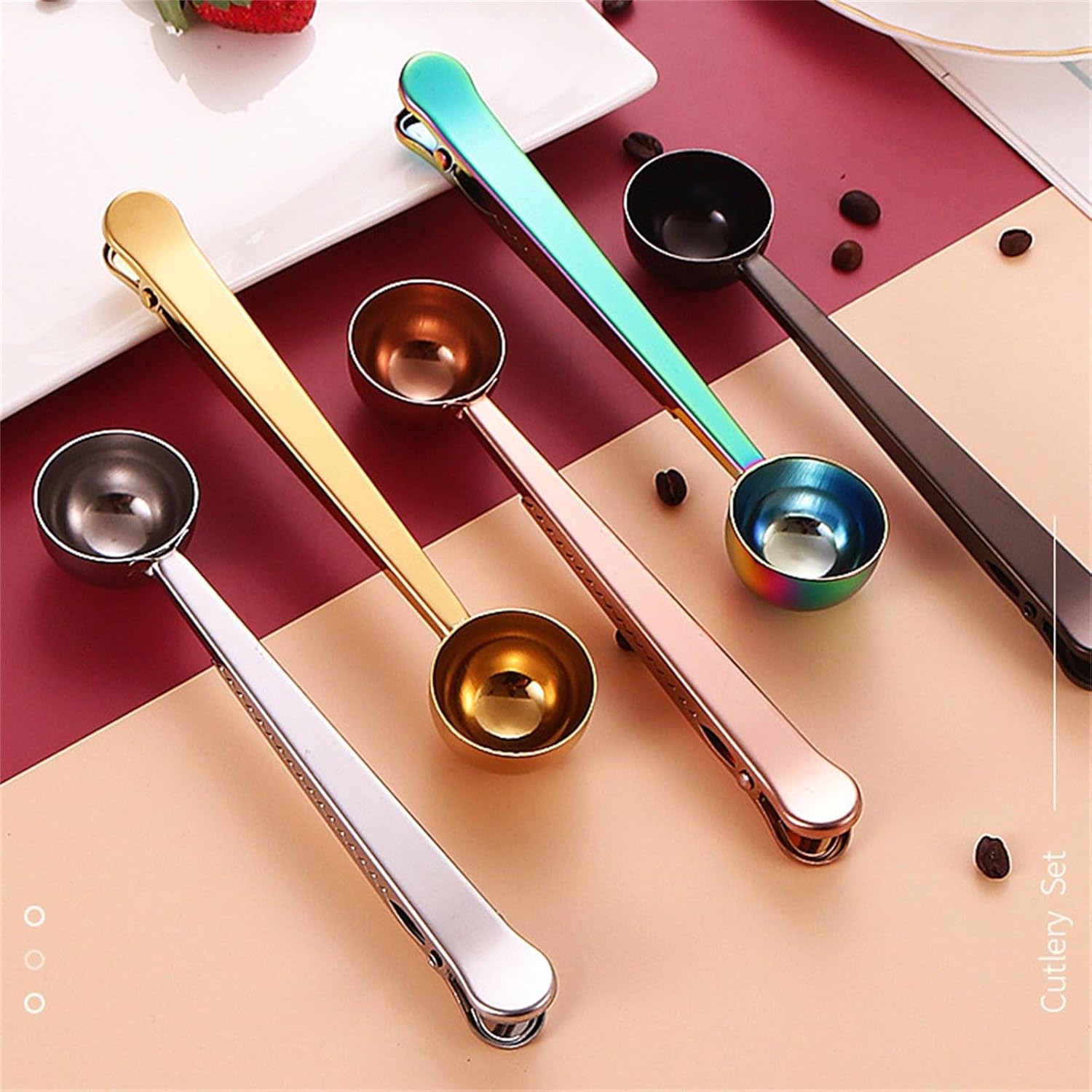 Comodo design 2 in 1: il nostro cucchiaio da tavola presenta una combinazione di clip da caffè e una clip per sacchetti di tenuta, strumento da cucina perfetto per il supporto del cucchiaio: clip nere, oro, rosa oro, argento e colorato. Versatile e multiuso: caffè, il nostro è perfetto per misurare: proteine in polvere, Matcha, Mate, cucchiaino, tè, zucchero, e vari contenitori e sacchetti di caffè. Tavolo da cucina. Il cucchiaio da tavola con clip di chiusura è realizzato in rame inossidabile di alta qualità. Il nostro prodotto ha un 30 giorni, qualsiasi domanda, contattare il nostro . Cucchiai dosatori per caffè perfetti: goditi il supporto per caffè macinato, caffè in polvere, caffè istantaneo in polvere, tè istantaneo. Il nostro cucchiaio da caffè nero misura esattamente un cucchiaio. Clip di chiusura per sacchetti sicuri: mantiene il caffè e il cappuccio per saldare lo zucchero, freschi e saporiti con la clip per sacchetti. E dal viziare il tuo caffè.