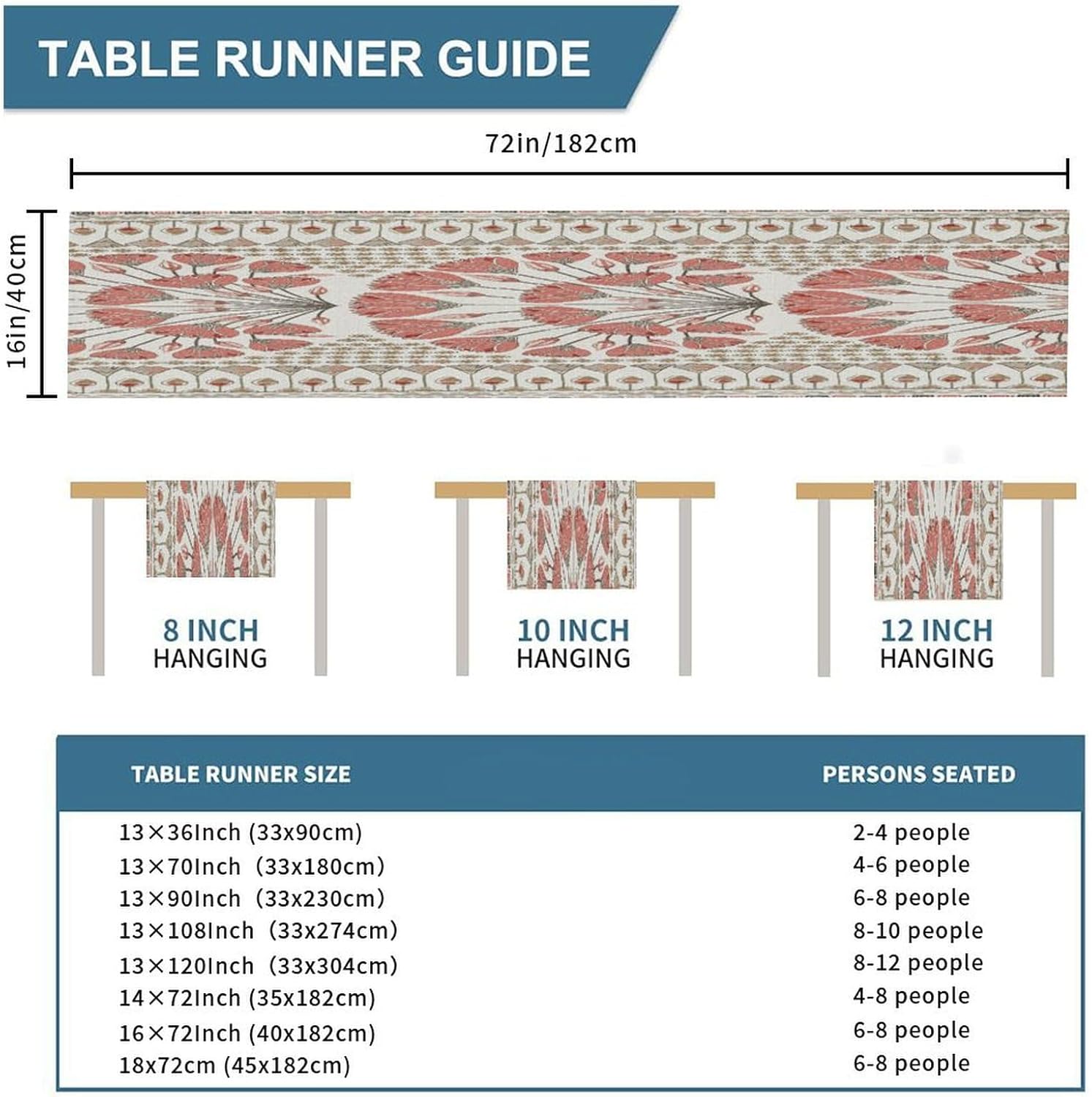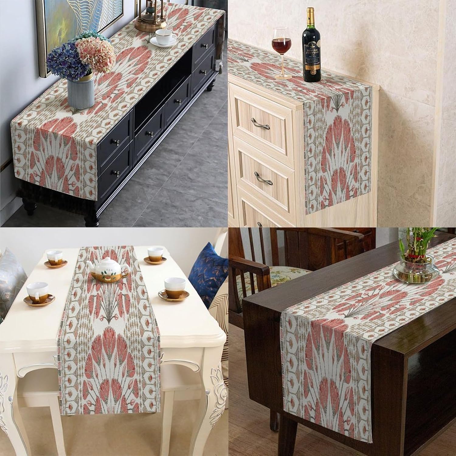 Dimensioni: 182x40 cm Materiale: realizzato in morbido lino di cotone, comodo e durevole, resistente all'usura. Protegge la superficie del tavolo per la decorazione quotidiana della tavola e protegge la superficie del tavolo da pentole calde, graffi e danni dovuti al calore. GRANDE DECORAZIONE: i runner da tavolo sono un modo rapido, semplice ed economico per aggiornare il tavolo della sala da pranzo, la camera da letto e la cassettiera. Sarà il tuo compagno perfetto per colazione, pranzo e cena. Questa tovaglia dal design elegante aumenterà il fascino del tavolo da pranzo. Versatile: stai cercando un runner da tavolo per più occasioni? Non cercare più! Questo runner da tavolo può essere indossato dalla festa del Ringraziamento alla festa di Natale e funziona bene anche per una serata estiva informale. Questo è anche un regalo perfetto per i tuoi cari per l'inaugurazione della casa, il Ringraziamento o il Natale. Ampie applicazioni: caratterizzato da un motivo elegante con un bellissimo bordo in nappa, sembra bello e vintage. Adatto per l'uso quotidiano, balli studenteschi, matrimoni, feste o vacanze speciali. Ideale per uso interno ed esterno, come cucina, giardino, tè pomeridiano, caffè, cena, balcone, potlucks.