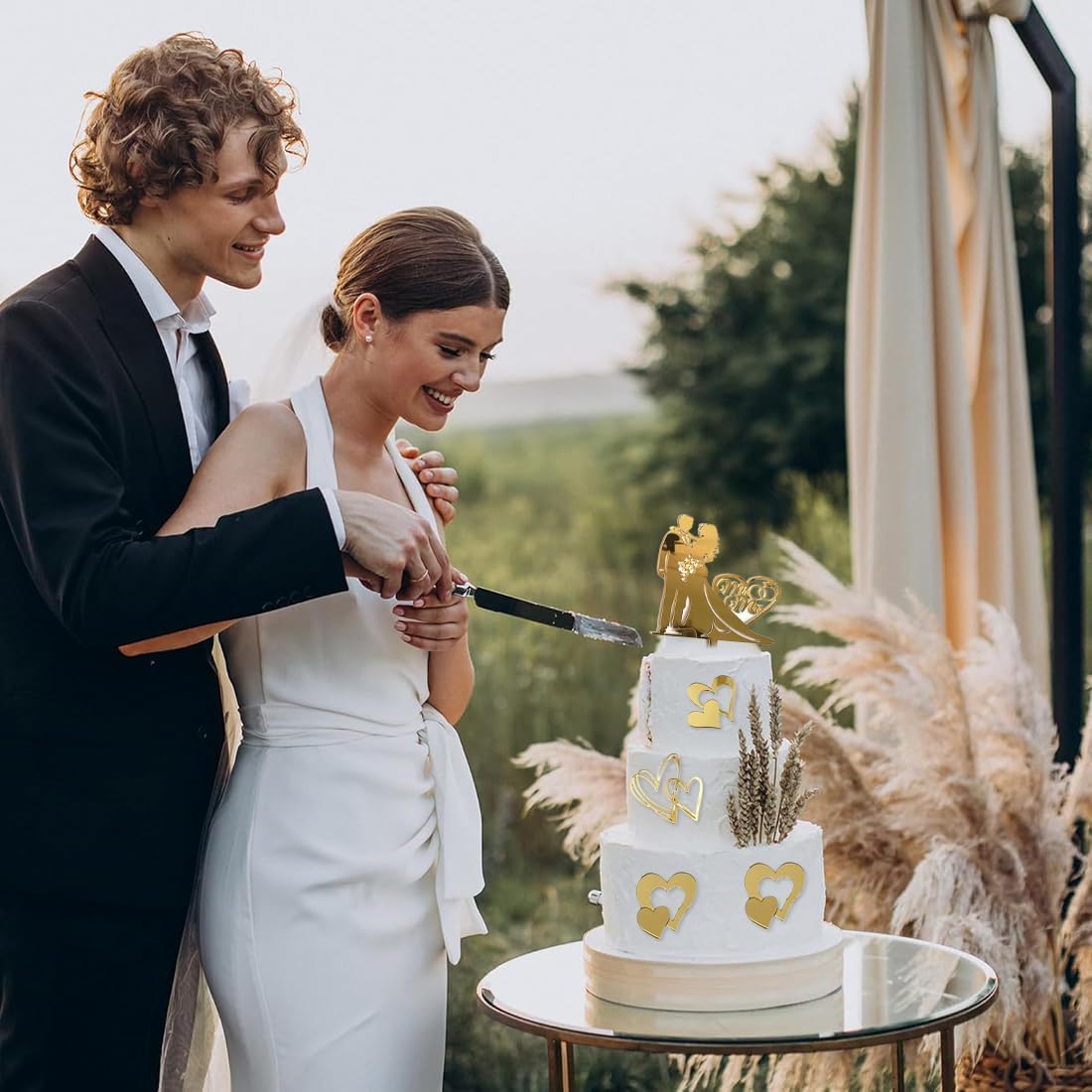 Materiale naturale e sicuro: Il cake topper matrimonio è realizzato in legno naturale, lavorato con cura per garantire una superficie liscia e priva di imperfezioni, ideale per decorare la torta in modo elegante e sicuro Design personalizzato: Perfetto per celebrare matrimoni o anniversari, questo topper torta matrimonio aggiunge un tocco unico e raffinato alla tua torta, rendendo il tuo evento ancora più speciale Decorazione versatile: Ideale non solo per torte nuziali, ma anche per cupcakes, muffin, frutta e altre decorazioni per feste come compleanni, baby shower, lauree e San Valentino Eleganza per gli sposi: Questo cake topper sposi rappresenta la coppia di sposi in modo romantico, aggiungendo un tocco di classe e raffinatezza alle decorazioni del tuo matrimonio Perfetto per ogni occasione: Oltre ai matrimoni, è adatto per feste in casa, celebrazioni natalizie e altre ricorrenze, rendendo ogni evento indimenticabile con un dettaglio decorativo unico