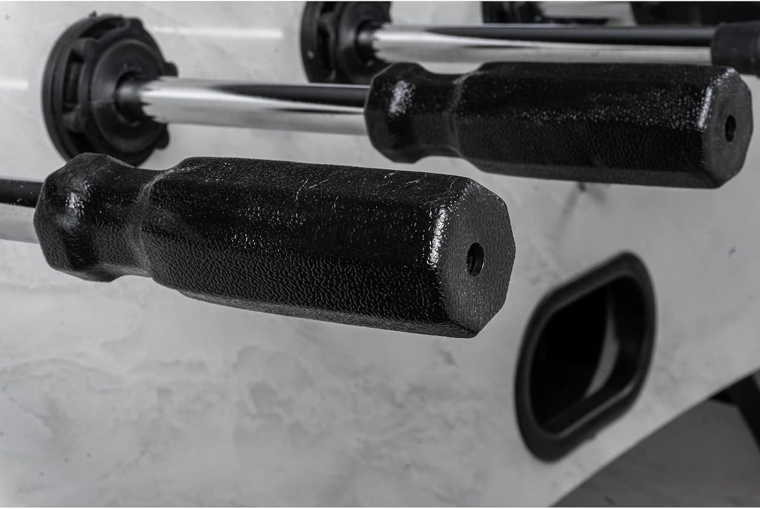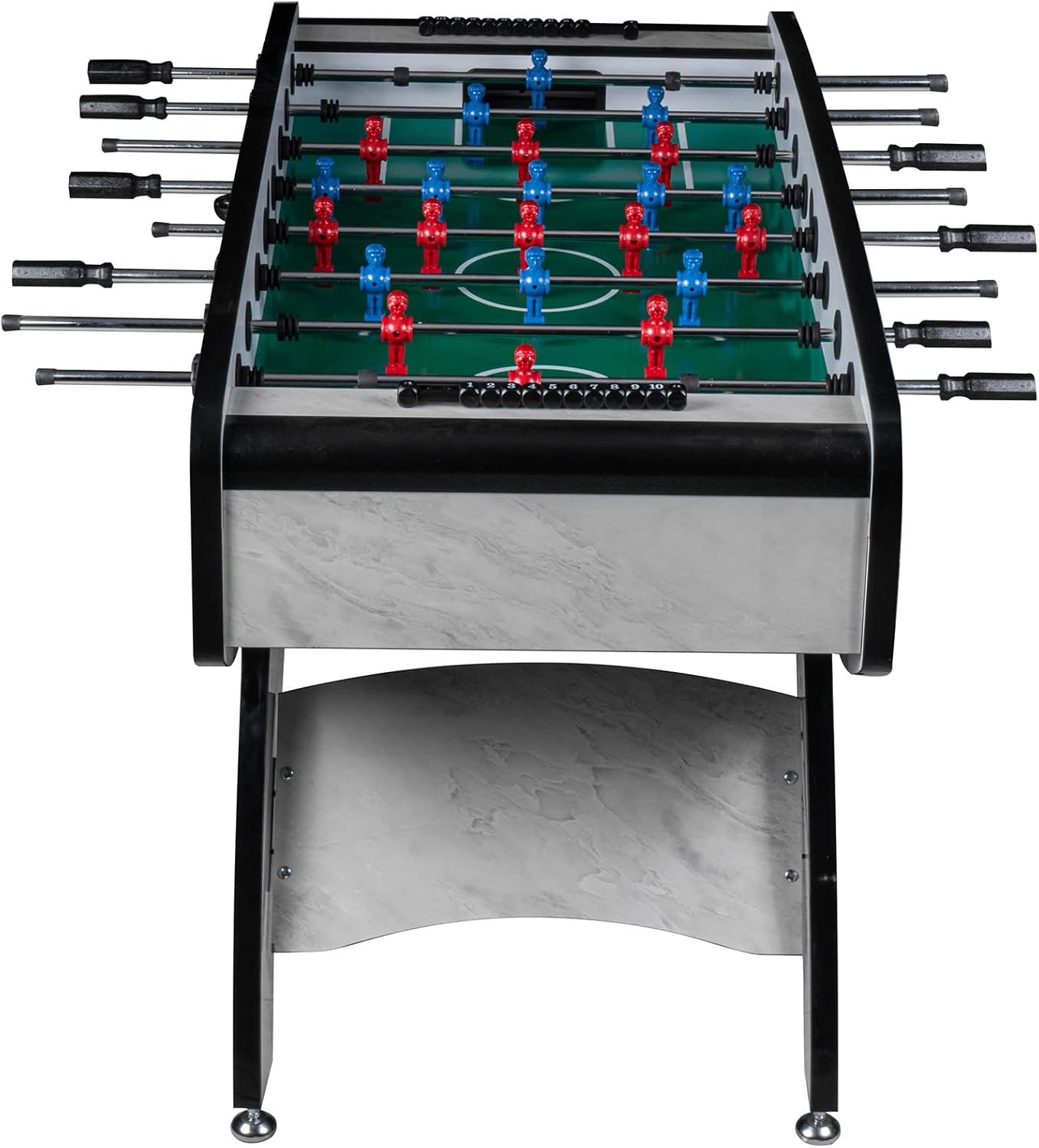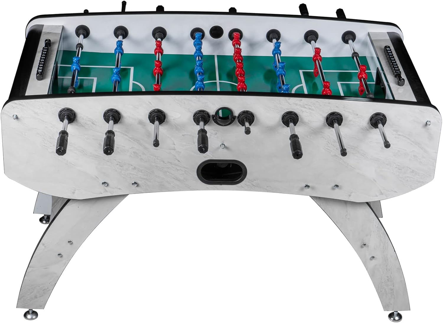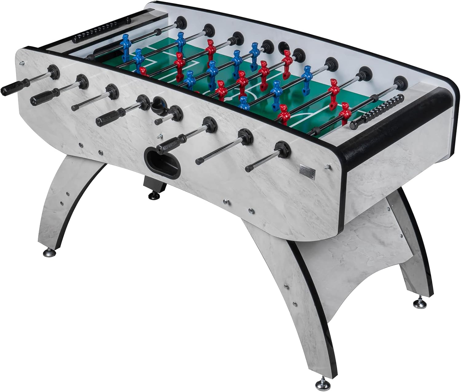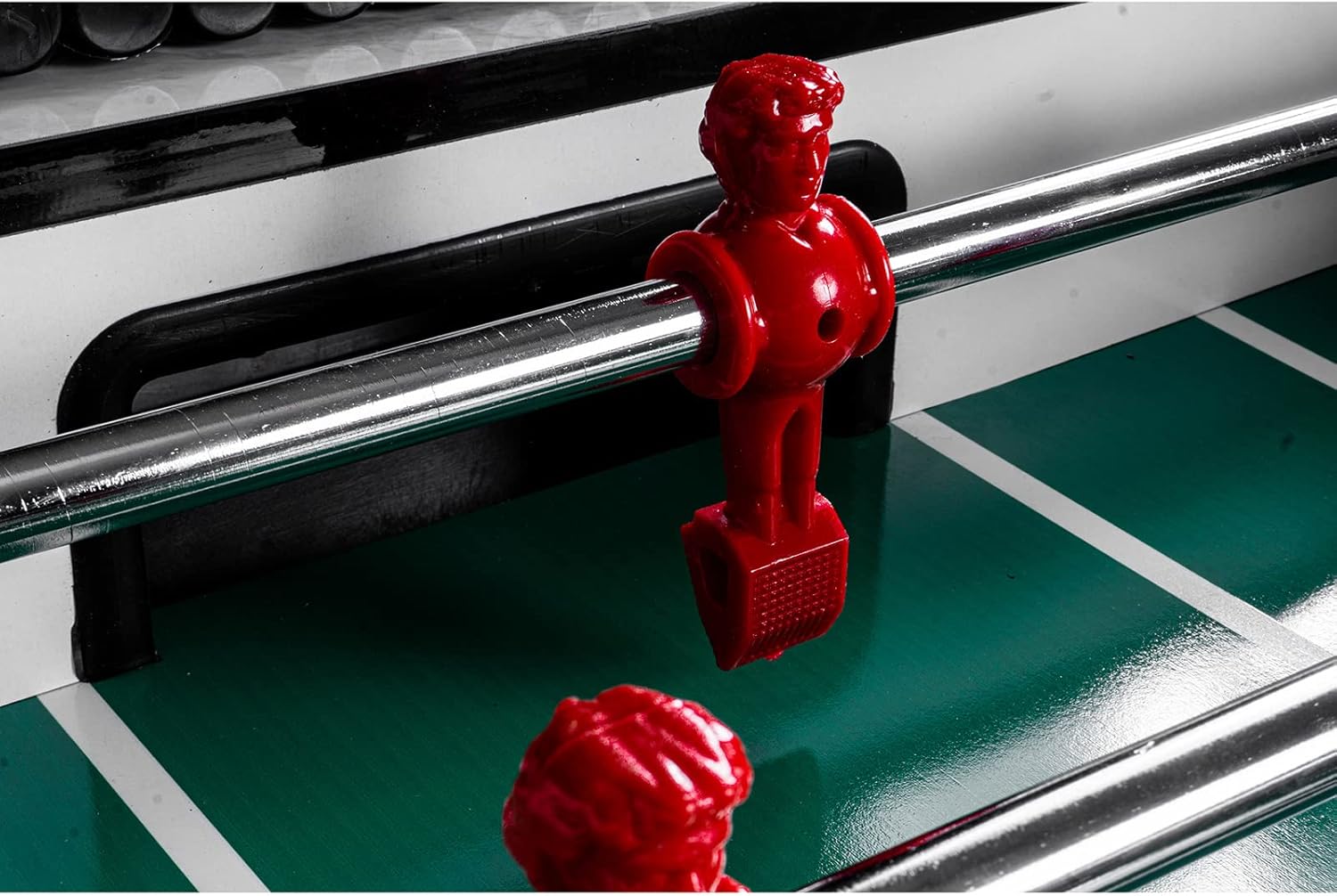 Calciobalilla professionale da interni Colore: Bianco con campo di gioco verde Inclusi pezzi di gioco: Blu / Rosso Area di gioco: 116 x 66 cm Dimensioni: A: 90 cm x L: 140 cm x L: 70 cm Numero di palline: 5 Materiale del corpo: MDF 32 mm Peso: 80 kg Produttore: RAMROXX - qualità professionale con lavorazione robusta e di alta qualità con un peso di 80 kg!! - Utilizzo versatile, sia in una cantina per hobby che in una clubhouse - Evidenziazione visiva grazie all'esclusivo design a colori del corpo - Nel set sono incluse 22 miniature più 2 miniature di ricambio - La fornitura comprende anche un segnaporta e palline - Le miniature hanno una classica formazione 1-2-5-3 - Canne da gioco molto facili da usare per alte velocità di tiro - Le canne hanno impugnature ergonomiche e antiscivolo - Il corpo è realizzato in materiale MDF da 32 mm per una lunga durata. - Piedini regolabili in altezza per un allineamento ottimale della superficie di gioco - Grazie alle gambe solide, questo calcio balilla è molto sicuro e stabile. - Il kicker è molto facile da configurare. È necessario assemblare solo le gambe del tavolo, le aste e i giocatori, comprese le istruzioni di montaggio dettagliate in tedesco!!