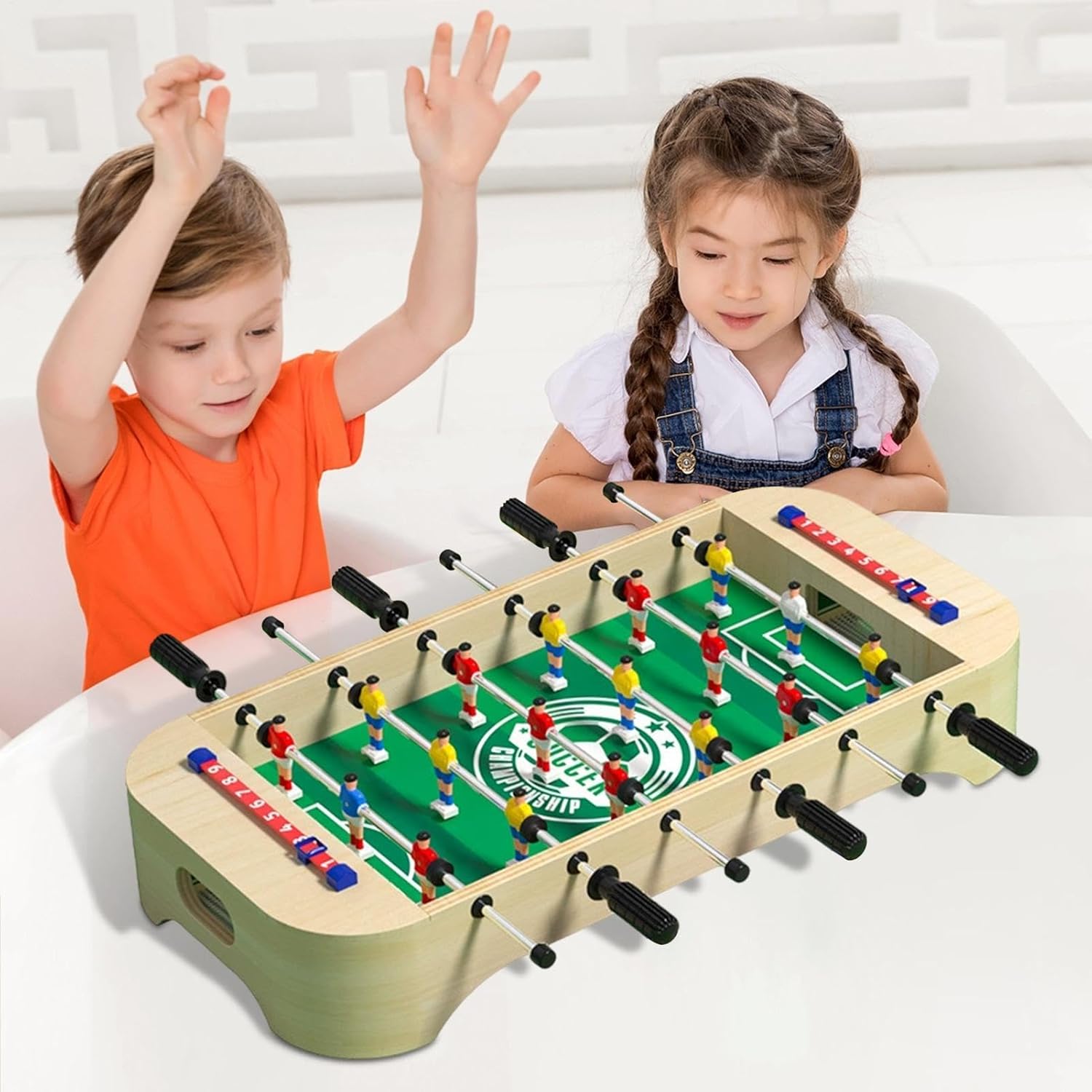 Perfetto per i bambini e il divertimento in famiglia: questo biliardino è un gioco da tavolo ideale per i bambini, offrendo ore di intrattenimento per tutta la famiglia. Le sue dimensioni compatte lo rendono perfetto per giocare a casa, feste o riunioni, riunendo tutti insieme per... Costruzione in legno resistente e robusta: realizzato in legno di alta qualità, questo biliardino è costruito per durare e resistere al gioco attivo. Il design robusto garantisce durata, rendendolo un gioco che piacerà sia ai bambini che agli adulti per anni. Design compatto e salvaspazio: progettato per essere riposto e utilizzato facilmente su qualsiasi appartamento, questo gioco di biliardino da tavolo è perfetto per piccoli spazi. È facile da installare e riporre, il che lo rende perfetto per appartamenti, dormitori o come attività durante vacanze e festività. Ottimo per socializzare e creare legami: questo gioco da tavolo di calcio incoraggia l'interazione sociale, il lavoro di e una sana competizione. È perfetto per le vacanze, le riunioni o le serate di gioco in famiglia, contribuendo a creare ricordi indelebili con gli amici e i propri cari. Divertimento per tutte le età e occasioni: che tu stia festeggiando il Ringraziamento, godendoti un fine settimana con la famiglia o un'attività festiva, questo biliardino porta gioia in ogni occasione. Il suo gameplay facile da imparare garantisce che tutti, indipendentemente dall'età, possano partecipare al divertimento.