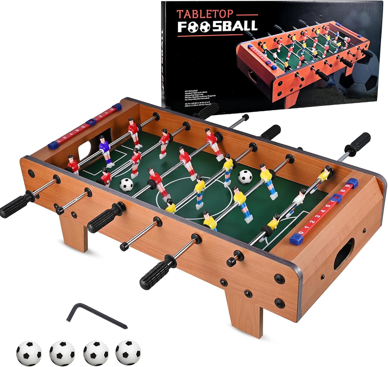 ★ Segnapunti: Con i segnapunti (numerati da 1 a 10) hai sempre sotto controllo il punteggio. Il tipico rumore metallico (dovuto al cubo che scatta in posizione durante il movimento) fornisce il sottofondo acustico appropriato per un gol. ★ Manici: con una lunghezza di 10 cm e un diametro di 3 cm, i manici garantiscono sempre una buona sensazione e il pieno controllo del gioco. ★ Sicurezza: per ridurre il rischio di infortuni, le barre si avvicinano alla tavola solo di quanto basta per garantire una distanza pari almeno alla larghezza di un dito. ★ Aste: le aste cave hanno un diametro di 13 mm e uno spessore di 2 mm. Il peso ridotto (rispetto alle aste intere) consente un gioco veloce con meno affaticamento di braccia e polsi, ideale per principianti e musicisti avanzati. ★ Pedine: le pedine avvitate (intercambiabili) e verniciate hanno una distanza ottimale dal campo di gioco. Di conseguenza, la pallina può essere colpita esattamente al centro del baricentro, garantendo così una migliore giocabilità ed evitando che la pallina si sollevi.