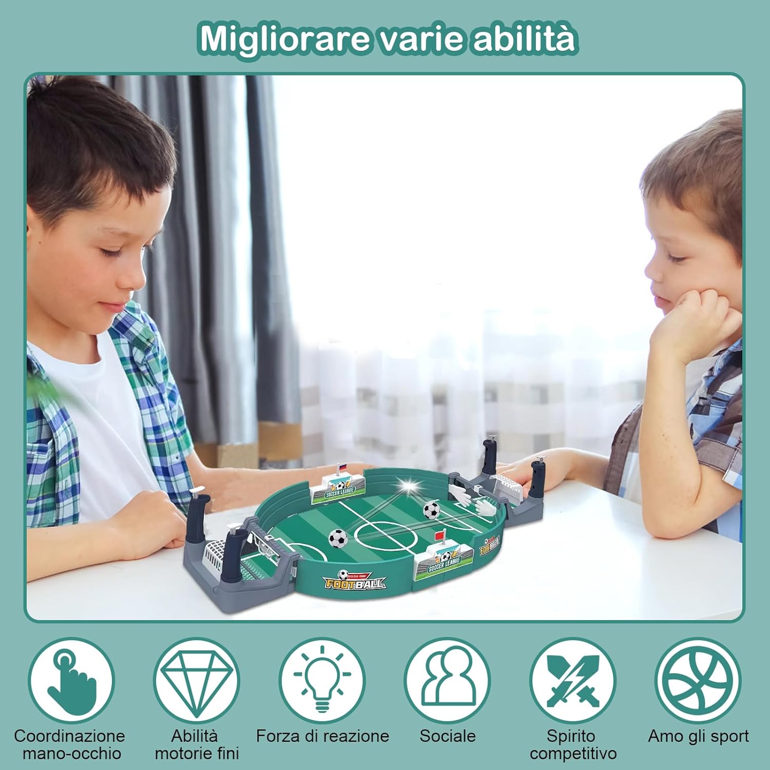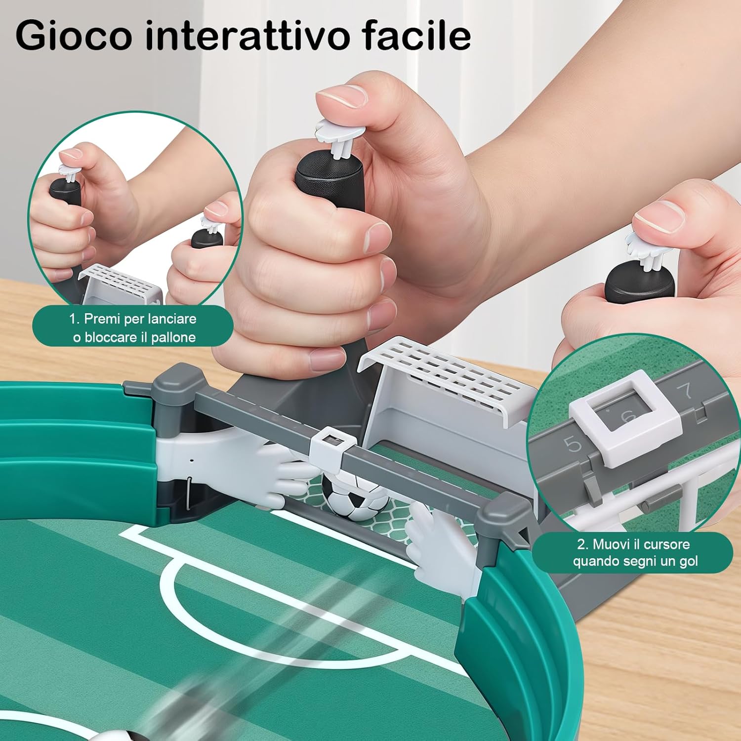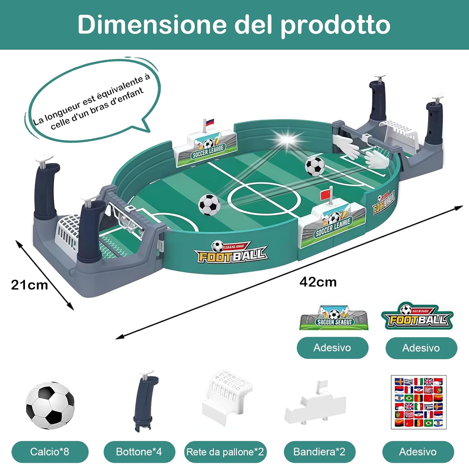 ⚽Materiali sicuri: questo giocattolo è realizzato in plastica di alta qualità, non tossica, senza odori irritanti, con bordi lisci, sicuro da usare per i bambini. I componenti nella zona del manico sono molto robusti e possono sopportare un uso intensivo ⚽Interazione: Questo giocattolo è adatto per 2-4 persone che giocano insieme, aumenta il divertimento del gioco e promuove le relazioni tra familiari o amici. Inoltre, aiuta a migliorare la coordinazione occhio-mano e le capacità di reazione ⚽Accessori ricchi: Questo giocattolo simula il più possibile le scene del campo da calcio, come lo stadio, le recinzioni, ecc. Inoltre ci sono adesivi decorativi e un punteggio, che aumentano ulteriormente il divertimento del gioco ⚽Portatile: Questo giocattolo ha un design assemblato, con dimensioni di 32*21*6cm una volta montato, è di dimensioni compatte e può essere utilizzato ovunque. È anche possibile smontarlo e portarlo con sé quando si esce, risparmiando spazio ⚽Ampie possibilità di utilizzo: adatto per riunioni familiari, feste, campeggio e altre occasioni, ed è anche una scelta ideale per regali durante le festività (Natale, compleanni, festa dei bambini, ecc.)
