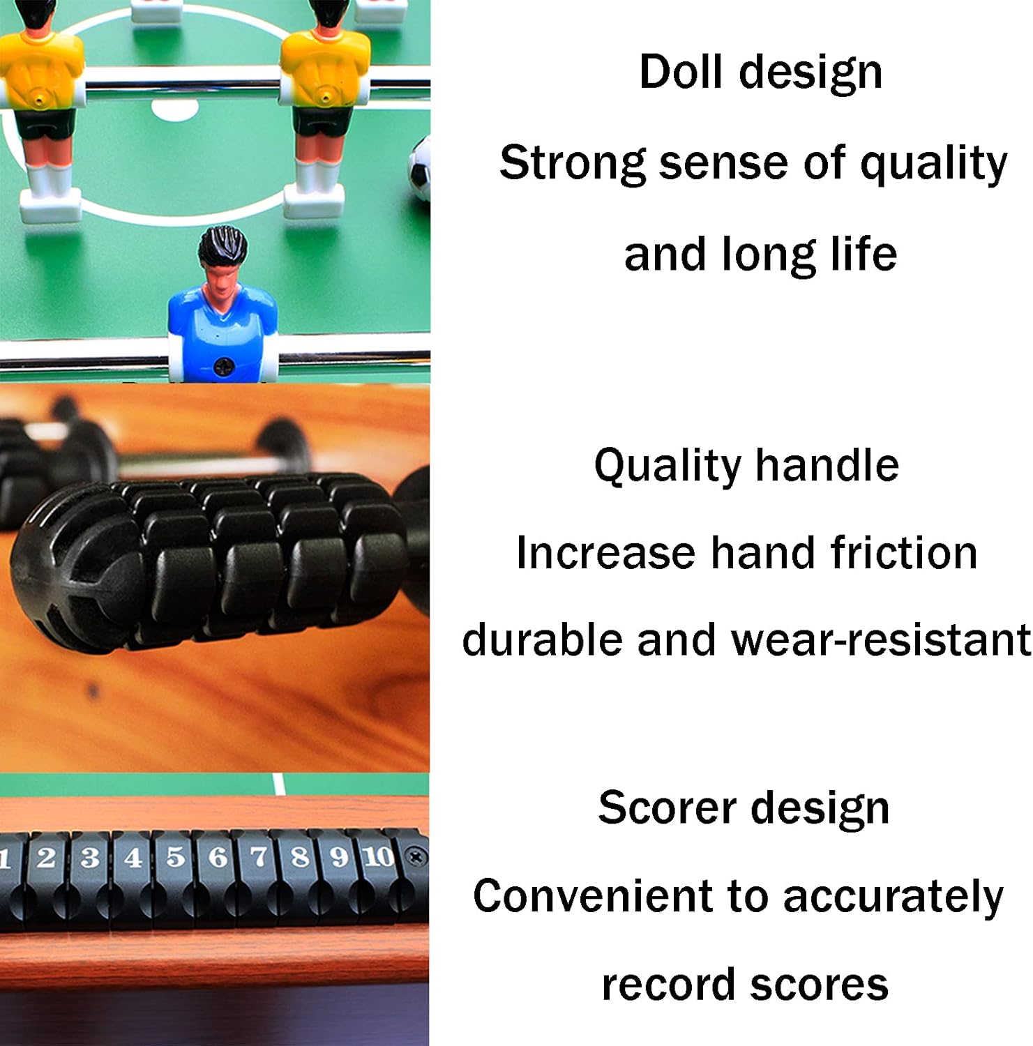 Intrattenimento senza fine: i giochi interattivi per famiglie sono popolari e facili da giocare, perfetti per tutta la famiglia. Ideali per noiose serate di giochi in famiglia o giochi alcolici per adulti. Versatilità ed eleganza: il calcio balilla con manico in legno è pensato per portare la classe in qualsiasi scantinato, sala giochi, tombino, bar, sala giochi, lounge o cortile. Goditi l'emozione: i segnapunti manuali su entrambi i lati ti permettono di registrare i punteggi, rendendo la partita ancora più emozionante. Il calcio balilla può migliorare la coordinazione e l'equilibrio. Superficie liscia: il campo sportivo ampio e liscio garantisce un utilizzo più confortevole e un'esperienza di gioco migliore. DIVERTIMENTO SENZA FINE: questo popolare e divertente gioco classico è facile da giocare ed è un fantastico gioco interattivo per famiglie, eccellente per tutta la famiglia, perfetto per una serata di giochi in famiglia innocente o per un gioco da adulti.