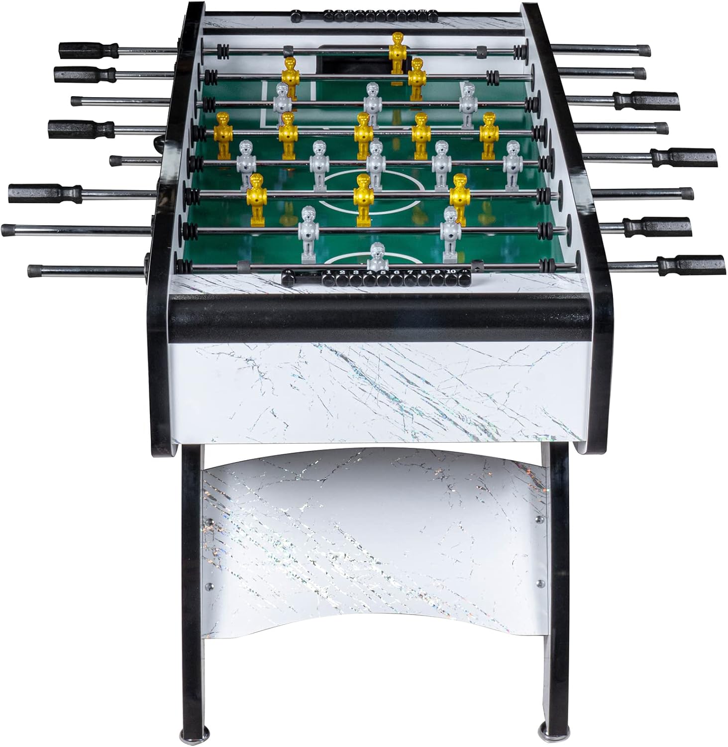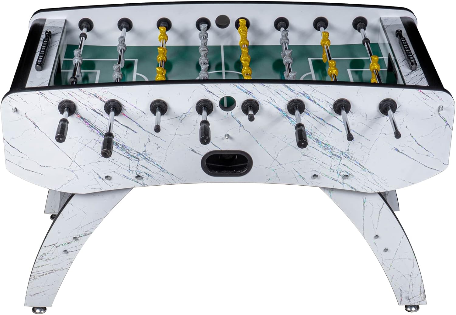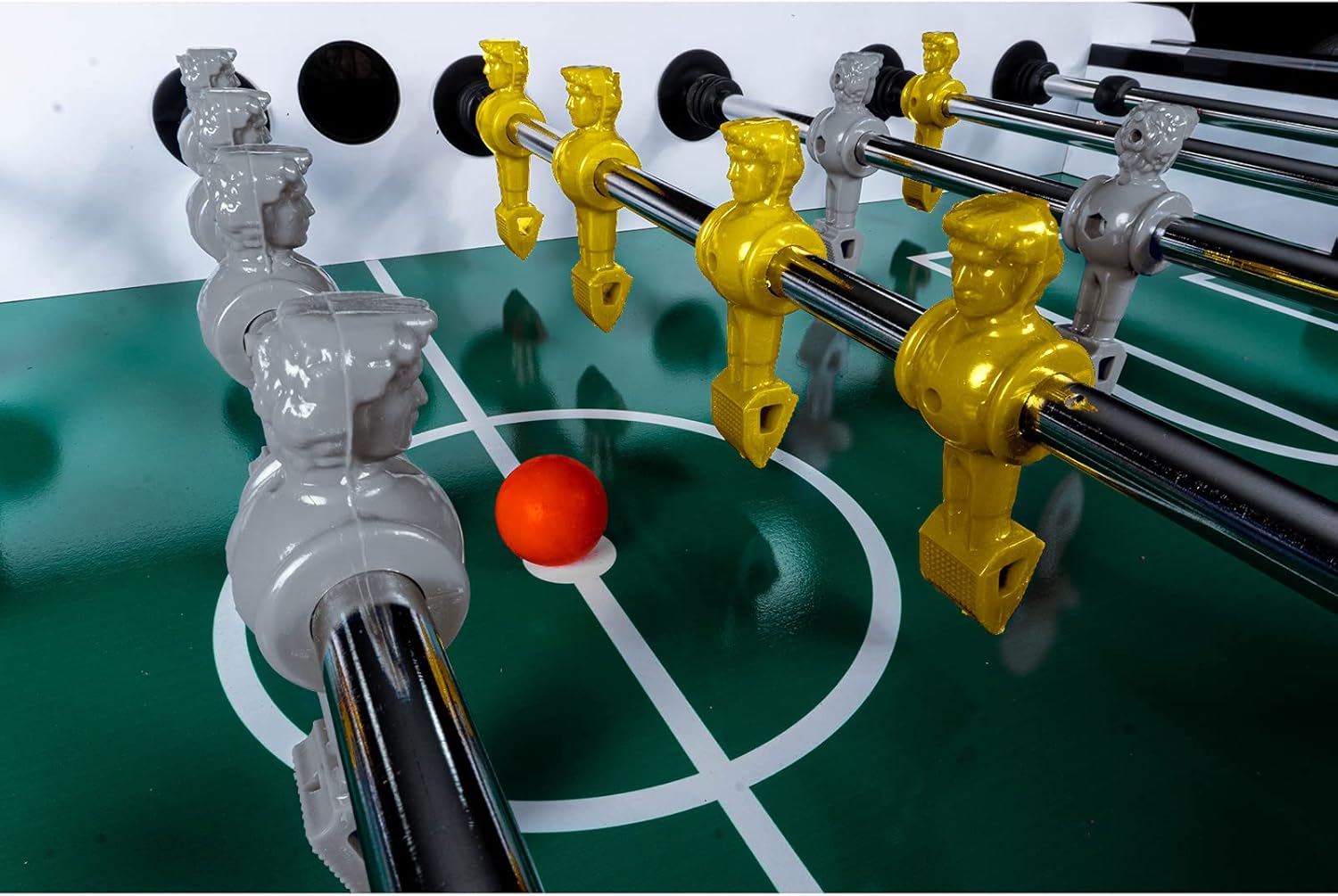 Calciobalilla da interni premium Colore: Bianco con campo di gioco verde Inclusi pezzi di gioco: Grigio / Giallo Area di gioco: 116 x 66 cm Dimensioni: A: 90 cm x L: 140 cm x L: 70 cm Numero di palline: 5 Materiale del corpo: MDF 32 mm Peso: 80 kg Produttore: RAMROXX - qualità professionale con lavorazione robusta e di alta qualità con un peso di 80 kg!! - Utilizzo versatile, sia in una cantina per hobby che in una club house - Evidenziazione visiva grazie all'esclusivo design a colori del corpo - 22 miniature più 2 miniature di ricambio sono incluse nel set - La fornitura comprende anche un segnaporta e palline - Le miniature hanno una classica formazione 1-2-5-3 - Canne da gioco molto facili da usare per alte velocità di tiro - Le canne hanno impugnature ergonomiche e antiscivolo - Il corpo è realizzato in materiale MDF da 32 mm per una lunga durata. - Piedini regolabili in altezza per un allineamento ottimale della superficie di gioco - Grazie alle gambe solide, questo calcio balilla è molto sicuro e stabile. - Il kicker è molto facile da configurare. È necessario assemblare solo le gambe del tavolo, le aste e i giocatori, comprese le istruzioni di montaggio dettagliate in tedesco!!