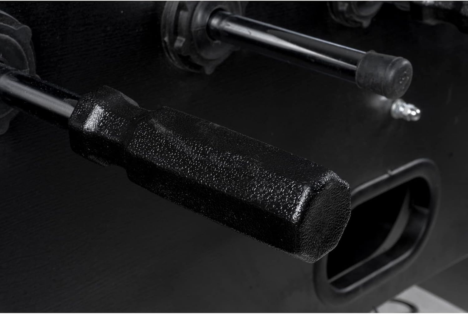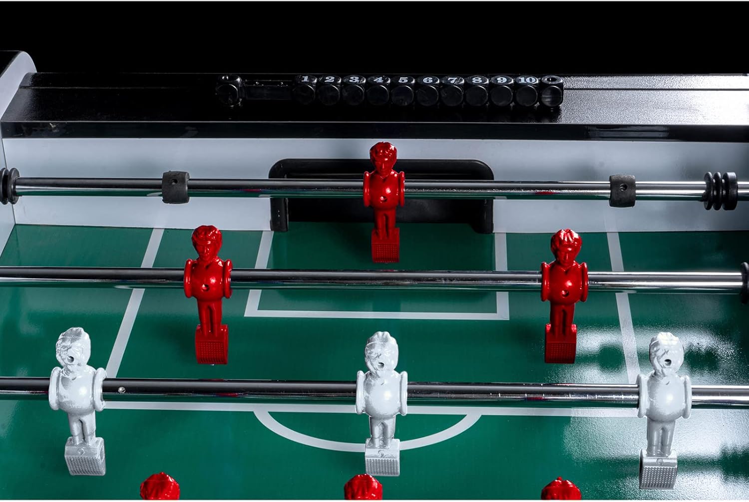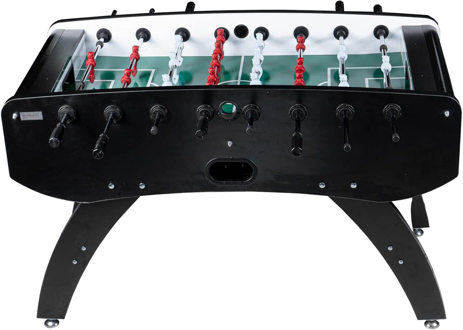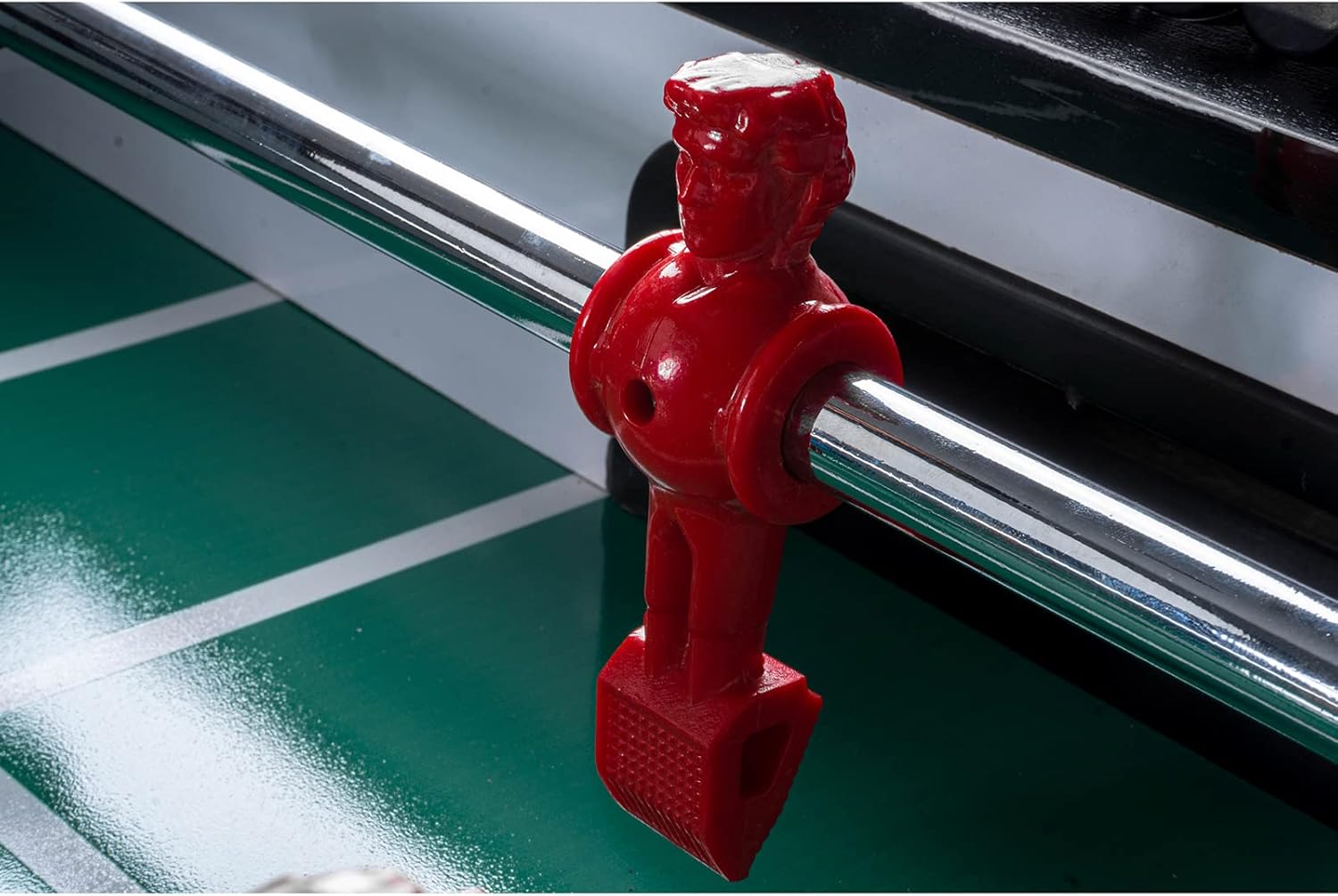Calciobalilla professionale da interni Colore: Nero con campo di gioco verde Inclusi pezzi di gioco: Bianco / Rosso Area di gioco: 116 x 66 cm Dimensioni: A: 90 cm x L: 140 cm x L: 70 cm Numero di palline: 5 Materiale del corpo: MDF 32 mm Peso: 80 kg Produttore: RAMROXX - Qualità professionale con lavorazione robusta e di alta qualità con un peso di 80 kg!! - Utilizzo versatile, sia in una cantina per hobby che in una club house - Evidenziazione visiva grazie all'esclusivo design a colori del corpo - 22 miniature più 2 miniature di ricambio sono incluse nel set - La fornitura comprende anche un segnaporta e palline - Le miniature hanno una classica formazione 1-2-5-3 - Canne da gioco molto facili da usare per alte velocità di tiro - Le canne hanno impugnature ergonomiche e antiscivolo - Il corpo è realizzato in materiale MDF da 32 mm per una lunga durata. - Piedini regolabili in altezza per un allineamento ottimale della superficie di gioco - Grazie alle gambe solide, questo calcio balilla è molto sicuro e stabile. - Il kicker è molto facile da configurare. È necessario assemblare solo le gambe del tavolo, le aste e i giocatori, comprese le istruzioni di montaggio dettagliate in tedesco!!