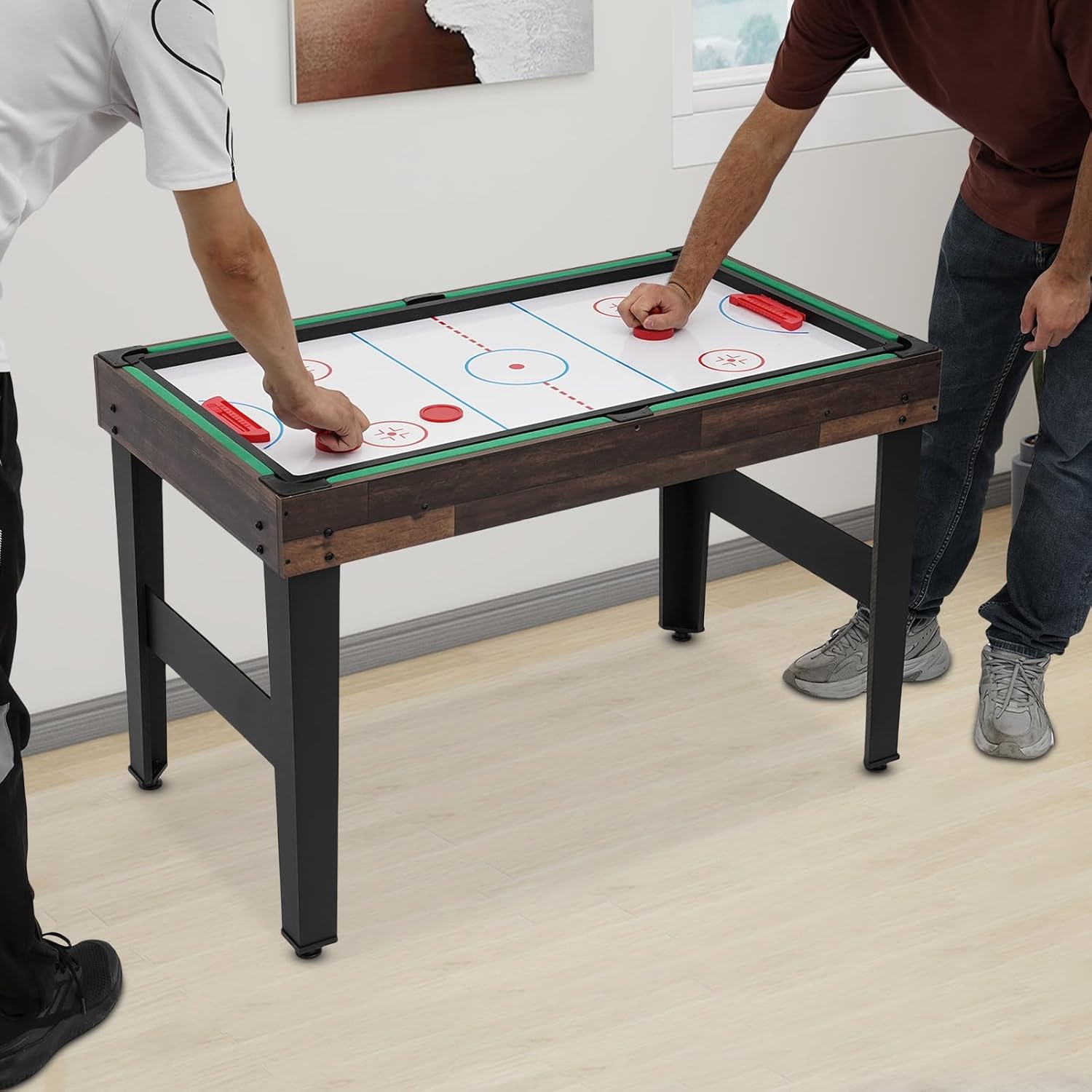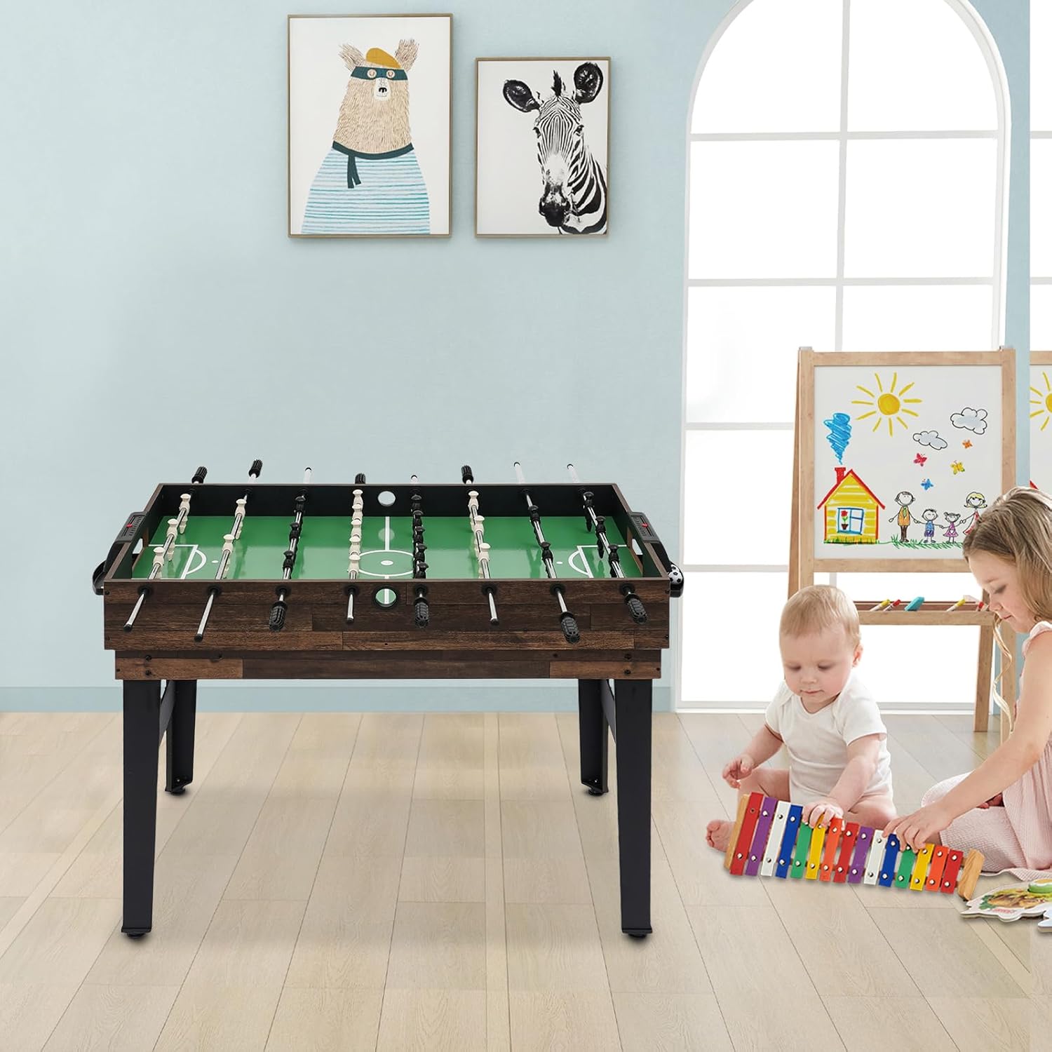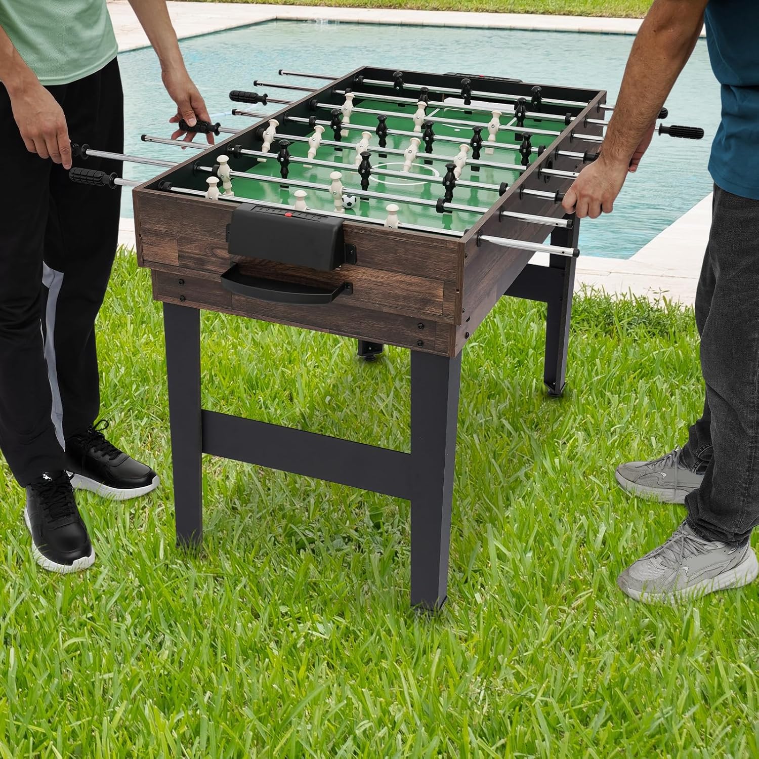 Durevole: è realizzato in MDF, ferro e plastica di alta qualità, che lo rendono resistente all'usura, agli urti, robusto e dimensionalmente stabile, prolungandone efficacemente la durata. Intrattenimento e crescita familiare: puoi facilmente giocare a calcio balilla o altri tipi di giochi da tavolo con la tua famiglia o i tuoi amici nel tuo salotto. Allena la tua pazienza e la tua capacità di reazione, migliora la coordinazione occhio-mano, promuove lo sviluppo del cervello e allena le tue capacità di lavoro di squadra. Funzione 10 in 1: offre dieci diversi giochi da tavolo tra cui calcio, biliardo, hockey su scivolo, ping pong, bowling, scacchi, dama, backgammon, giochi di carte e shuffleboard per soddisfare le tue esigenze di gioco. Ampia applicabilità: questo tavolo da gioco è adatto alla maggior parte delle età (dai 6 anni in su). È abbastanza piccolo da poter essere maneggiato facilmente dai bambini, ma è divertente anche per gli adulti. Chiunque può godersi questo prodotto durante una serata di gioco in famiglia. Installazione semplice: con accessori completi, manuale utente in inglese e costruzione semplice, puoi costruirlo insieme ai tuoi bambini e goderti il divertimento dei progressi.