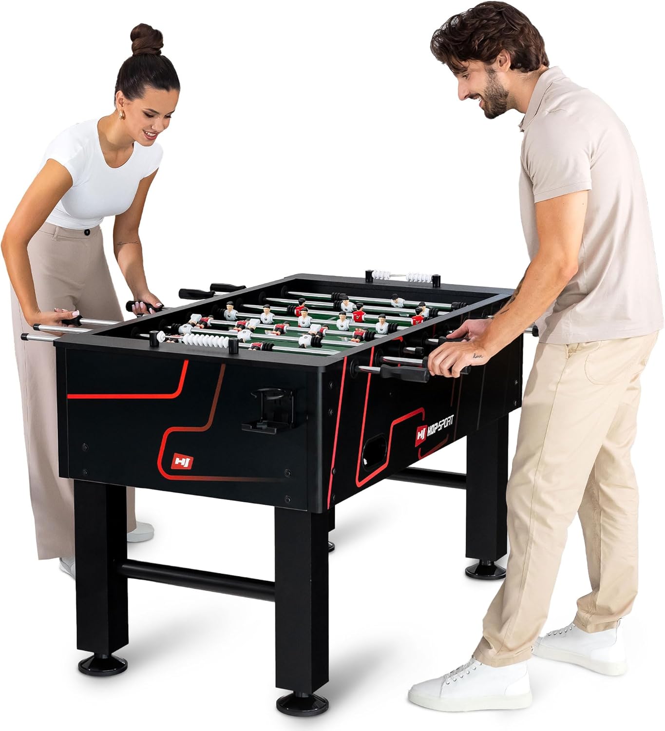 CALCIO DA TAVOLO COMPATTO – Modello compatto da posizionare su un tavolo per giocare subito a casa, in viaggio o durante le riunioni di famiglia o con gli amici BABY CALCIO A 2 SQUADRE – Contiene 2 squadre da 6 giocatori (rossa e gialla) con portieri per giochi dinamici e realistici come una vera partita. PALLONE BABYFOOT INCLUSO – Consegnato con due palloni in miniatura che consentono di riprendere immediatamente il gioco dopo ogni gol, per un gioco veloce e fluido PUNTEGGIO INTEGRATO MINI BABYFOOT CONTATORI – Contatori manuali integrati su ogni lato del campo per tenere facilmente traccia del punteggio e mantenere la competizione leale. BAMBINI E ADULTI BABYFOOT – Leggero ma stabile, adatto sia a bambini che ad adulti per condividere momenti di gioco divertenti e competitivi in qualsiasi momento
