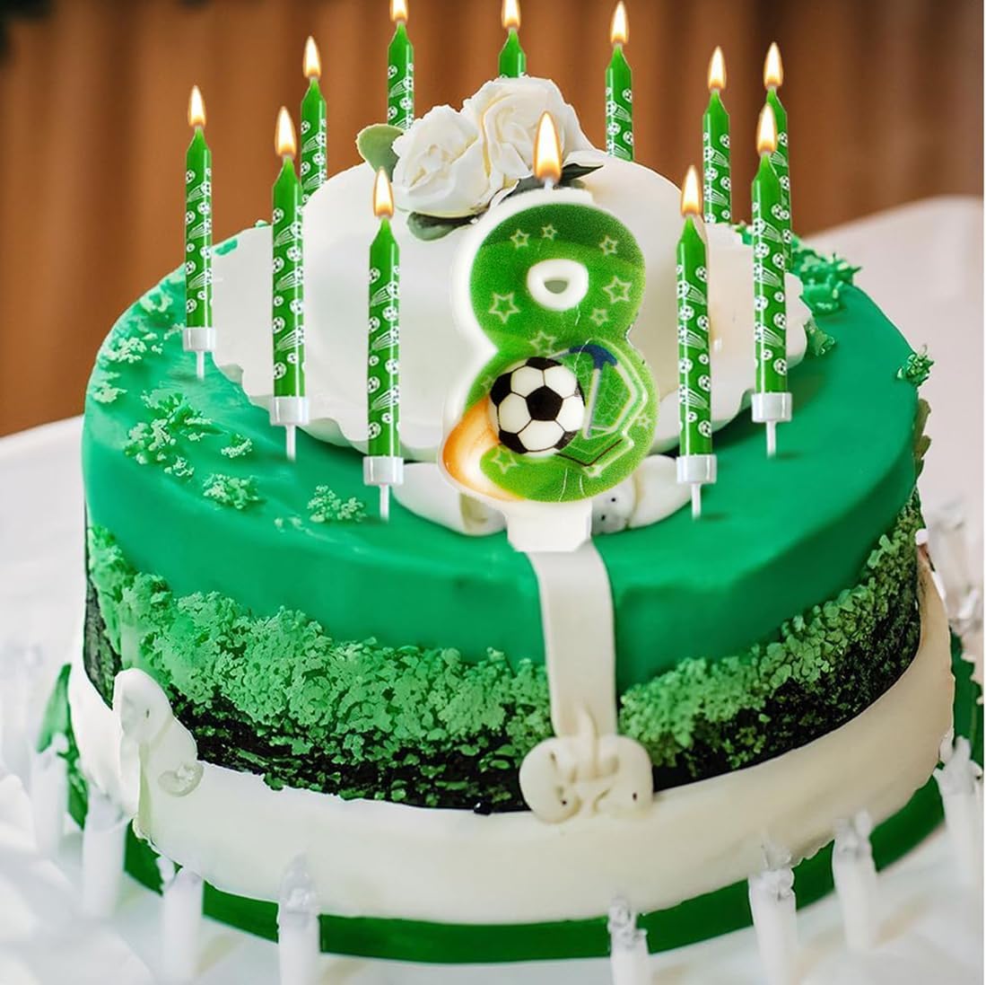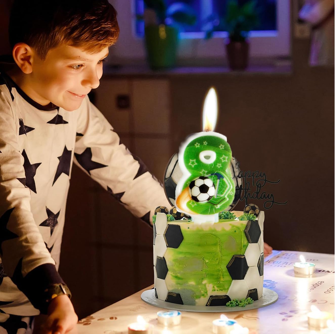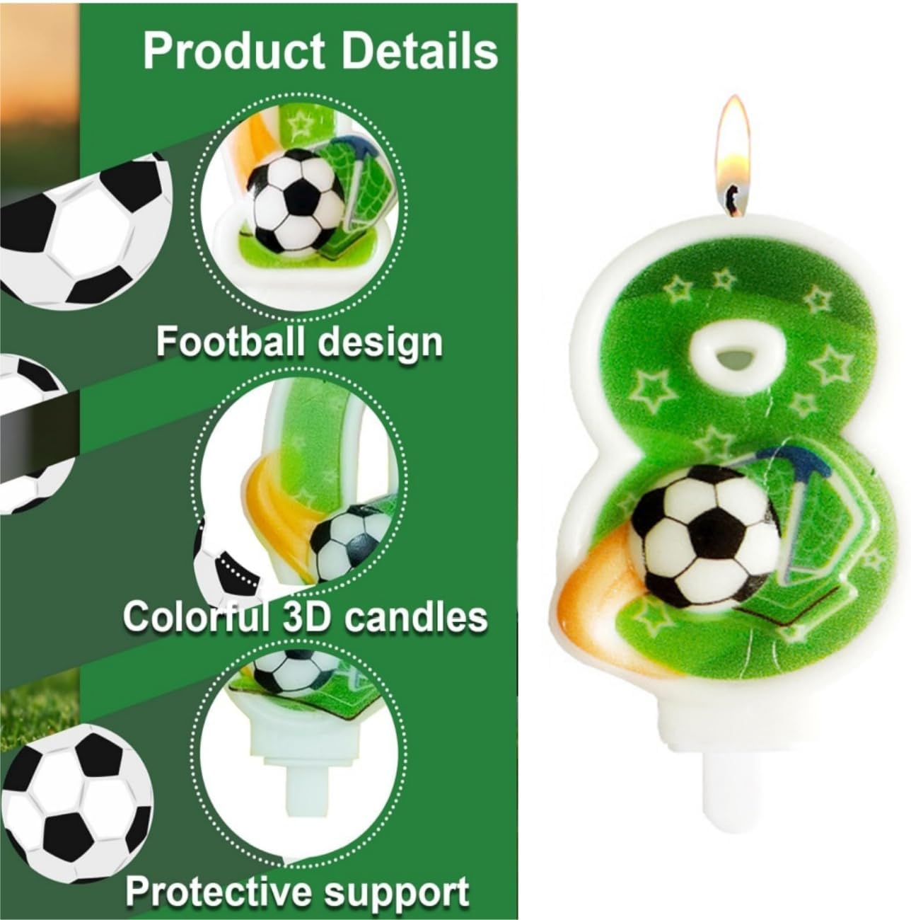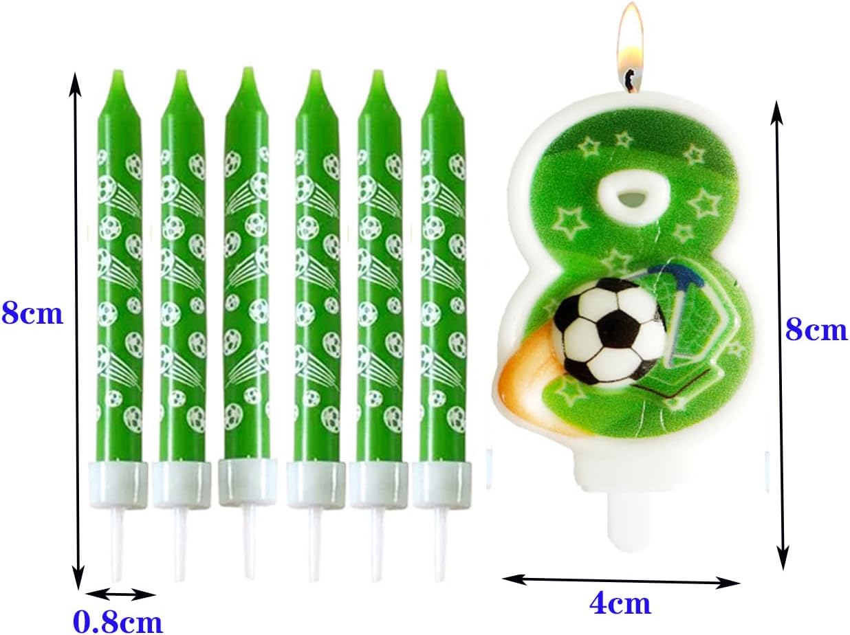 Design nuovo e unico: le nostre candele di numeri di calcio hanno un tema di calcio divertente e accattivante, adatto per i piccoli appassionati di sport nella tua vita. La candela di compleanno di calcio farà una profonda impressione sulla famiglia dei tuoi amici. Materiale di alta qualità: Questa candela di compleanno dei numeri è costituita da cera di alta qualità, è sicura e non velenosa, sicura per i bambini e l'ambiente. Creare un'atmosfera: le candele di torta di buon compleanno sono significative per voi per festeggiare il vostro compleanno e una bella decorazione di torta per abbellire la vostra torta e cupcake, luci luminose per creare un'atmosfera romantica e aggiungere un tocco di eleganza Adatto per molte occasioni: Le candele di compleanno dei bambini con il modello di calcio stampato sulla superficie, questi numeri di candele di compleanno completano diverse occasioni come compleanno, docce per bambini, Giubilei, pensioni, naturalmente, feste di calcio, che hanno una nota decorativa unica. Packlist: riceverete 1 x candela numerica (le candele di compleanno con numeri sono lunghe circa 8 cm), 6 x candele a torta lunghe (le candele lunghe sono lunghe circa 10 cm), perfetto per decorare le torte di compleanno