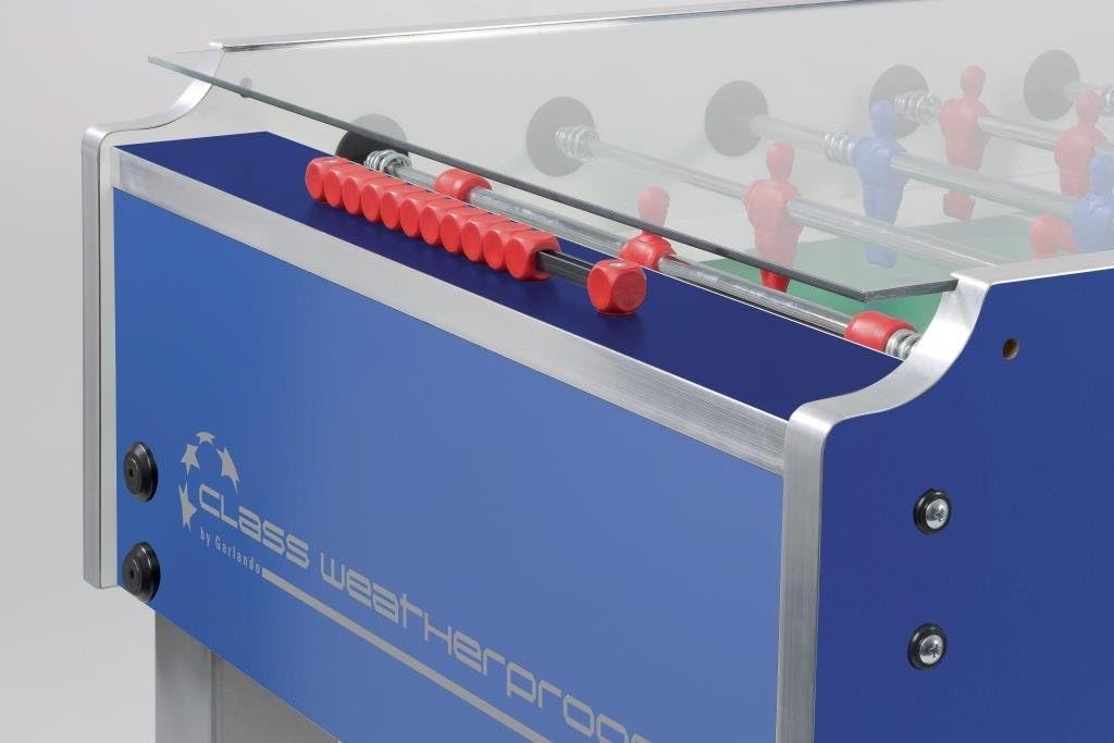 Calciobalilla da esterno extra forte Con copertura della superficie di gioco in vetro di sicurezza temperato Portiere che ruota liberamente a 360 gradi Aste cave da 16 mm in acciaio cromato Contiene 10 palloni da calcio in nylon bianco