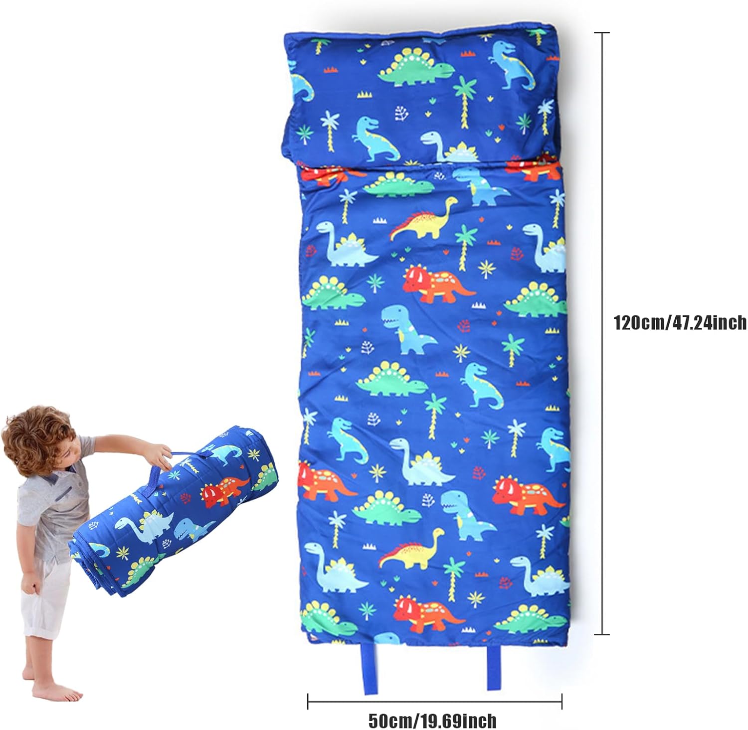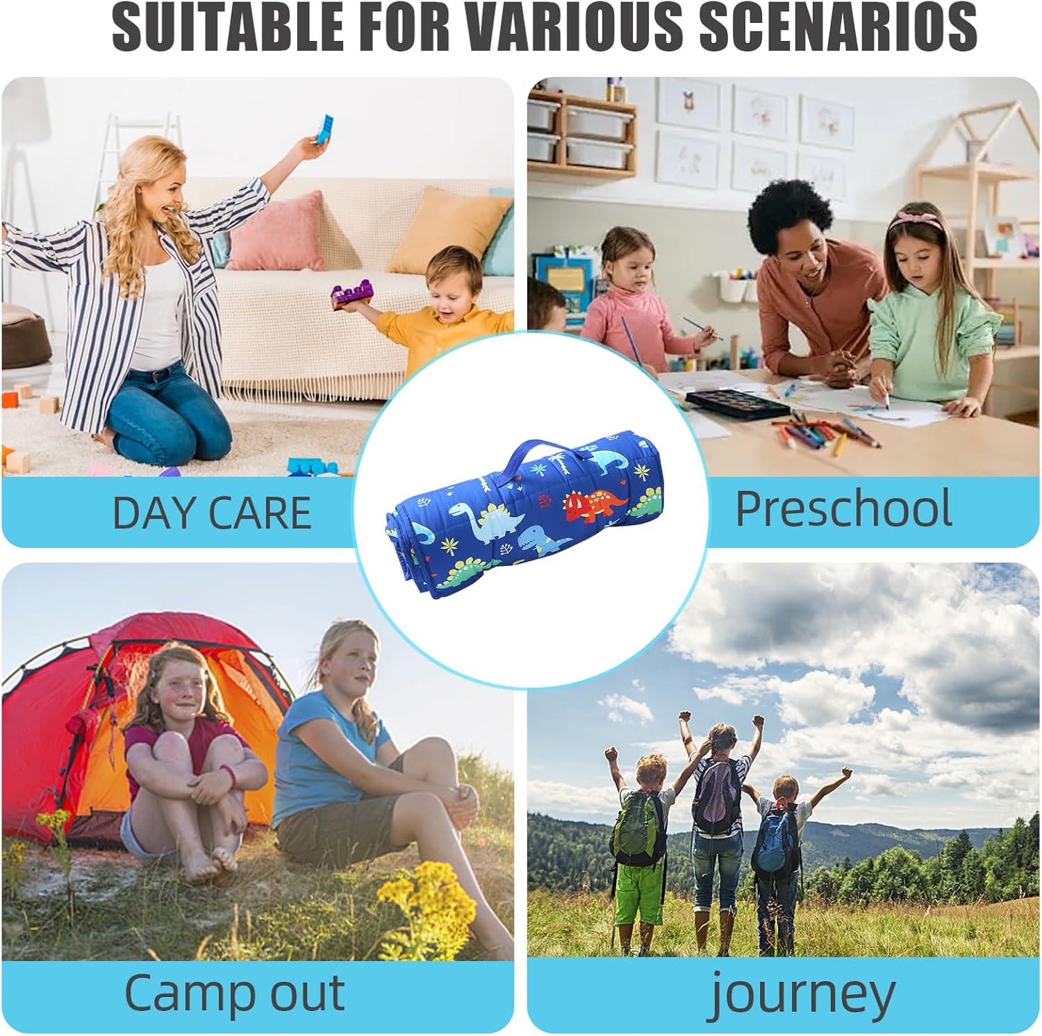 Materiale di qualità e stampa carina: realizzato in poliestere e cotone, questo sacco a pelo per bambini è morbido, confortevole e traspirante. È delicato sulla pelle, resistente all'umidità e non si restringe. Il design della stampa dei cartoni animati è anche dinamico e attraente per Comodo spazio per il pisolino: questo tappetino per pisolini per bambini offre un posto comodo per il pisolino, assicurando che ottenga il riposo di cui ha bisogno per la crescita e lo sviluppo. Cuscino e coperta inclusi migliorano il livello di comfort. Anti-calcio e termico: il materassino presenta un design avvolgente che mantiene il bambino comodo e caldo. La coperta può essere nascosta sotto il tappetino, impedendo al bambino di gettarlo e di raffreddarsi durante il sonno. Grandi dimensioni con design arrotolabile: questo tappetino è abbastanza grande per ospitare bambini di vari tipi di corpo. Ha un pratico design arrotolabile con cinghie di fissaggio e una maniglia, che lo rende facile da riporre e trasportare. Uso versatile: questo tappetino è adatto per vari scenari. È perfetto per l'asilo nido e l'uso prescolare, fornendo un comodo spazio per i pisolini per i bambini. È ideale anche per pigiama party, gite in campeggio o per l'uso in ambienti con aria condizionata.