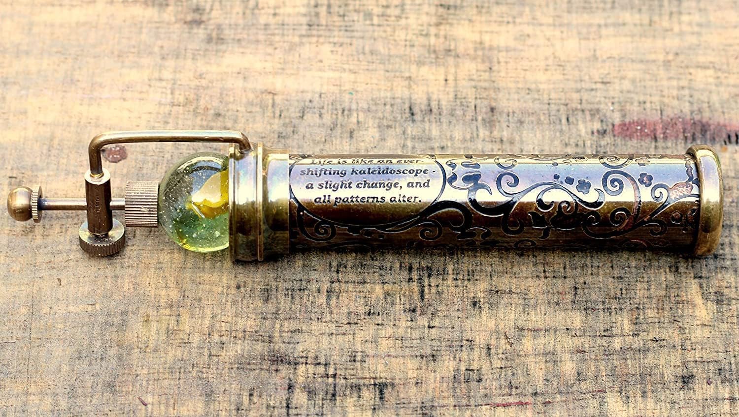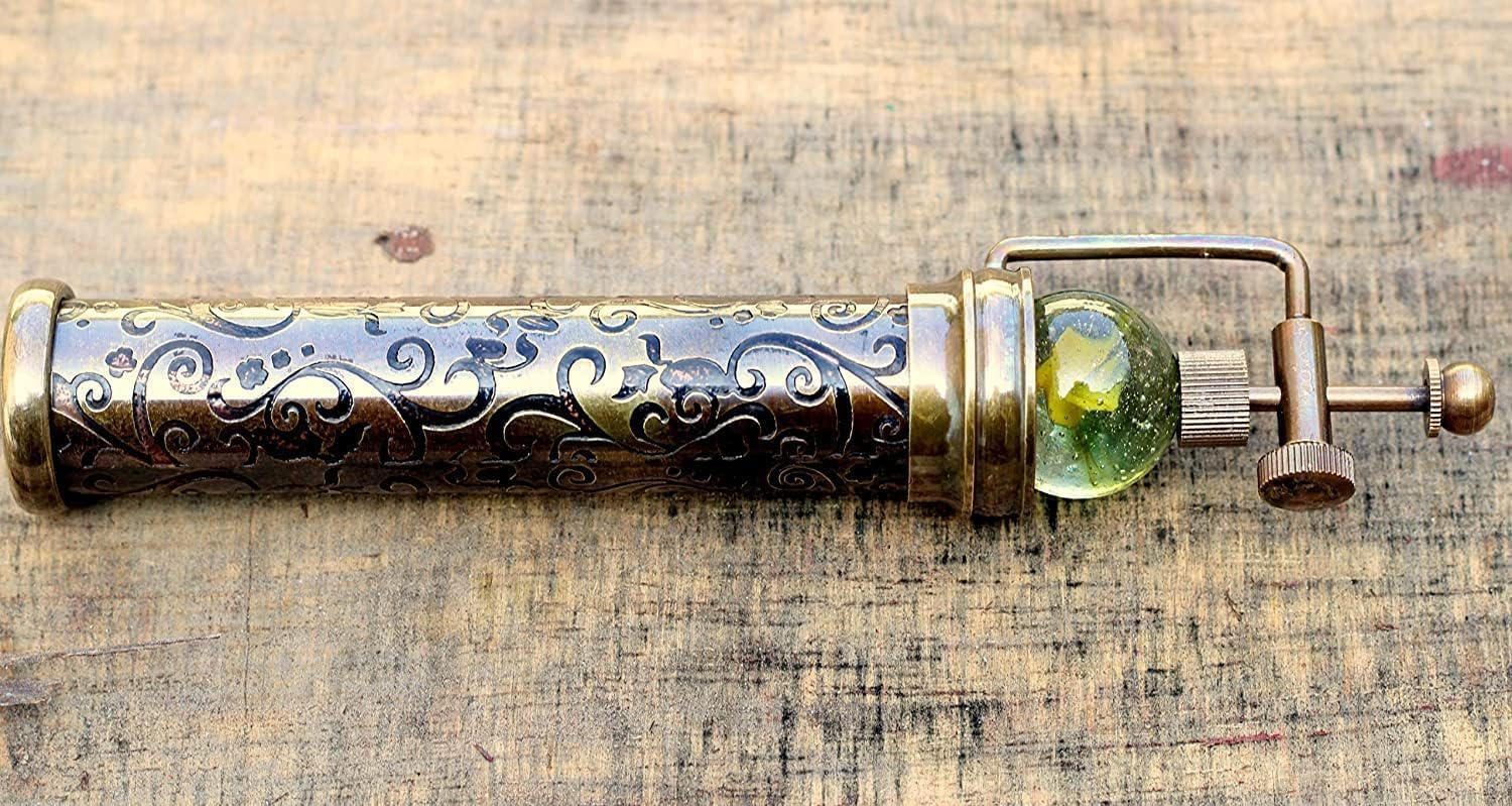 Costruzione in ottone antico, include sfera di vetro. È possibile aggiungere palline di dimensioni simili disponibili. Dimensioni del prodotto: 15,2 x 5,1 x 2,5 cm Crea motivi dinamici e colorati, perfetti per collezionisti e appassionati