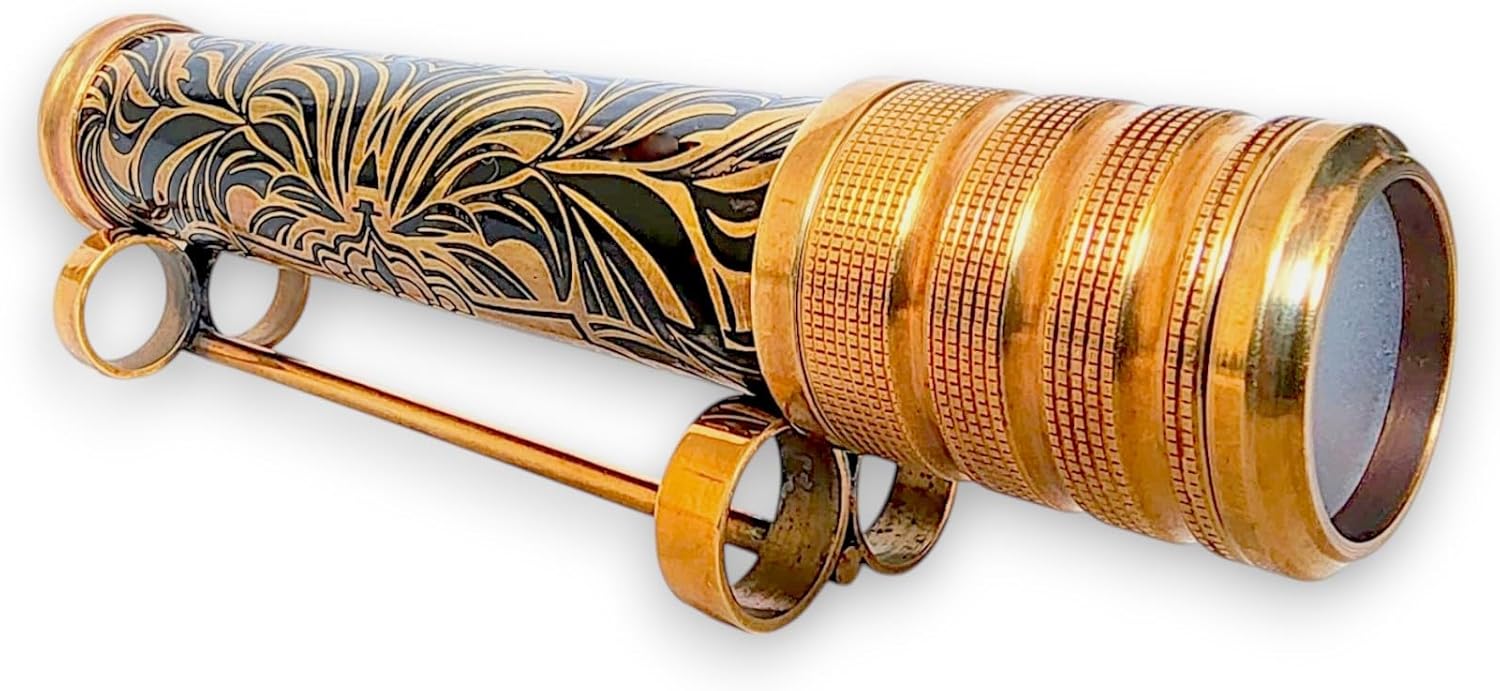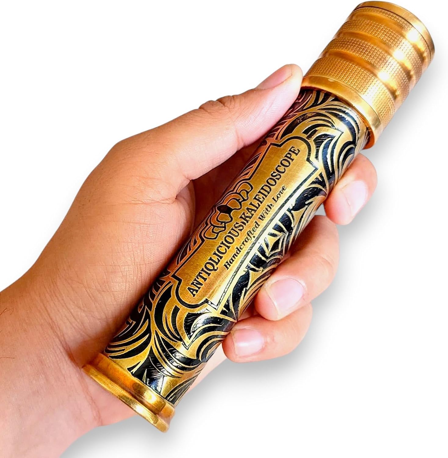 Eleganza artigianale: il caleidoscopio in ottone ANTIQLICIOUS è meticolosamente realizzato a mano, offrendo un design straordinario e senza tempo che migliora qualsiasi spazio Design vibranti e in continua evoluzione: ruota la modalità anteriore per creare infiniti motivi vivaci, offrendo un'esperienza visiva accattivante ad ogni turno Compatto e portatile: misura 16 x 3,3 x 3,3 cm, è la dimensione perfetta per l'esposizione o il divertimento in movimento. Struttura in ottone di alta qualità: realizzato in ottone di alta qualità, che garantisce durata e un look sofisticato che dura per anni. Regalo ideale per tutte le età: un regalo unico e premuroso per collezionisti, amanti dell'arte o chiunque ami l'intrattenimento accattivante e pratico.