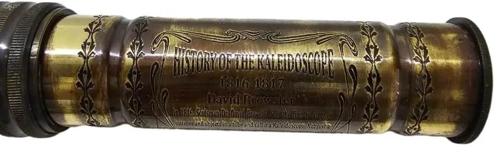 Materiale: ottone e pelle Finitura: finitura anticata (come mostrato nell'immagine) Dimensioni e misure: 6 "pollici di lunghezza x 35 mm di diametro; Peso: 250 gms Lo specchio interno crea immagini colorate..Caleidoscopio Extra Wheel, Brass Kaleidoscope, due ruote di forma e colorate diverse sono posizionate di fronte al set di specchi, e ruotando le ruote vengono create infinite nuove immagini riflettenti. Le ruote possono essere spostate per trovare forme e colori specifici Un ottimo pezzo di conversazione per la casa o l'ufficio! Un regalo fantastico per un collezionista o per una persona speciale!