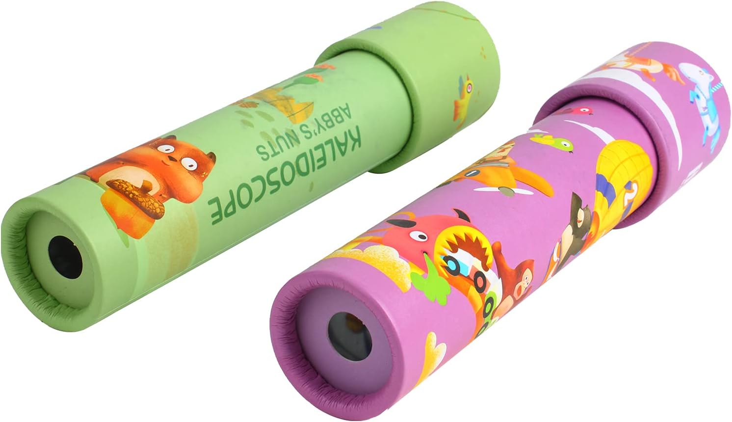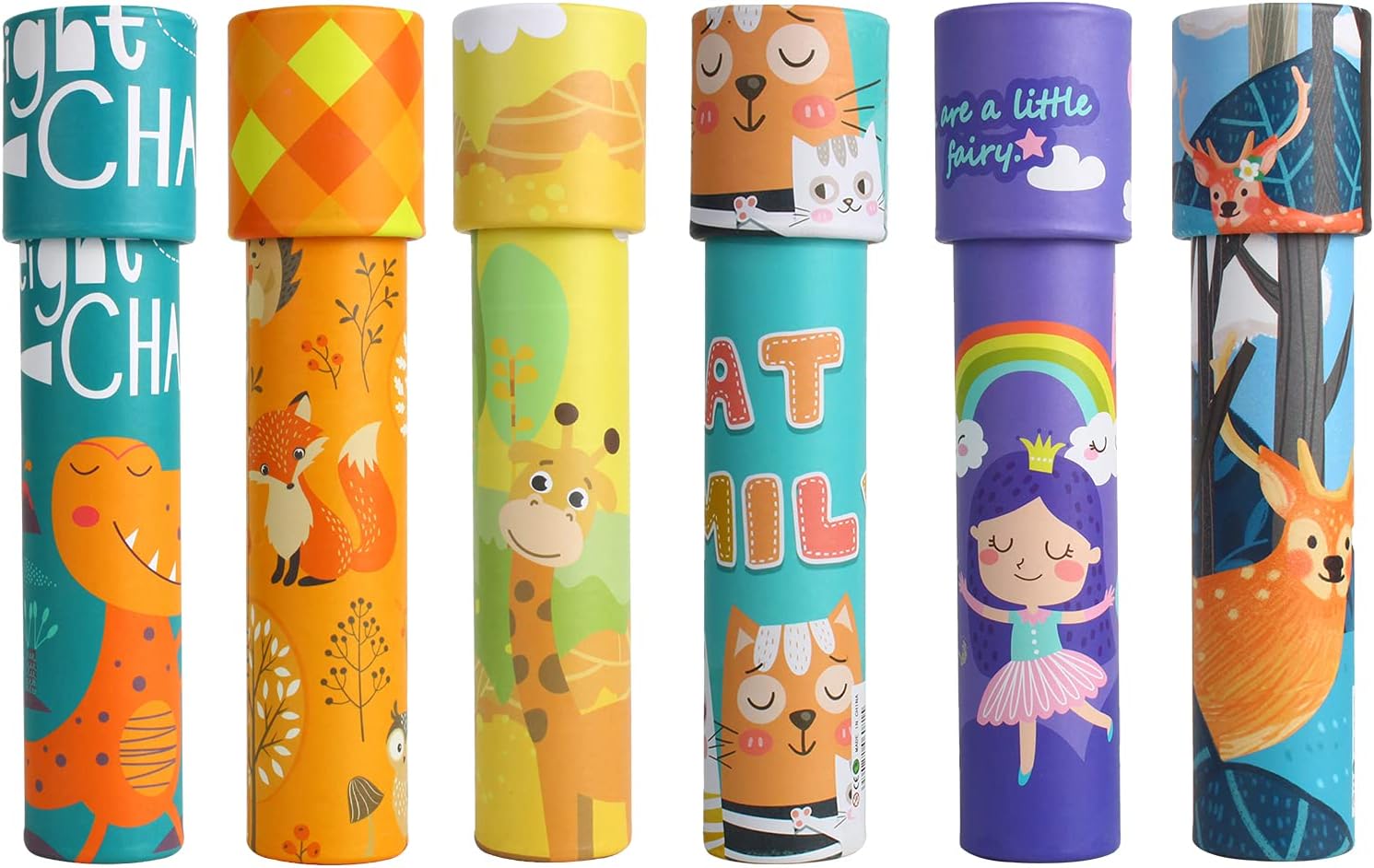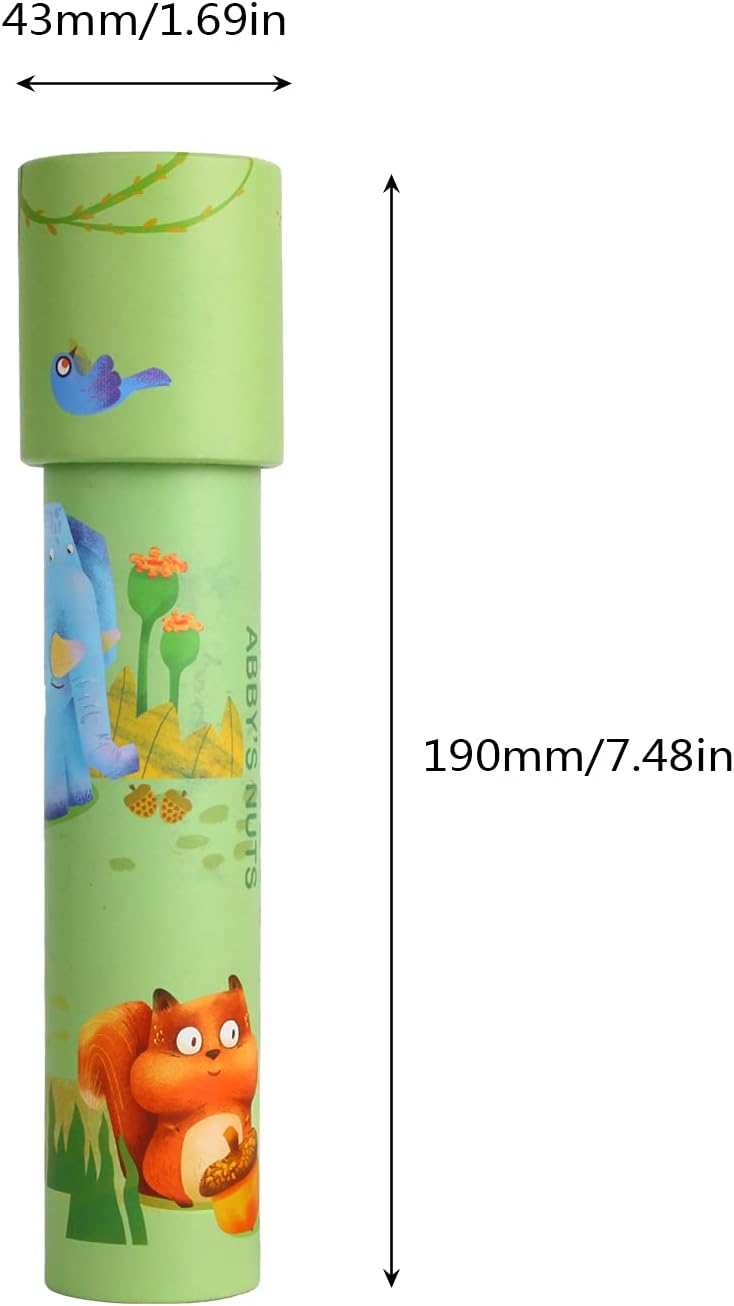 Il giocattolo caleidoscopio in carta e plastica, sicuro, ecologico, liscio e senza sbavature. La dimensione di ciascuno è 19x4,5 cm (7,5 "x 1,8"), di dimensioni adeguate per le mani dei bambini da tenere. Vernice spray a base d'acqua, motivi raffinati e delicati. Ruota il caleidoscopio, i bambini possono vedere i diversi meravigliosi schemi mutevoli attraverso il foro, che possono coltivare la loro logica e creatività e suscitare la loro curiosità e immaginazione. Quattro temi tra cui scegliere, Peacock, Abby's Nut, Garden, Rhino e zebra.