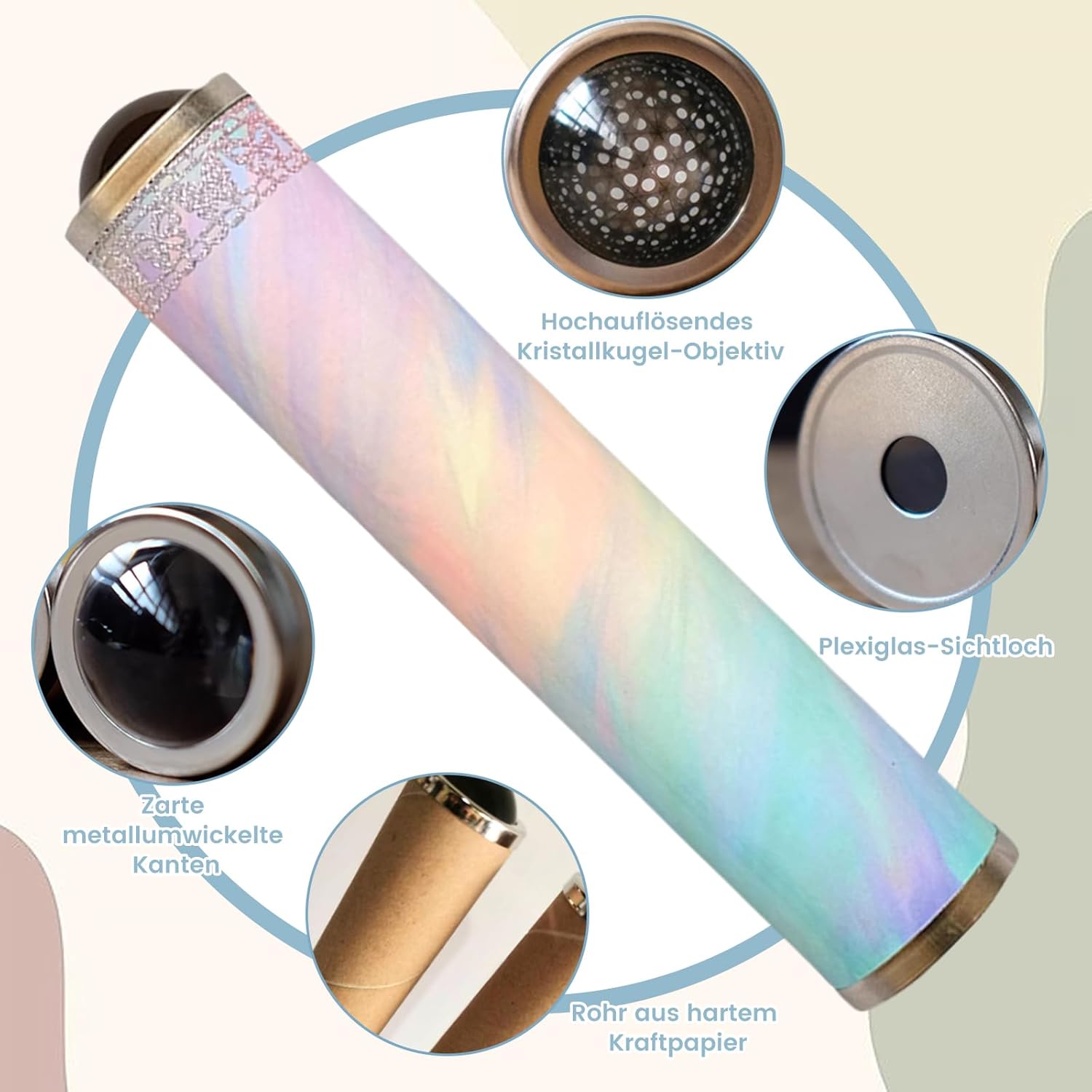 MATERIALE DI ALTA QUALITÀ: la superficie del set fai da te caleidoscopio è composta da un tubo di carta kraft ispessita e un anello di metallo, con una sfera di cristallo fissata saldamente nella parte superiore, robusta e infrangibile Design sicuro: con pregevole fattura e una superficie liscia senza sbavature, è comodo da tenere in mano. Ideale come regalo per feste di compleanno per bambini. È molto sicuro e può essere utilizzato senza problemi VISIONE CHIARA: il caleidoscopio poligonale utilizza lenti a prisma triangolari e sfere di cristallo ad alta risoluzione. Grazie alla rifrazione della luce, i motivi diventano più luminosi e chiari, offrendo un'esperienza visiva completamente nuova SCOPRI LA BELLEZZA DELLA SIMMETRIA: il giocattolo educativo caleidoscopio ha un design classico. Basta ruotare il cilindro per godere di campioni di colore illimitati. Ogni rotazione crea motivi magici, complessi e simmetrici IL MIGLIOR REGALO: questo caleidoscopio colorato è un regalo divertente per bambini, familiari o amici. Adatto per compleanni, premi di classe, premi, regali per feste, Natale e festività