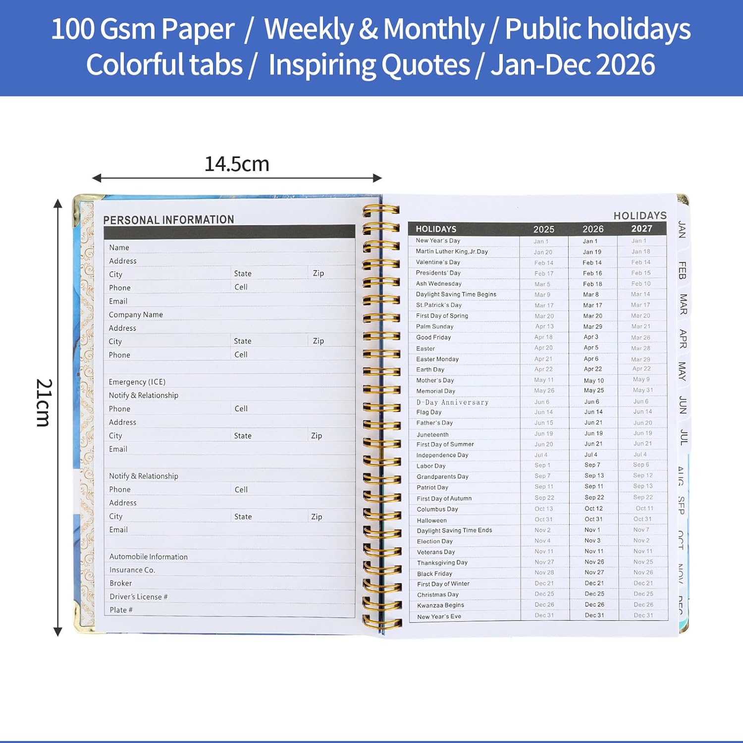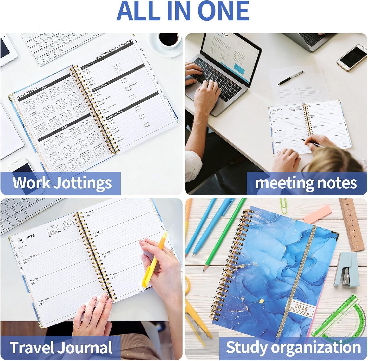Quaderno A5 con carta premium e grande capacità con 71 pagine spesse e lisce, ideale per scrivere, disegnare o creare un bullet journal. Compatibile con penne stilografiche, pennarelli e penne gel senza sbavature. Copertina rigida resistente La copertina rigida protegge i tuoi appunti in modo elegante e affidabile. Adatto come classico taccuino, taccuino A5 o pratica alternativa al raccoglitore. Design pratico Con chiusura elastica, nastro segnalibro integrato e tasca interna per carte o piccoli appunti. Un quaderno A5 perfetto per la scuola, l'ufficio o in viaggio. Versatile e funzionale Può essere utilizzato come diario, quaderno, quaderno di schizzi o agenda 2026. Ideale per liste di cose da fare, organizzazione quotidiana o come diario A5 punti. Regalo ideale Formato pratico e design moderno, perfetto come regalo per uomini e donne che apprezzano quaderni A5 e bullet journal di qualità.