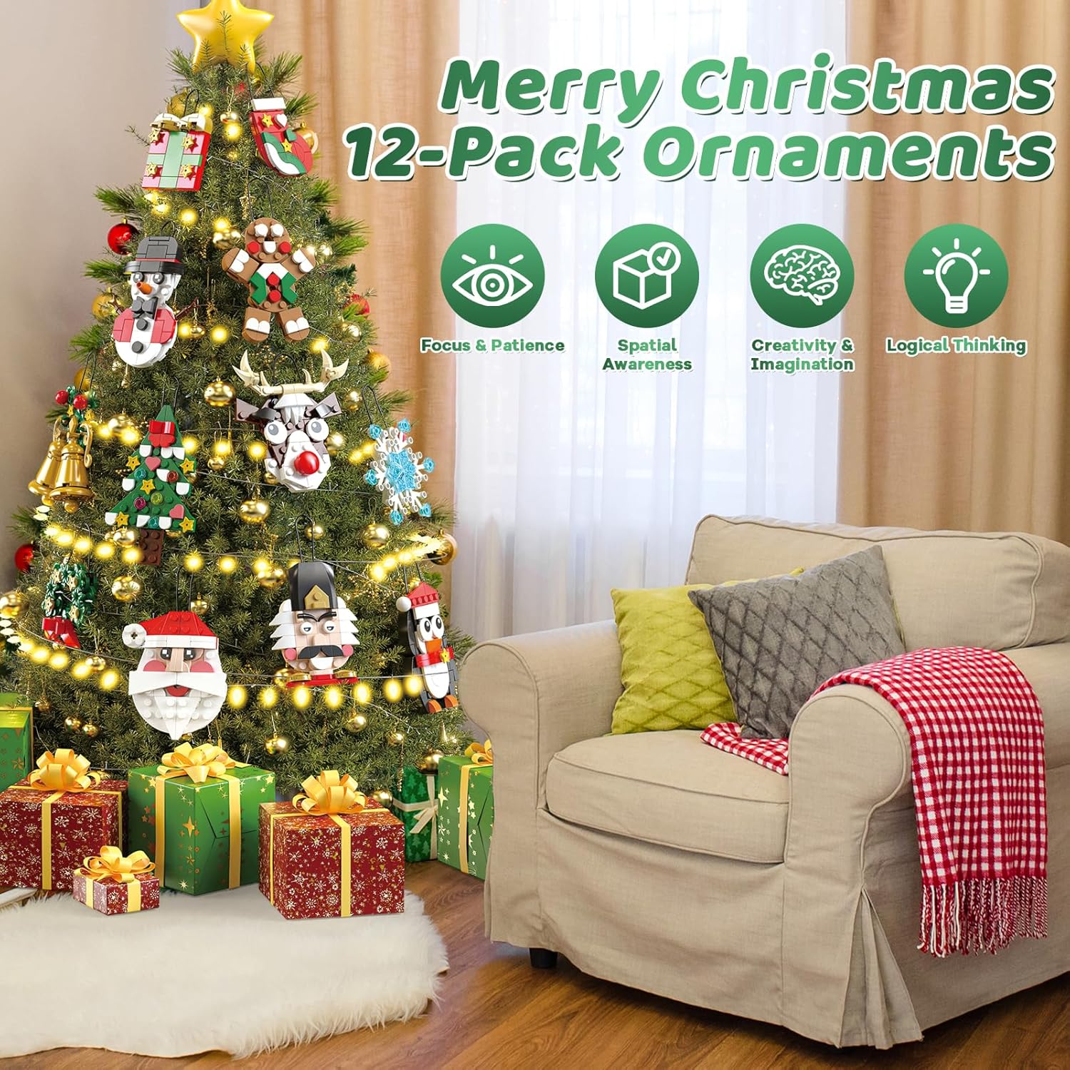 12 Decorazioni Natalizie per un Natale Magico: Il set Conalaa di decorazioni natalizie include 12 ornamenti da costruire: pinguino, Babbo Natale, campanella, albero di Natale, omino di pan di zenzero, pacco regalo, fiocco di neve, ghirlanda, schiaccianoci, renna, pupazzo di neve e calza di Natale. Ogni pezzo ha colori vivaci e dettagli curati, perfetto per decorare albero, ghirlande, festoni o qualsiasi spazio natalizio Decorazioni Versatili con Corde per Appendere: Le costruzioni natalizie Conalaa includono corde per appenderle facilmente su alberi di Natale, ghirlande, festoni, finestre, corrimano o come centrotavola. Design leggero e facile da posizionare in casa, ufficio o aula scolastica. Alcuni pezzi possono essere usati come lavoretti creativi o come simpatici accessori per foto, aggiungendo divertimento e atmosfera natalizia Stimola Creatività e Apprendimento Attivo: Assemblare queste decorazioni natalizie è un’attività educativa e divertente che sviluppa creatività, motricità fine, consapevolezza spaziale e capacità di risolvere problemi. I bambini imparano giocando, migliorando concentrazione e pazienza. Genitori e fratelli possono partecipare, trasformando la costruzione in un momento di unione e spirito natalizio Materiale Sicuro e Durevole in ABS: Realizzato in plastica ABS di alta qualità, atossica e senza odori, con pezzi lisci e senza bave. Contiene 498 parti sicure per bambini dai 6 anni in su. Il materiale è robusto, resistente agli urti e facile da pulire, per garantire che le decorazioni possano essere usate anno dopo anno senza rischi per la sicurezza dei bambini Idea Regalo di Natale per Tutti: Questo set di ornamenti è un regalo natalizio perfetto per bambini, famiglia, amici, insegnanti o colleghi. Ottimo come riempitivo per calze, scambio di regali, premi scolastici, favori per feste o calendario dell’avvento. Un dono che porta gioia e spirito natalizio a chiunque lo riceva, trasformando ogni occasione in un ricordo speciale