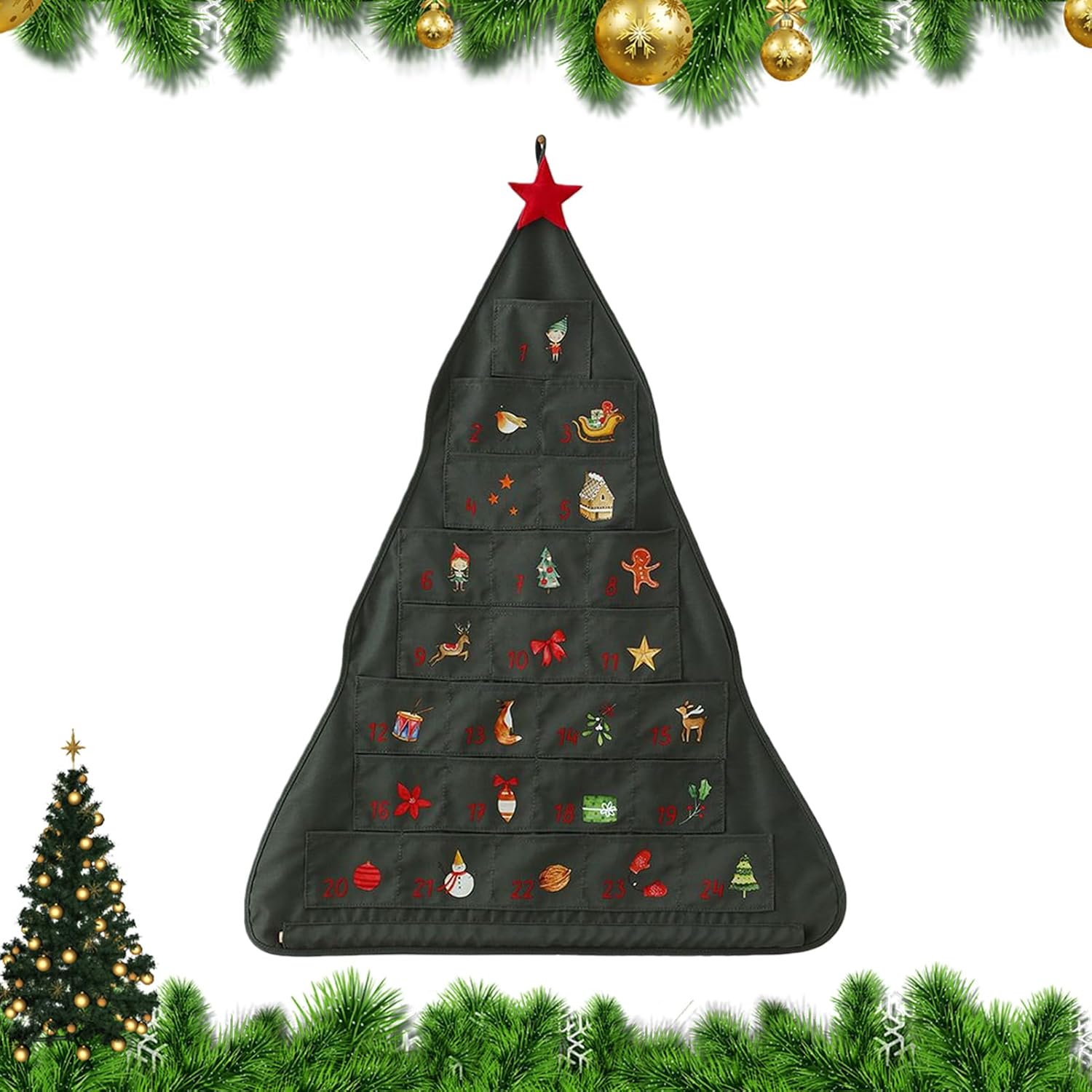 Conto alla Rovescia Quotidiano: Il calendario 'avvento in tessuto con 24 tasche e stampe festive uniche crea un'emozione quotidiana durante il conto alla rovescia verso la gioia del Natale, aiutando i bambini a sviluppare anticipazione e pazienza con un incanto festivo che si rinnova ogni giorno, per arricchire le celebrazioni in famiglia nel periodo e festività e promuovere una tradizione natalizia coinvolgente e educativa per i più piccoli in un'atmosfera domestica accogliente Durevole e Senza Sprechi: Il calendario 'avvento in tessuto combina una struttura riutilizzabile con materiale in poliestere longevo, evitando sprechi inutili e presentando opzioni di tinture sicure per l'ambiente o ricami; crea un pezzo senza per commemorare festività annuali come Pasqua o Halloween, unendo praticità e appeal estetico in ogni scenario di celebrazione domestica in modo seamless e funzionale. Utilizzo Versatile e Pratico: Il calendario 'Avvento in tessuto offre opzioni versatili di esposizione e riempimento, montandosi facilmente su pareti o porte e contenendo , bigliettini o piccoli giocattoli, diventando un elemento centrale per le decorazioni natalizie che si abbina splendidamente con luci e altri addobbi festivi per esaltare il fascino stagionale a tua casa durante le riunioni familiari, ideale per creare un'atmosfera e accogliente con la famiglia Spirito Natalizio Ricco: Questo calendario 'Avvento in tessuto con tasche condivide il calore del Natale attraverso la mostra di simboli stagionali iconici, generando un'atmosfera che arricchisce lo spirito festivo in ambienti domestici o durante riunioni festive. per diffondere gioia e calore in tutta la stagione natalizia, aggiungendo un tocco magico e tradizionale alle celebrazioni, rendendo ogni momento speciale con la sua presenza accogliente e festosa. Fascino Mini Albero: Questo calendario 'Avvento con tasche esibisce una forma triangolare senza e un vivace design ad albero festivo, offrendo un incantevole aspetto di mini albero a distanza, con i suoi 24 rami di tessuto a strati che contengono piccoli regali e dolciumi, eccellente per diffondere allegria in soggiorni o ingressi con un tocco caloroso e accogliente.