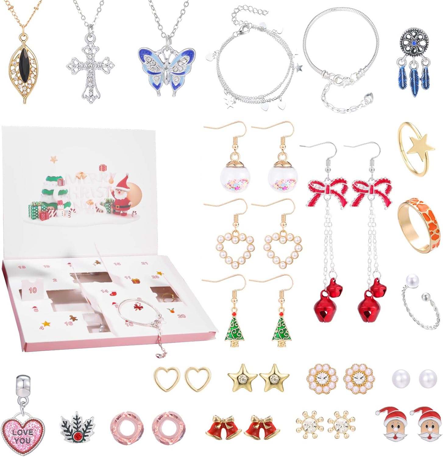 Regalo pratico ed elegante: fascino festivo ed eleganza, il calendario dell'Avvento è un regalo perfetto per gli amici, aiutandoli ad accogliere la magia delle feste mentre attende con impazienza le celebrazioni natalizie. Il suo design equilibrato lo rende un accessorio utile per illuminare ogni giorno che porta a Natale, senza ingombri e con stile. Varie gamma di utilizzi: progettato per gli appassionati di Natale, questo conto alla rovescia di Natale aumenta la festa e si adatta a vari luoghi o occasioni. Si rivela ideale per feste per adulti come cene di festa, feste in ufficio o eventi comunitari, promuovendo al contempo una felicità stagionale condivisa. Regolabile per tutte le dimensioni: questo calendario di Natale presenta collane e braccialetti regolabili che garantiscono una vestibilità comoda e personalizzabile per tutte le morfologie. Grazie al suo design versatile, migliora il tuo stile quotidiano delle feste, ideale per occasioni festive e abbigliamento casual durante la stagione. Gli accessori si adattano facilmente, offrendo un tocco piacevole e festivo al tuo guardaroba durante i momenti natalizi, conf Materiale Solido: un'eccezionale lavorazione a materiali ecocompatibili e resistenti ai danni, questo conto alla rovescia di Natale migliora la sua utilità anno dopo anno. Perfetto per adattarsi alle tue tradizioni stagionali, garantisce un'esperienza affidabile e piacevole durante tutte le festività natalizie. Gioiello giornaliero: questo calendario per il conto alla rovescia per Natale fornisce gioielli ogni giorno, aiutando gli utenti a contare i giorni dal 1 ° dicembre a Natale. Coltiva un senso di anticipazione e felicità come parte delle loro feste stagionali con amici e famiglia, aggiungendo un tocco di magia alle routine quotidiane delle feste di fine anno.