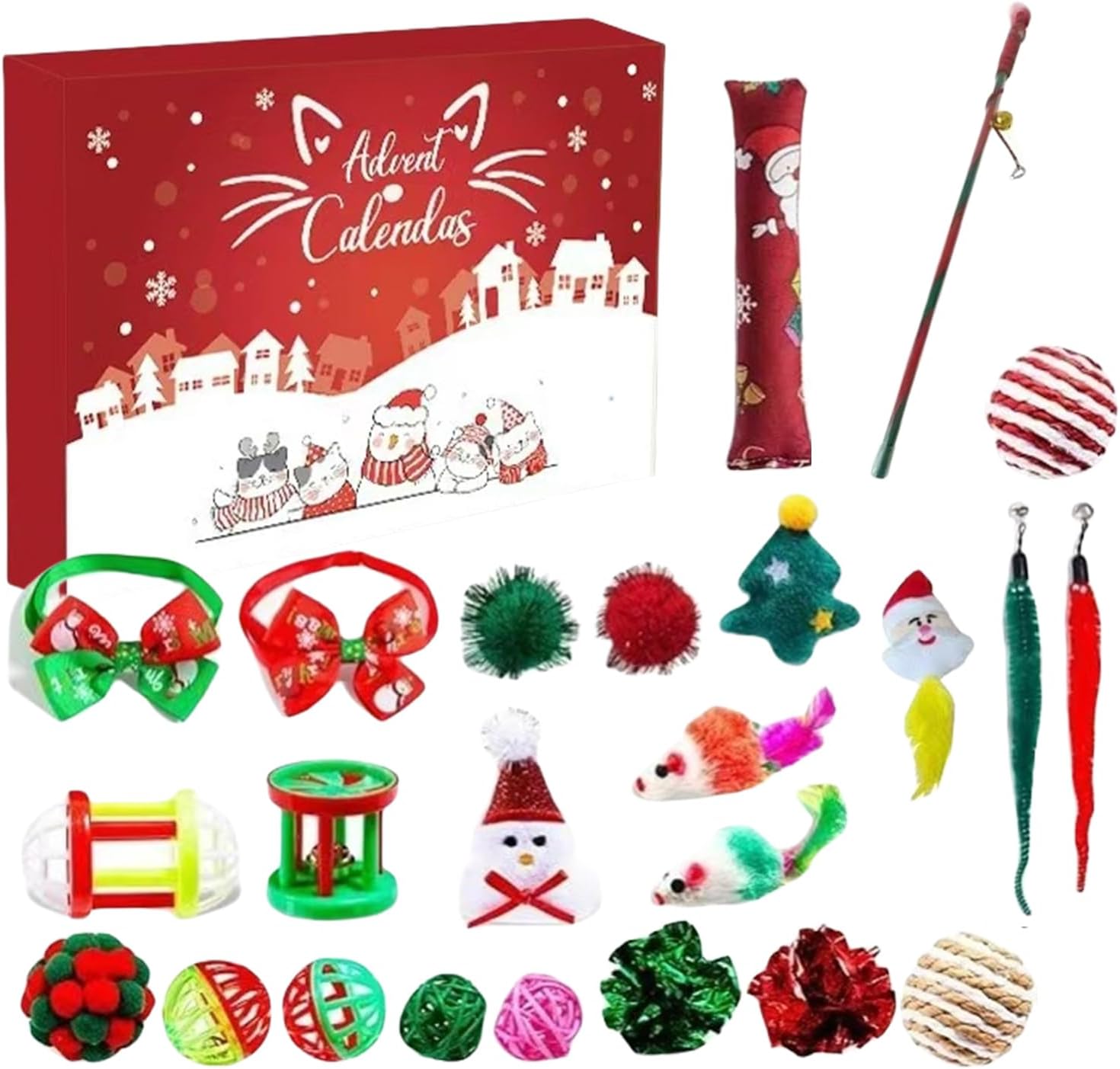 Pacchetto Varietà Giocattoli Vacanze: Ricco di 24 giocattoli per gatti distinti, tra cui palline topo e pesci in sisal, il Calendario 'Avvento per Gatti con Giocattoli stimola gli istinti di caccia innati e favorisce il coinvolgimento quotidiano in attività ludiche; porta gioia stagionale a casa tua regalando al gatto questo emozionante set di giocattoli a tema vacanze. 24 Giorni di Divertimento per Gatti: Con un giocattolo creativo dietro ogni finestra, il Calendario 'Avvento di Natale per Gatti offre sorprese quotidiane che accendono gioia e interazione giocosa per il gatto, rendendolo un metodo ideale per celebrare la stagione migliorando la sua curiosità e felicità con momenti di attesa e gioco durante i 24 giorni di conto alla rovescia. Intrattenimento Natalizio per Gatti: Questo giocattolo per gatti calendario 'Avvento unisce colori festivi accattivanti e cartoon incantevoli per stimolare la curiosità del , offrendo ore di gioco coinvolgente ogni giorno e mantenendo l'allegria per tutta la stagione e feste in un ambiente domestico gioioso, per intrattenere i felini con holiday e divertimento Divertimento Festivo Duraturo: Realizzato con materiali robusti e sicuri per animali, il calendario 'avvento giocattolo per gatti resiste a ripetuti utilizzi mantenendo il suo fascino e la sua funzionalità. Porta soddisfazione duratura sia agli animali che ai proprietari durante il gioioso periodo e feste, con un design studiato per offrire ore di gioco sicuro e coinvolgente in ambienti natalizi, senza perdere appeal nel . Rafforzatore del Emotivo: Progettato per offrire sorprese quotidiane, il calendario 'avvento per gatti coinvolge il gatto con giocattoli distintivi rivelati ogni giorno, migliorando la relazione umano-animale trasformando momenti di routine in ricordi preziosi pieni di gioia e anticipazione durante tutta la stagione e feste.