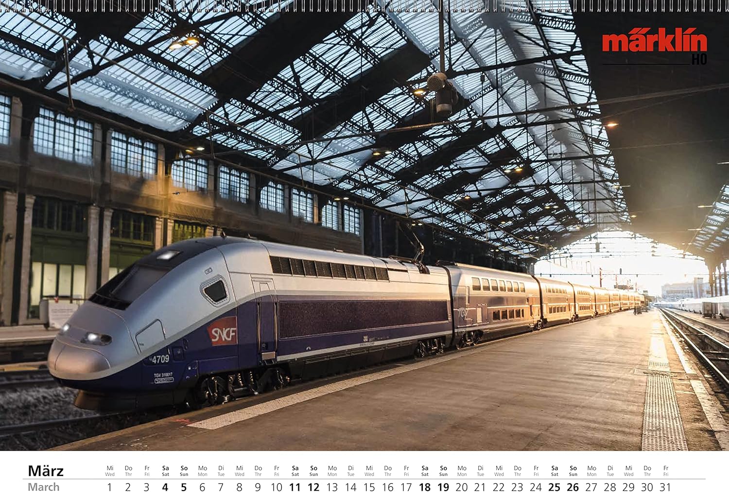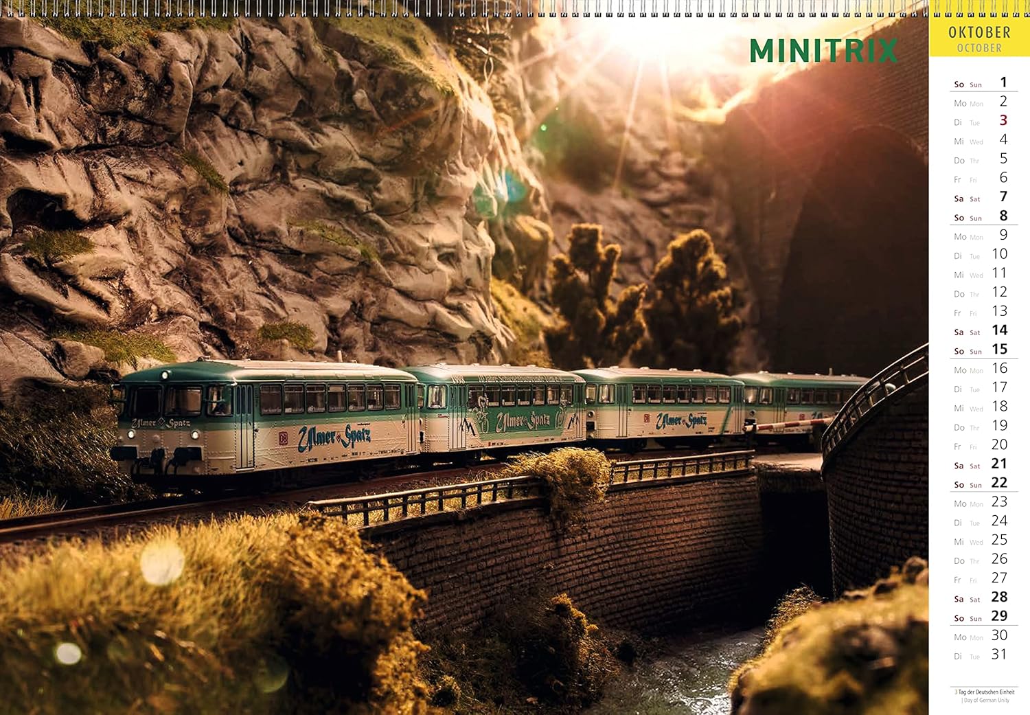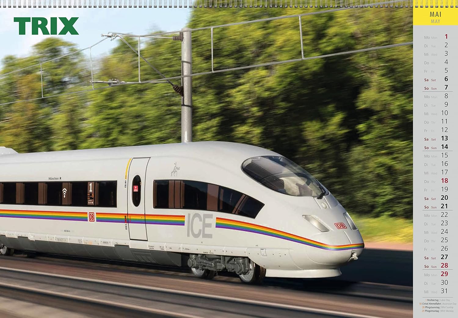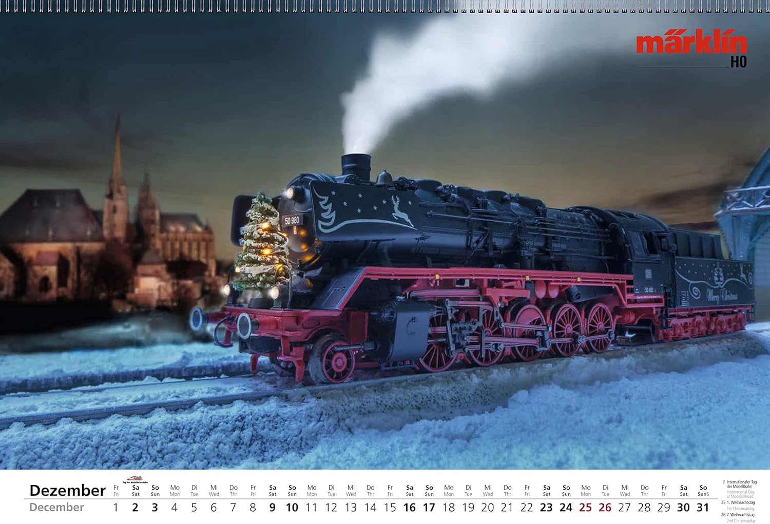 Calendario da girare: una pagina con modello Märklin, l'altro lato con modello Trix. 24 illustrazioni di grandi dimensioni di modelli speciali Märklin e Trix negli ultimi decenni. Rilegatura a spirale per girare e rimuovere facilmente i fogli del calendario. Illustrazioni di modelli attraverso tutti gli scartamenti, epoche e temi. Una vera attrazione per tutto l'anno
